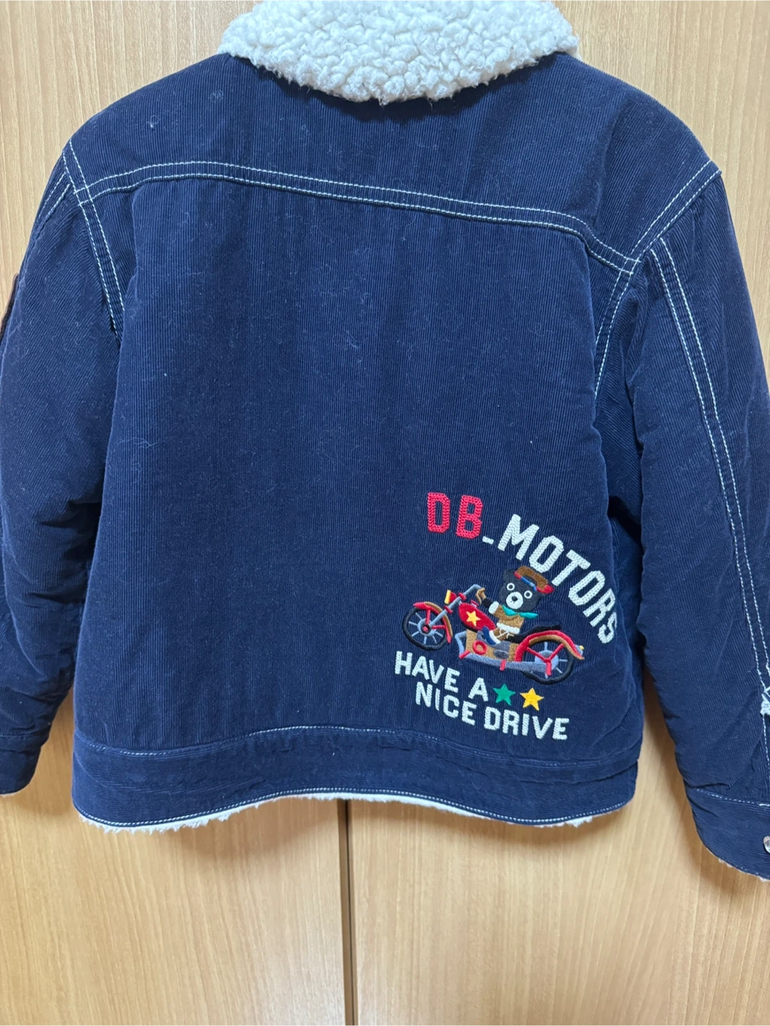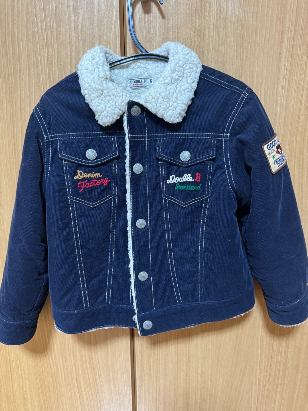 ダブルBのジャケットです。 可愛く、よく褒められていました。 ・サイズ:120 ・カラー:ネイビー ・素材:綿、ポリエステル ・襟元はボア素材 ・袖口に使用感はありますが、目立つ傷はありません。 中古品であることご了承ください