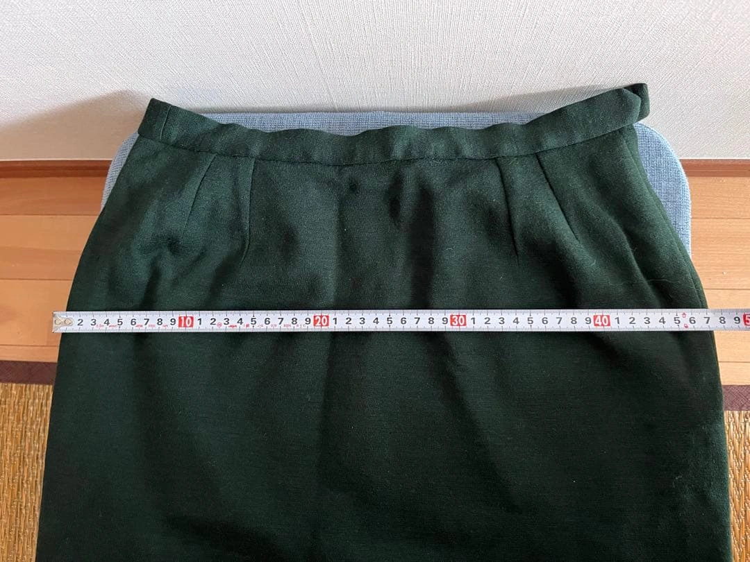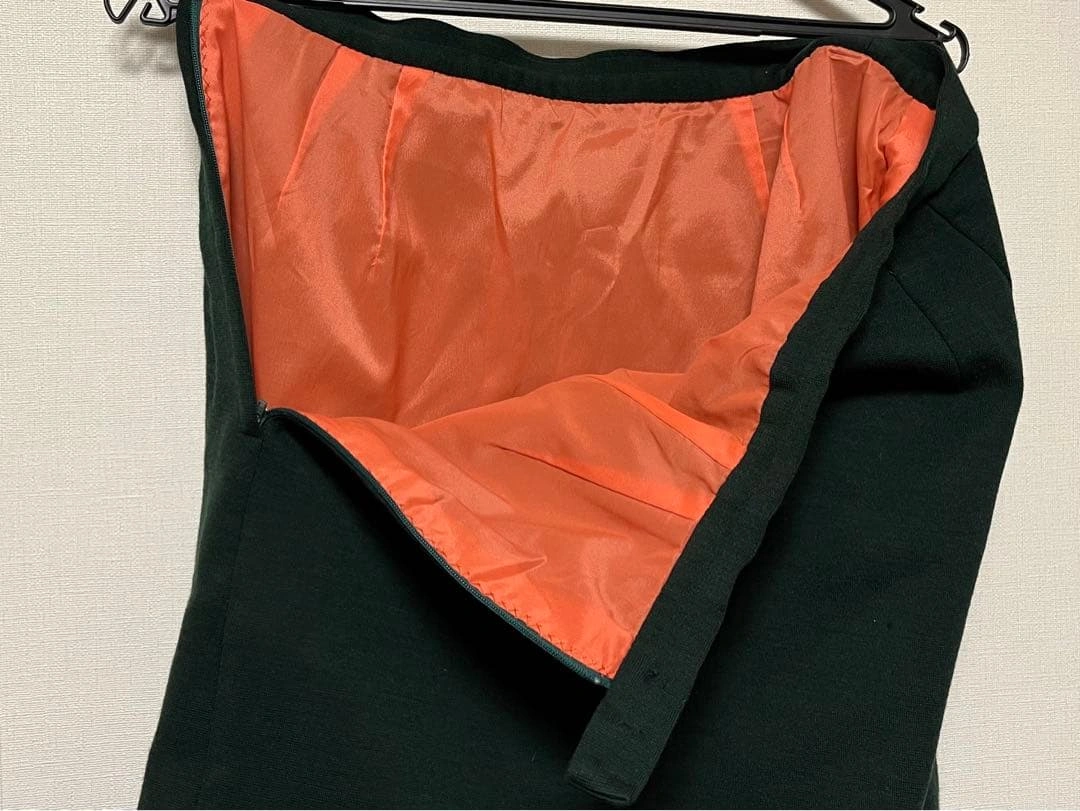 数年前に使用していました。自宅保管の為、ご了承の上お取引をお願いします。 - カラー: ダークグリーン、深緑色 - 裏地: オレンジ色の裏地 - 生地:コットンぽい厚手 - ウエスト:3段フックとチャックで固定 -サイズ:総丈…約54cm、ウエスト…約72cm、ヒップ…約94cm - スタイル: タイトスカート(膝丈) - 季節:秋、冬 -目安サイズ:身長160cm女性が着用していました #古着 ご希望の方はお気軽にご連絡ください。