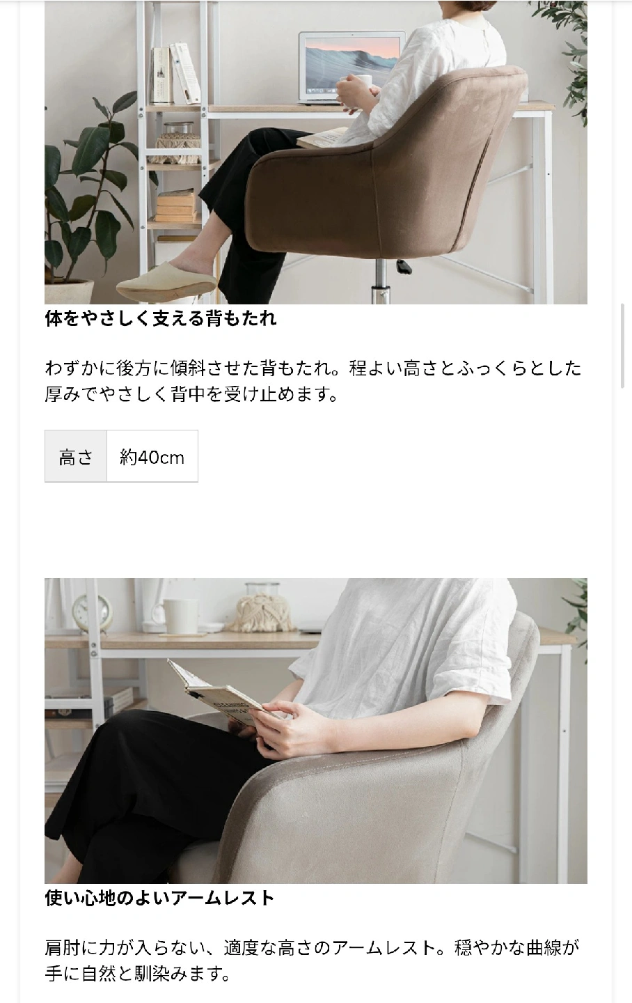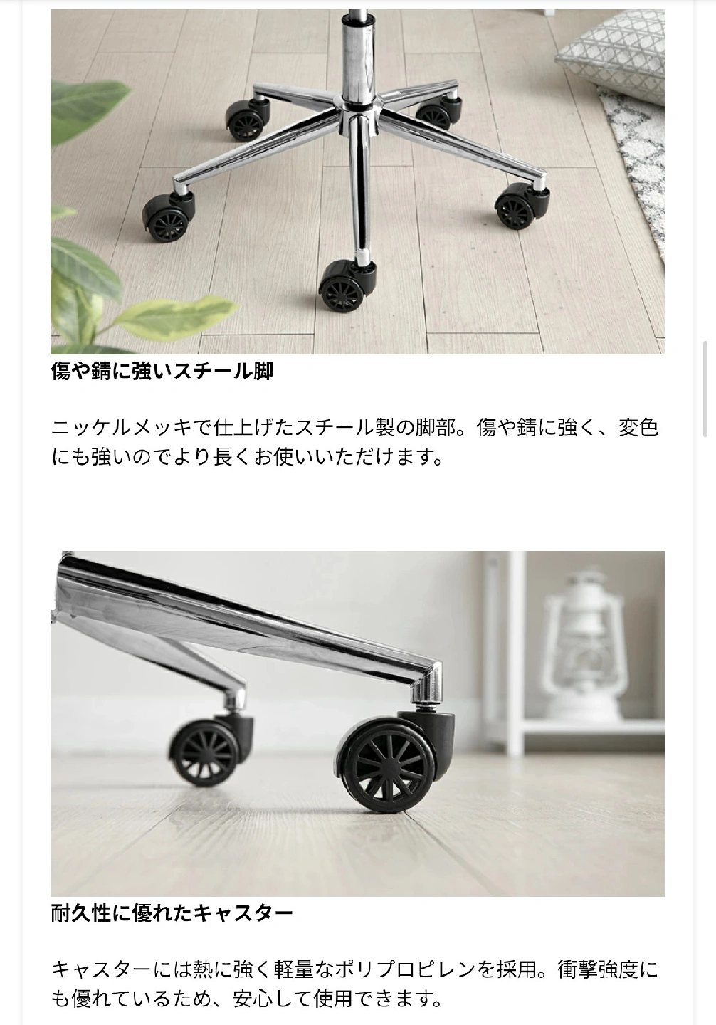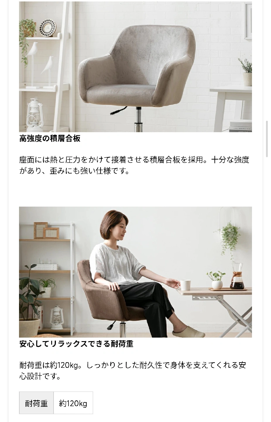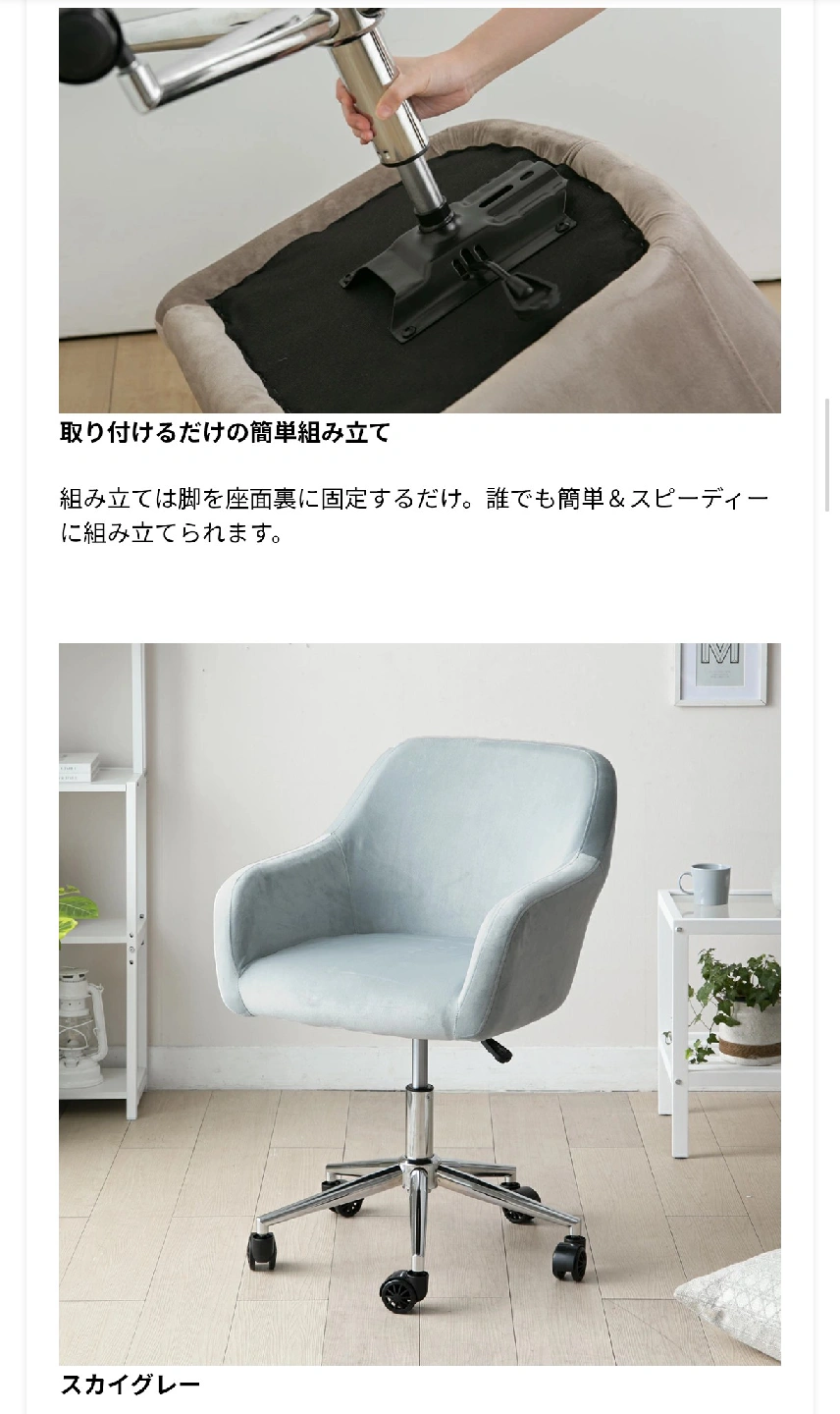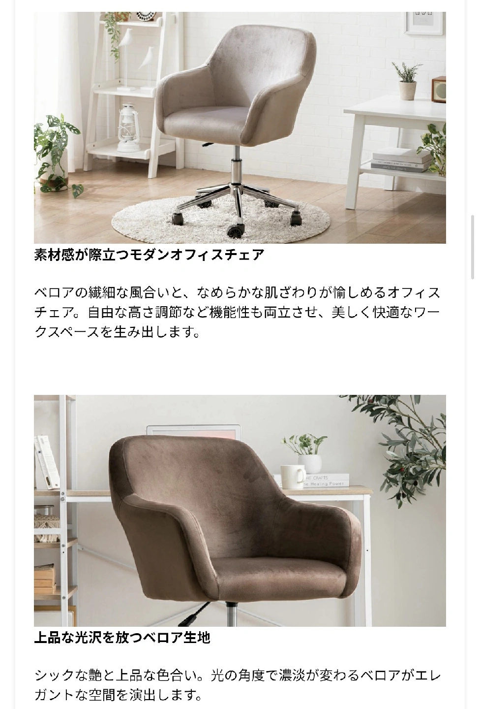 チェアです 現地付近まで引き取り限定で売却したいです。 宜しくお願い致します。 【情報】 サイズ:幅62×奥行き61×高さ81〜91cm(座面高45〜55cm) 素材:ベロア生地(100%ポリエステル)、積層合板、ガスシリンダー、座金、スチールベース、PUキャスター 耐荷重:約120kg 【状態】 目立つキズなし 中古品であることご了承ください