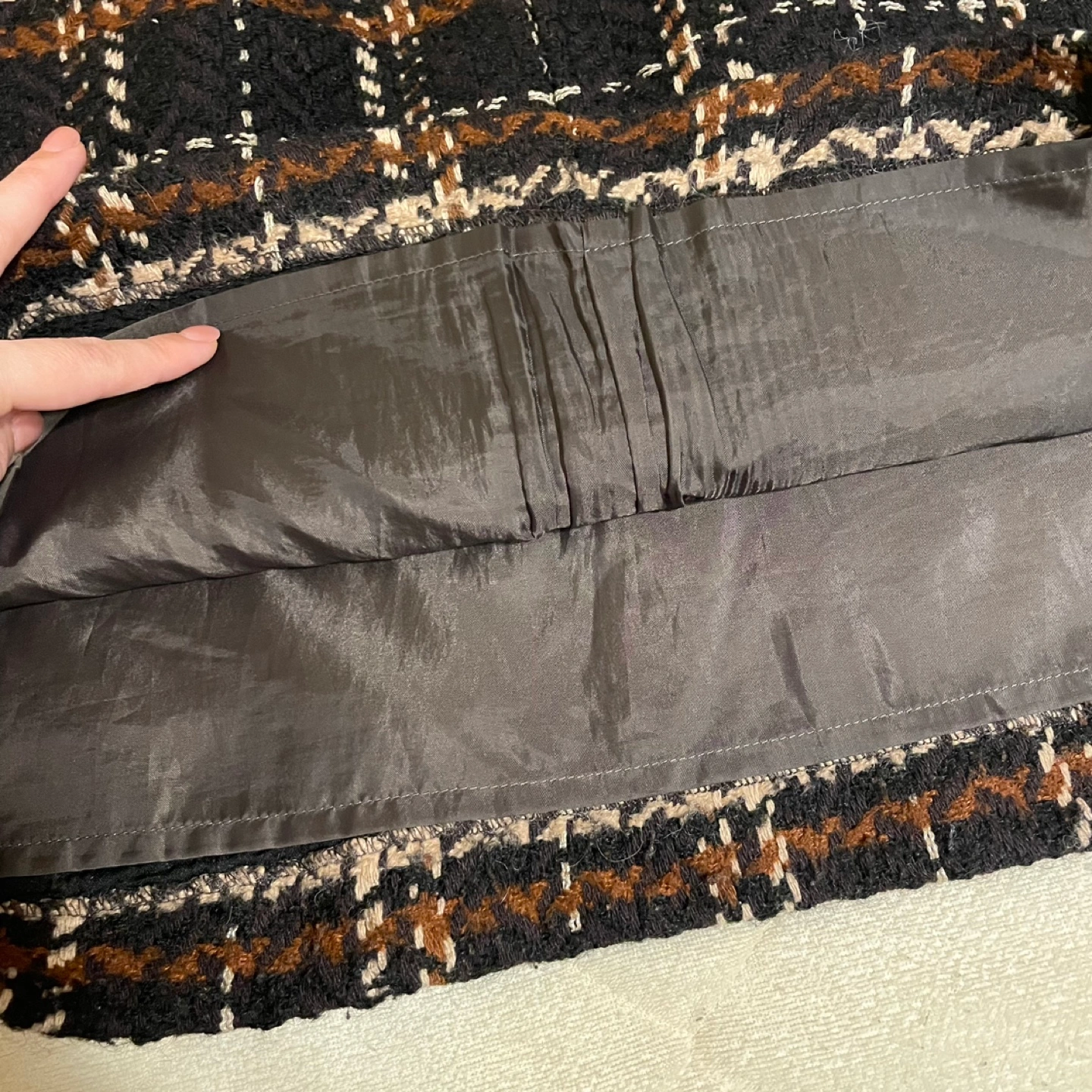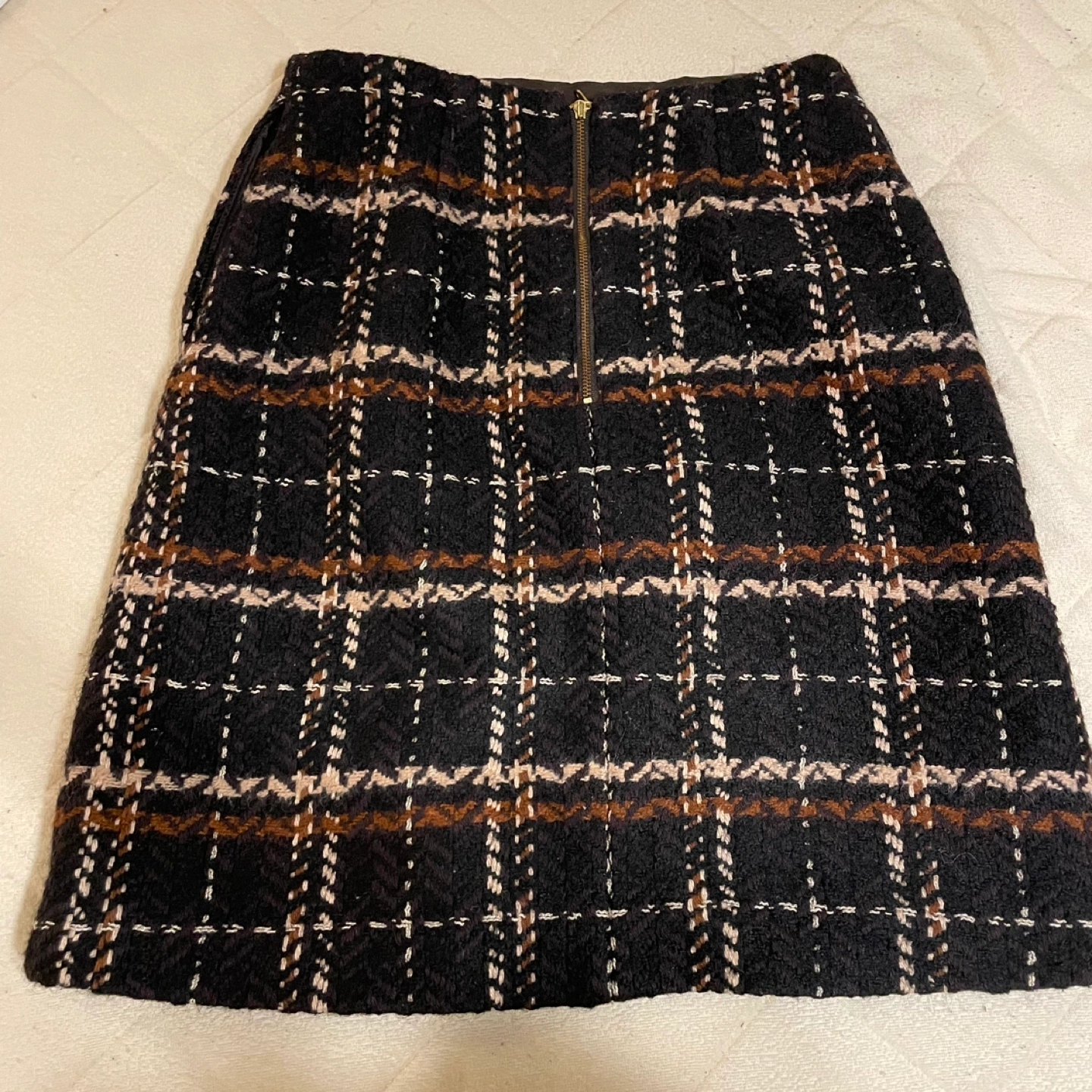 最近は冬に発売されてるスカートでもウールが入ってないものが多いですが、こちらはウールが入っており、裏地もしっかりついています。 黒をベースに茶系で展開されるチェック柄が温かみもあり冬っぽく可愛いです。 後ろがジップアップになっています。 見た目も可愛いく履き心地も良く、手持ちのワードローブの大のお気に入りだったのですがこの度妊娠し、子育て中はファッションが変わりそうなので出品します。 - 色: 黒、茶、白のチェック柄 - デザイン: タイトスカート、後ろジッパー - 裏地: あり、滑らかな素材 ご覧いただきありがとうございました。 #ロペピクニック #タイトスカート #台形スカート #膝丈スカート