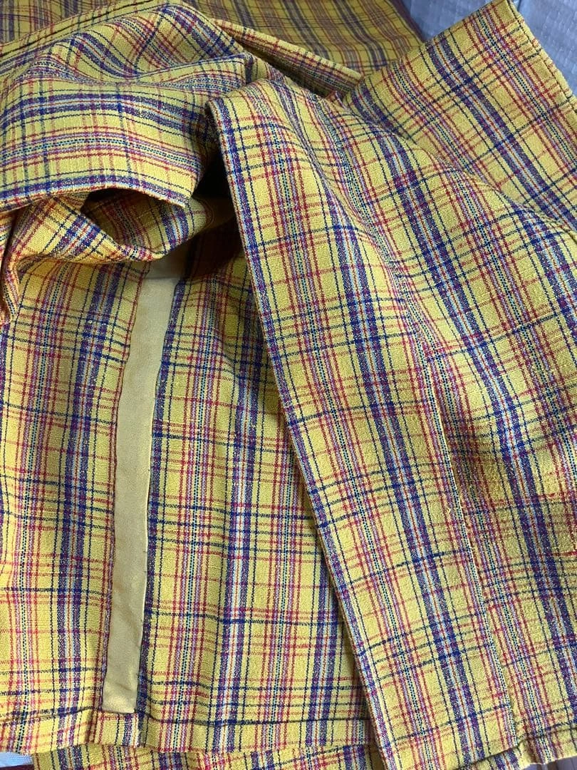 黄色地に赤と青のチェック柄の紬着物です。 夏季、単衣。 - 色: 黄色地に赤と青のチェック柄 - 素材: 紬 - 袖の形: 広袖 サイズ ・身丈 153cm ・裄 63.5cm ・袖丈 49cm ・袖巾 33.5cm 未使用品。 自宅保管品です。 サイズに関して、多少の誤差はご了承下さい。 検品はしておりますが見落としたシミや汚れなどがある場合もございます。 完品をお求めのお方はご遠慮下さいませ。 光の加減やお使いの端末の設定により写真の色と商品の色が異なることがあります。 ご理解ご了承の上にご購入お願い致します。 ご覧いただきありがとうございます。
