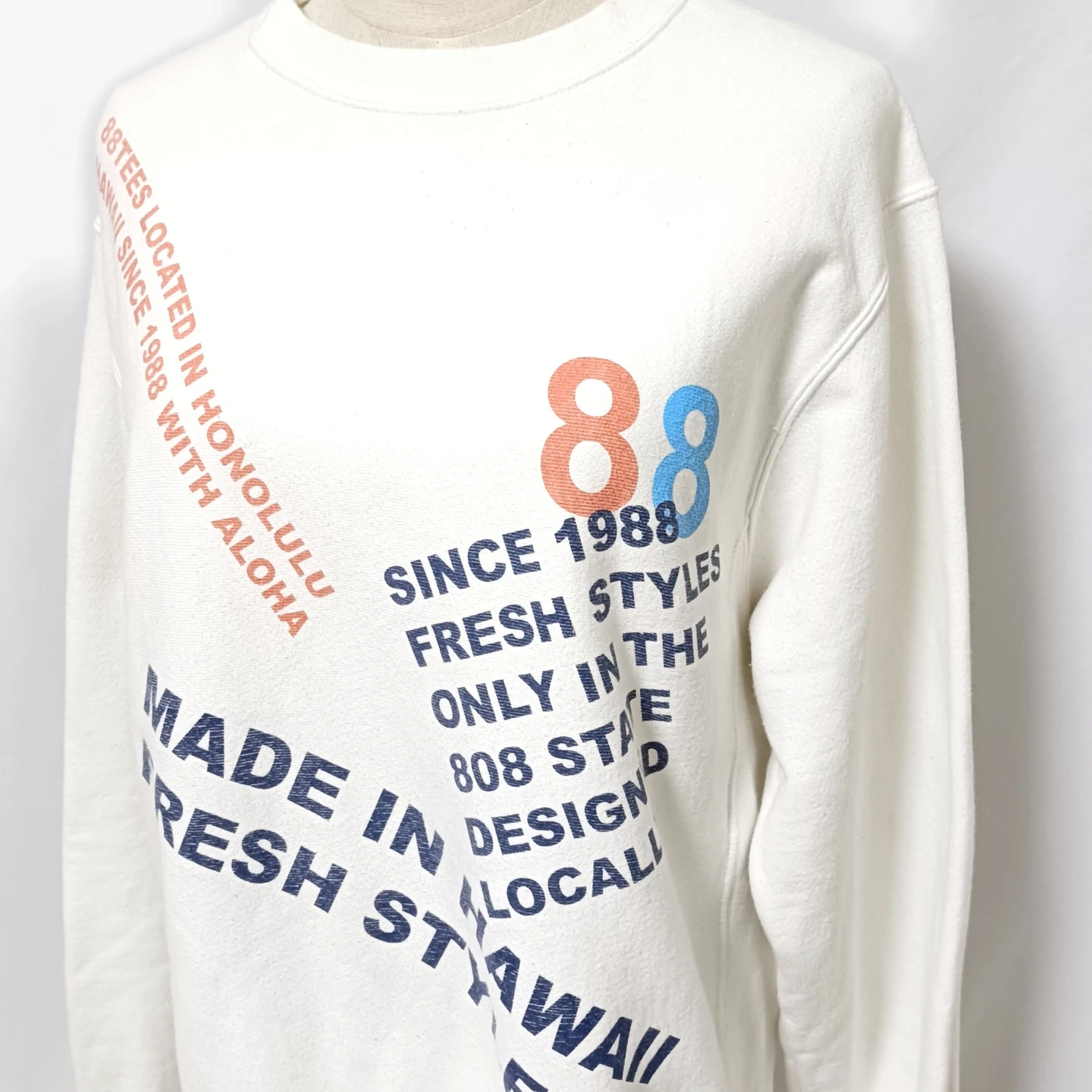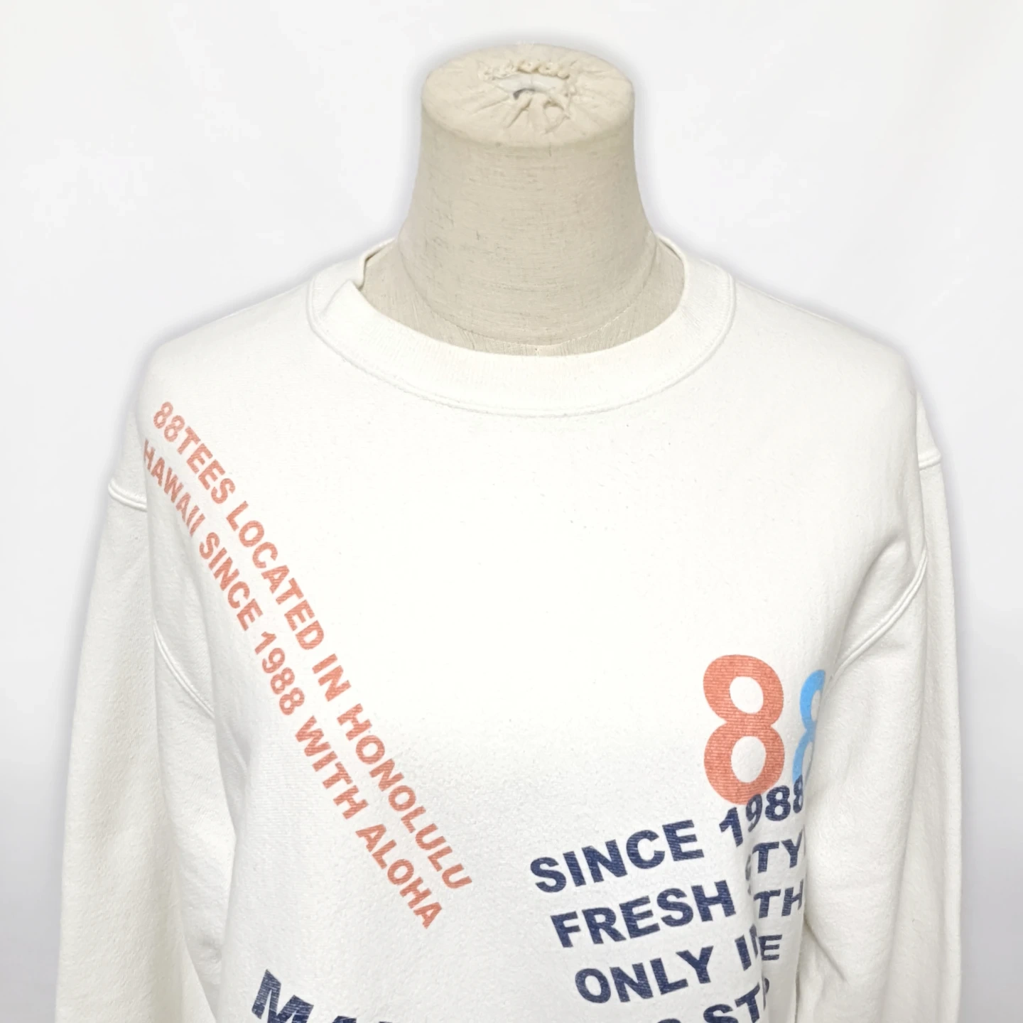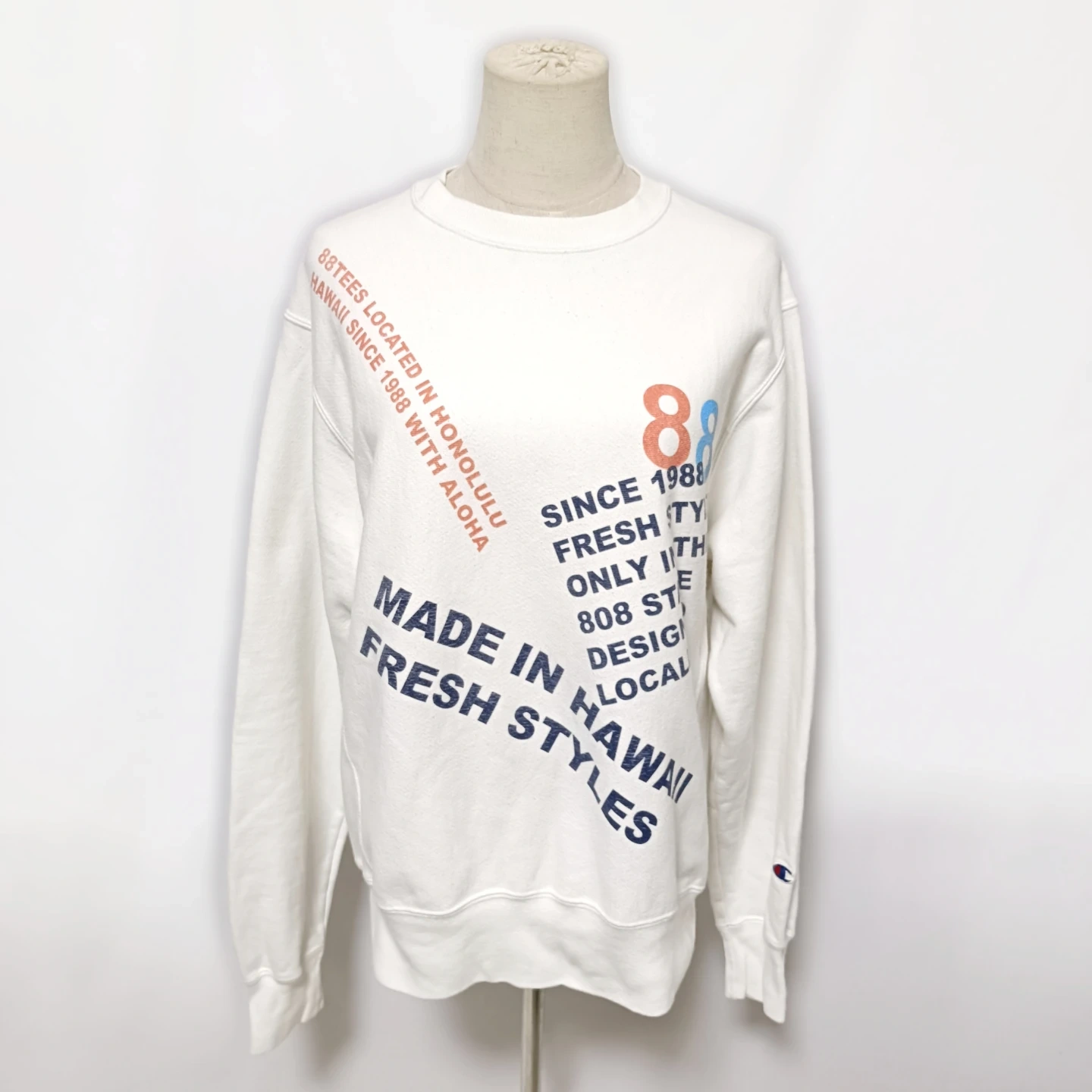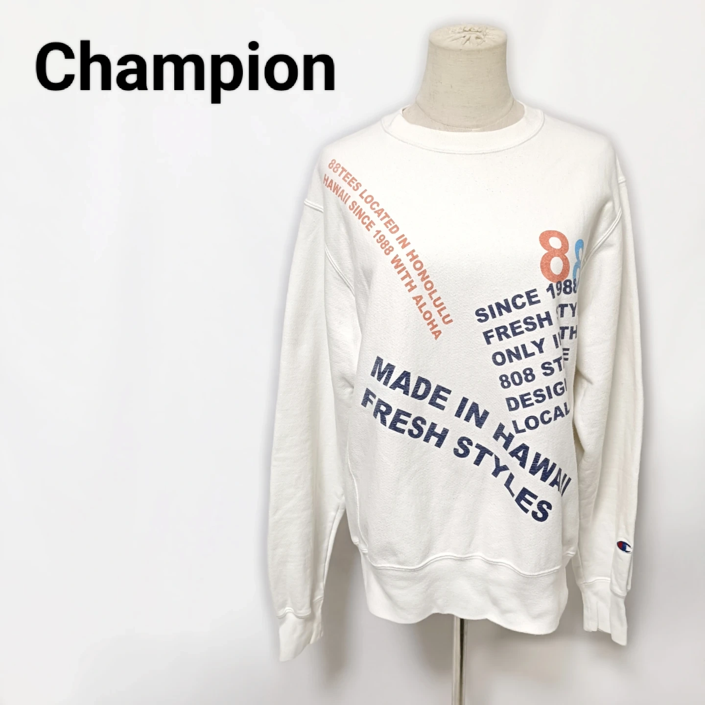 ご覧いただきありがとうございます! 大人気!ハワイ限定の希少なコラボアイテムです! ハワイの有名Tシャツショップ 88TEES(エイティエイティーズ) と、Champion(チャンピオン) の名作 REVERSE WEAVE®(リバースウィーブ) がコラボレーションした限定スウェットです。 ハワイ好きの方、リバースウィーブのコレクターの方に特におすすめの一着です。 □商品名□ チャンピオン リバースウィーブ×88TEES ハワイ限定 コラボスウェット 白 □ブランド□ チャンピオン □表記サイズ□ S □実寸サイズ(cm) □ 着丈:66 肩幅:48 身幅:54 袖丈:66 ※実寸につきまして多少の誤差はご了承ください。 ※表記サイズだけではなく実寸のサイズをご確認ください。 □カラー□ ホワイト (白) □素材□ 82% コットン 18% ポリエステル □コンディション□ 目立った汚れやダメージなど特にございません。 ※汚れはできる限り写真にて掲載しております。まずは画像をご確認ください。 どうぞよろしくお願い致します。 □商品管理番号□ HH1-W-5531