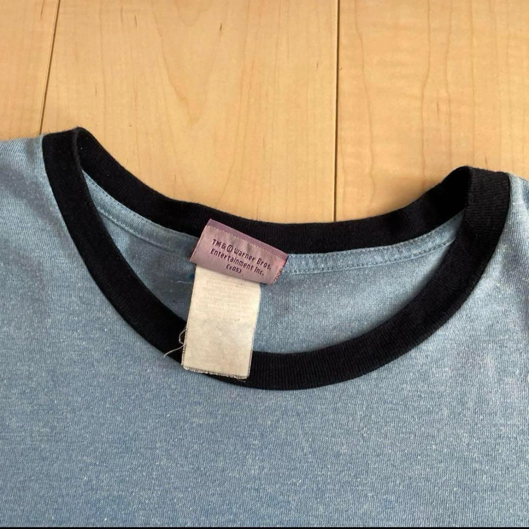 少々使用感のある、2005年チャーリーとチョコレート工場のリンガーTシャツです。 監督はティム・バートン。 サイズ: L-XL相当(素人採寸ですが下記をご参考下さい) 実寸平置き 着丈:約71.5cm(首肩付け根から裾下) 身幅:約56.5㎝(脇下から脇下) 肩幅:約55.5cm(肩から肩を直線で計測) 袖丈:約23.5.cm(肩から袖先) 袖: 裾:ダブルステッチ ブランド: チャーリーとチョコレート工場 色: 水色 素材: コットン 100% 【注意事項】 採寸や状態に関しては個人的主観の上、細かい点などは見落とす可能性もある為、古着慣れされていない方、神経質な方のご購入はお控えください。 アリスインワンダーランド ダークシャドー スウィーニートッド ナイトメアビフォアクリスマス ウェンズデー ご希望の方はお気軽にご連絡ください。