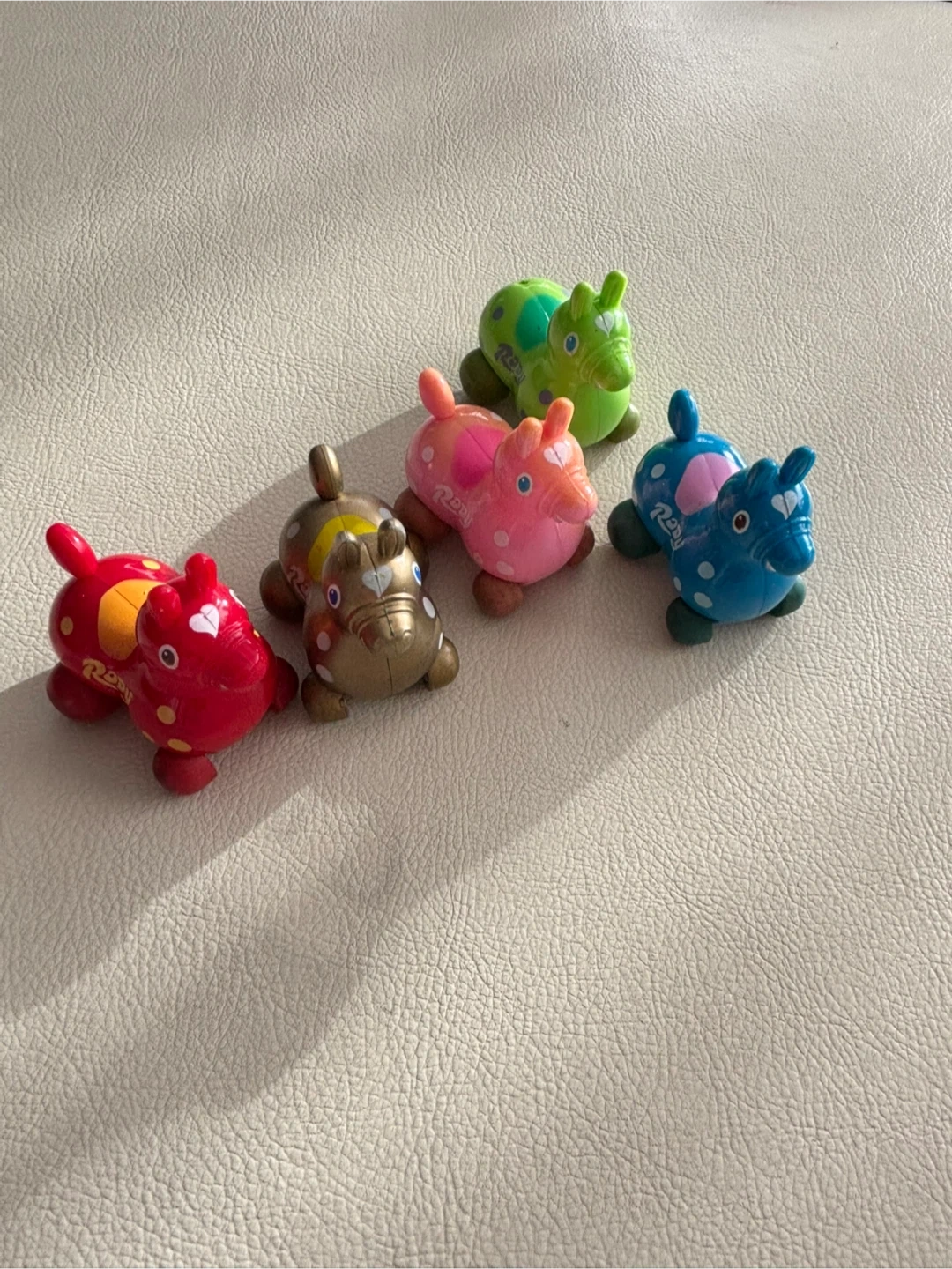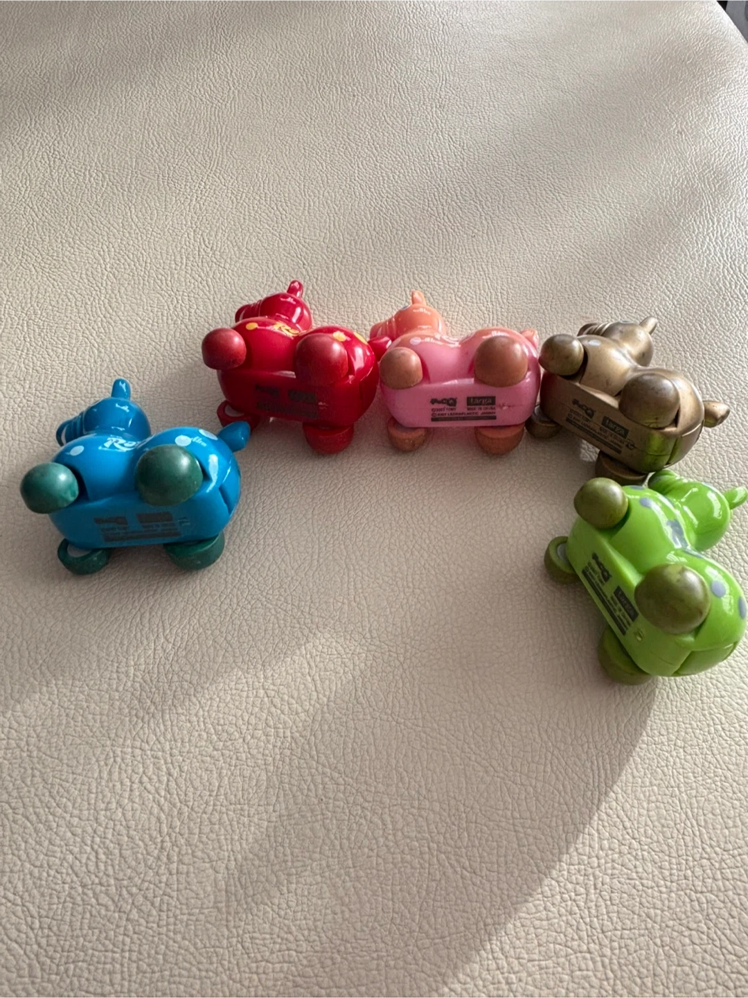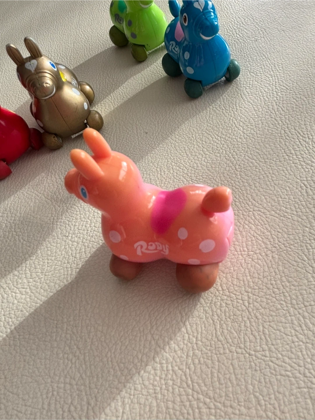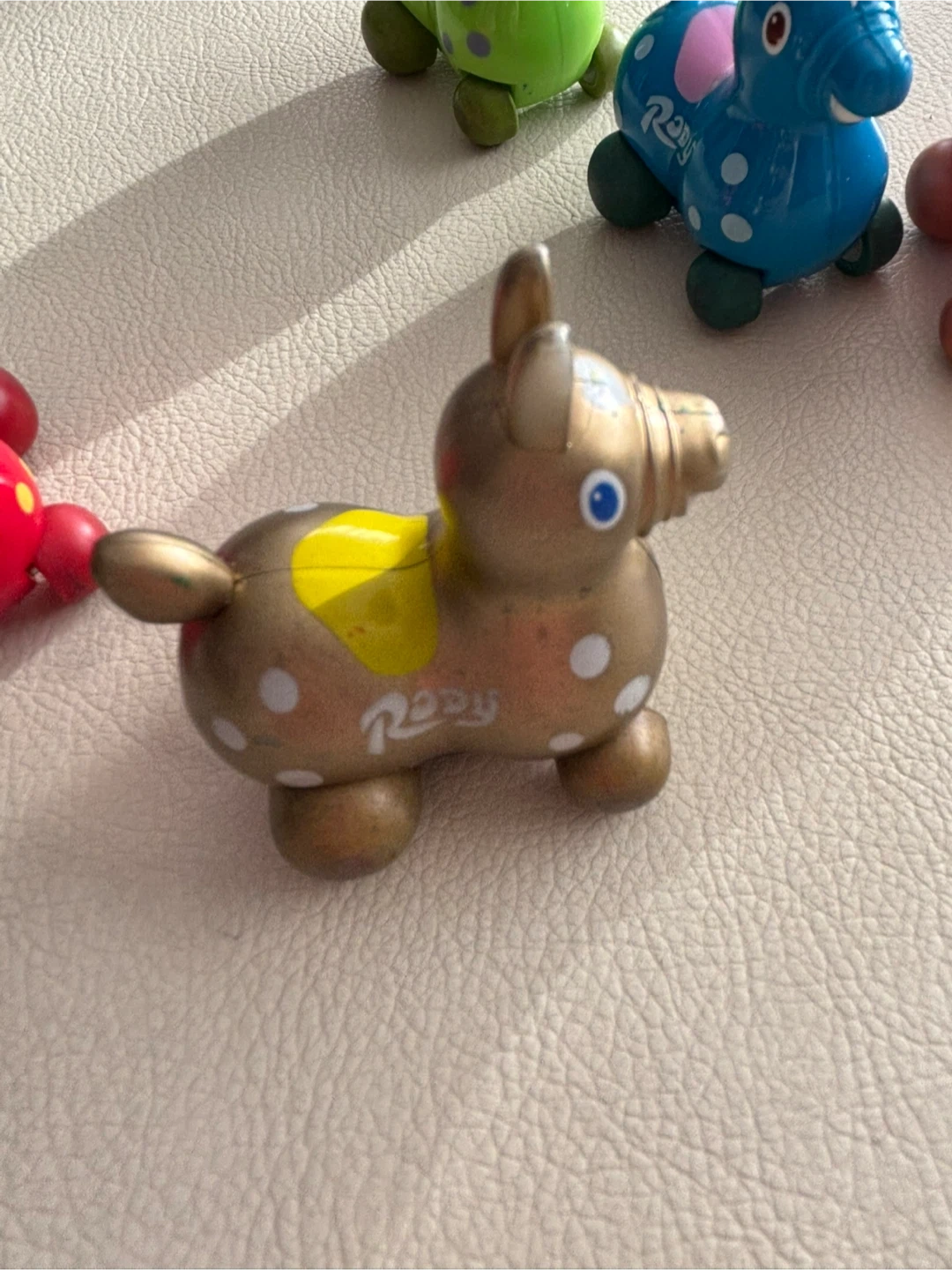 ロディ チョロQ4台セットです。 オリジナルのセットは5台で黄色も入ってたような気がしますが行方不明になりました。 代わりにミニ花柄ロディ(チョロQではありません)をオマケします。 かなり遊んだ中古品ですので全てに汚れや傷があります。タイヤの汚れは特に目立ちます。 ピンクのロディは一部日焼けと経年による変色が後頭部や背にあります。 ゴールドのロディの汚れが一番目立ちます。 4台とも動作に問題なくウィリー用のコインスロットも付いてます。
