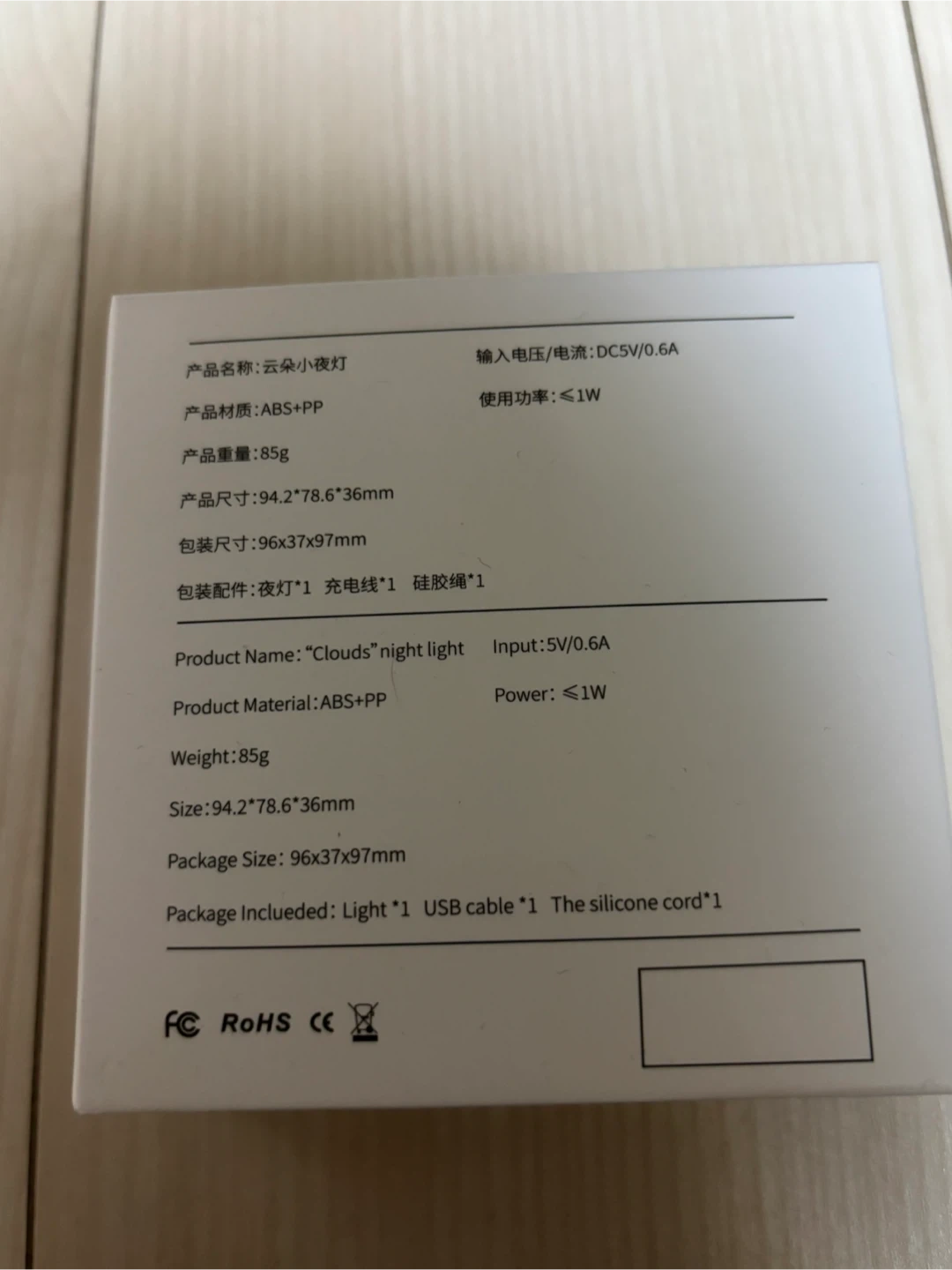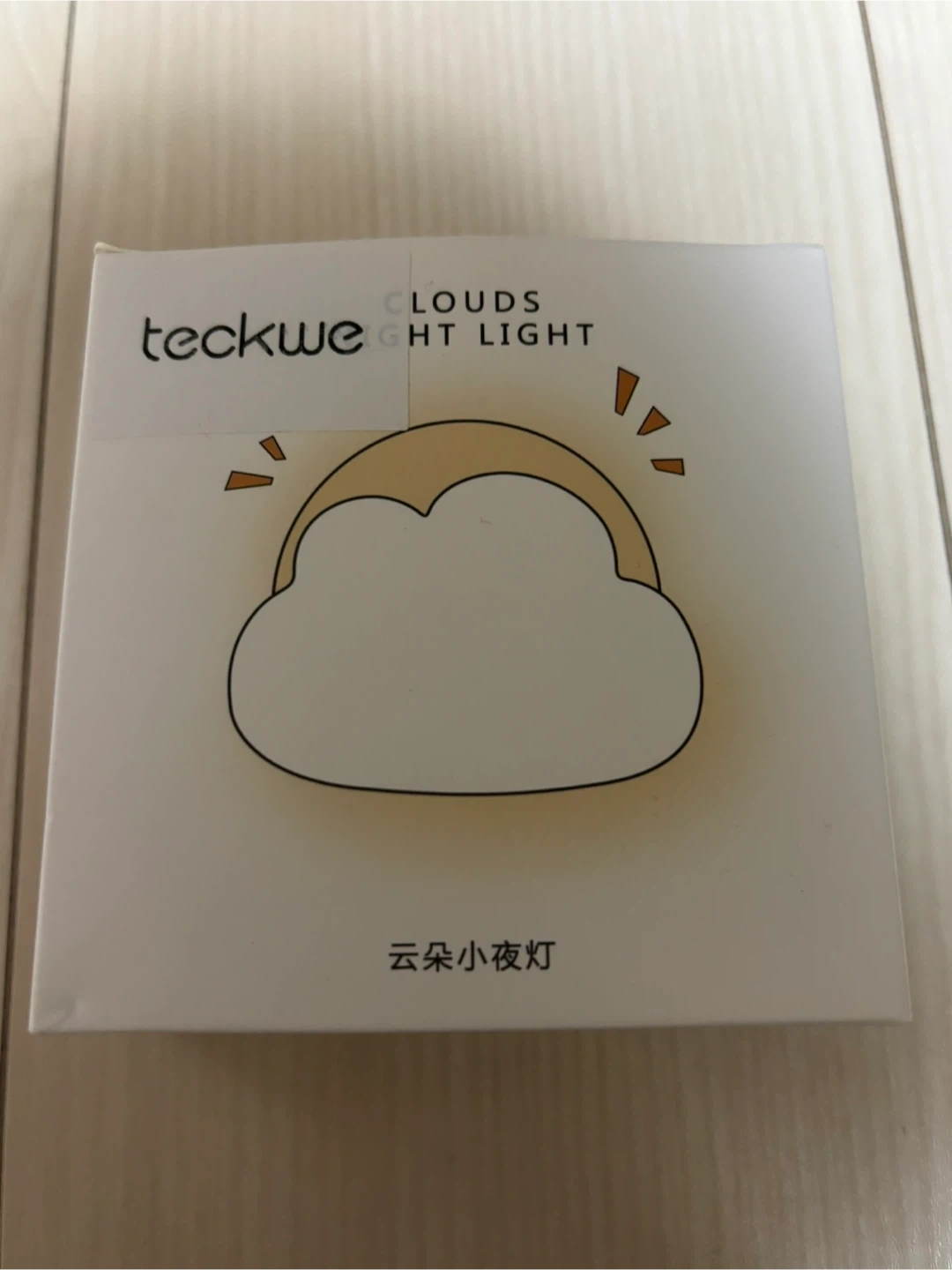 テックウェのクラウド型ナイトライトです。 【情報】 ブランド:テックウェ 商品名:Clouds night light 製品材質:ABS+PP サイズ:94.2*78.6*36mm 入力:5V/0.6A 電力:≦1W 【付属品】 ライト本体、USBケーブル、シリコンコード