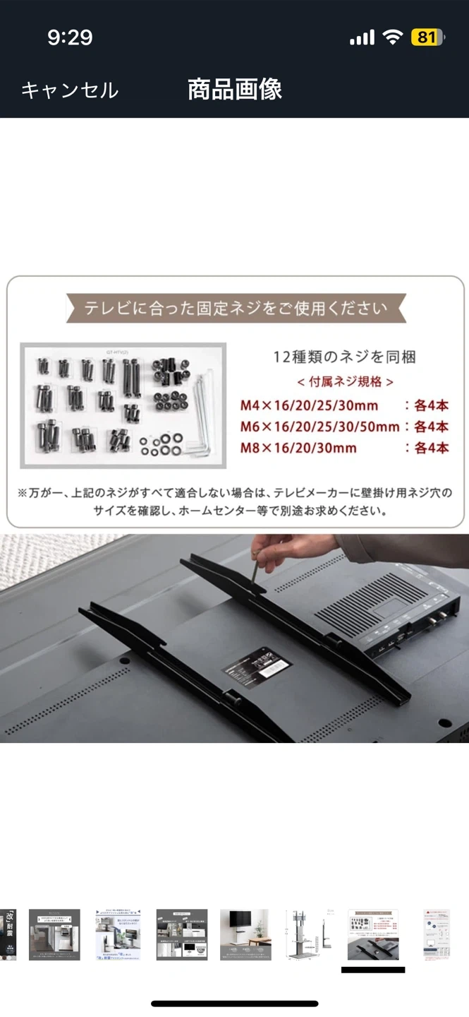 32~77インチ対応のテレビスタンドです。 3年前に購入し、このままの形でお渡しする予定です。 ・色:グレー ・棚付き ・回転、高さ調節可能 ・付属品:ネジ各種、工具 、説明書 ネジ、工具全てあります。 中古である事をご了承の上でご連絡ください。