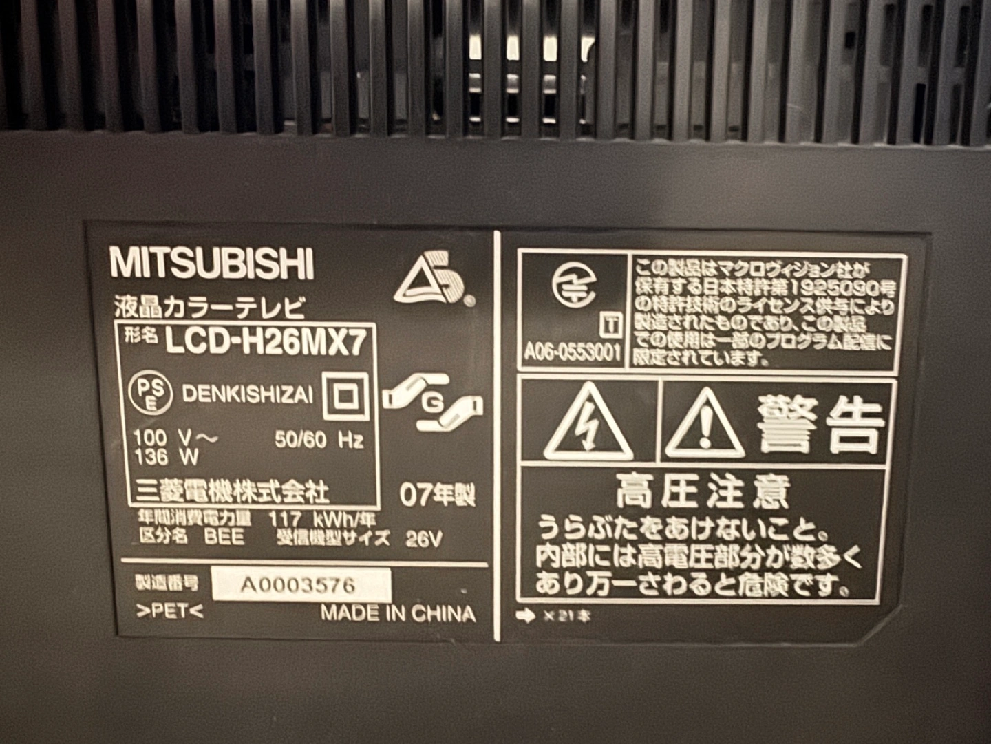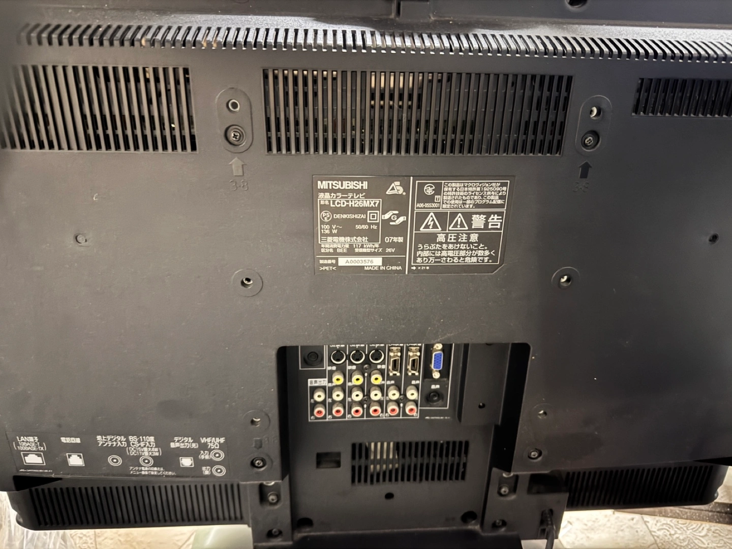 ・表示画素数:1366×768(WXGA) ・スピーカー:(6cm×12cm)×2個 ・音声出力:10W+10W ・デジタルチューナー:地上・BS・110度CS ・ビデオ入力:3系統3端子(S2入力3系統) ・D4端子入力:2系統2端子 ・PC端子:1系統1端子(D-sub15ピン) ・デジタル光音声出力:1系統1端子 ・Irシステム端子:1系統1端子 ・電話回線端子:2400bps ・LAN端子:10BASE-T/100BASE-TX 連絡ください!