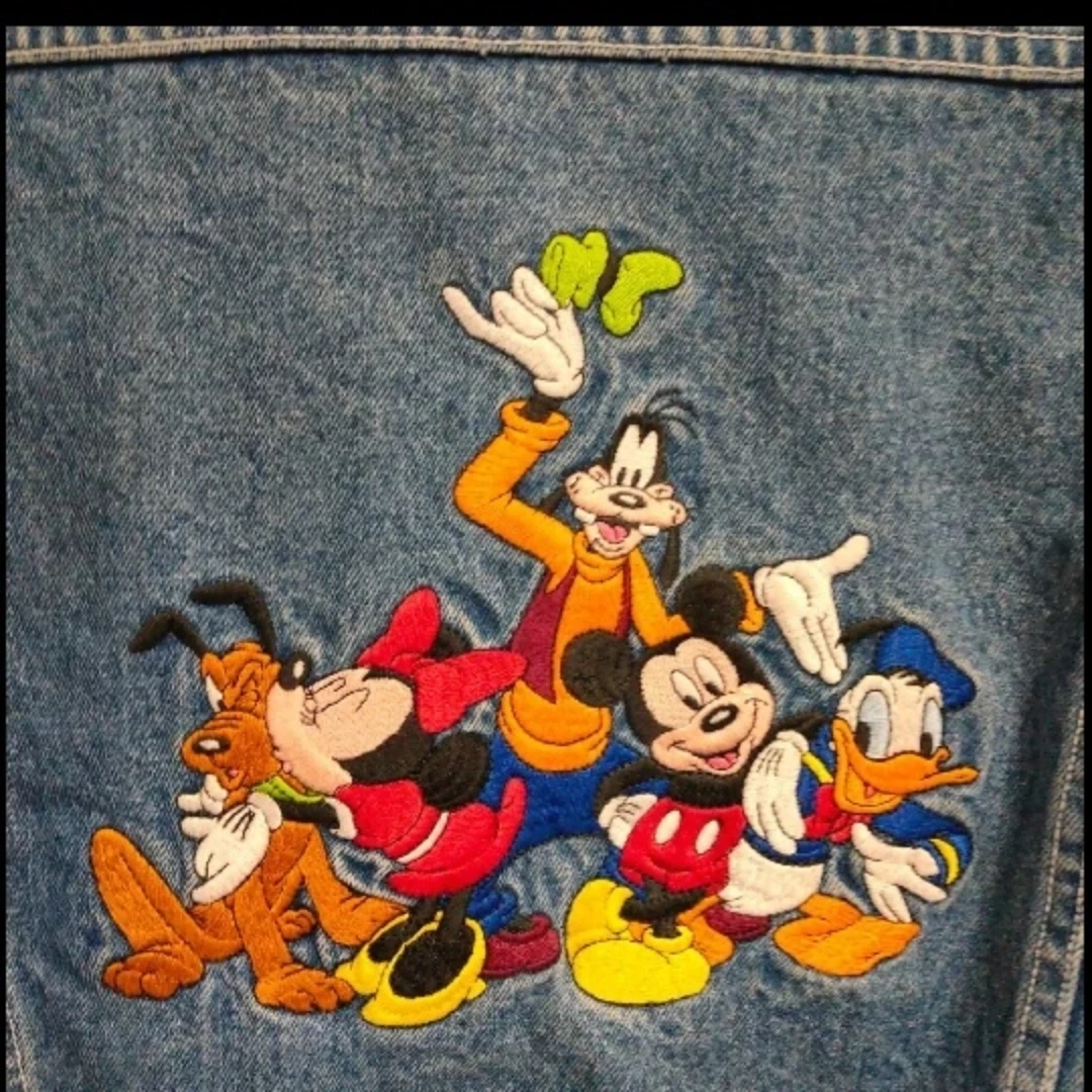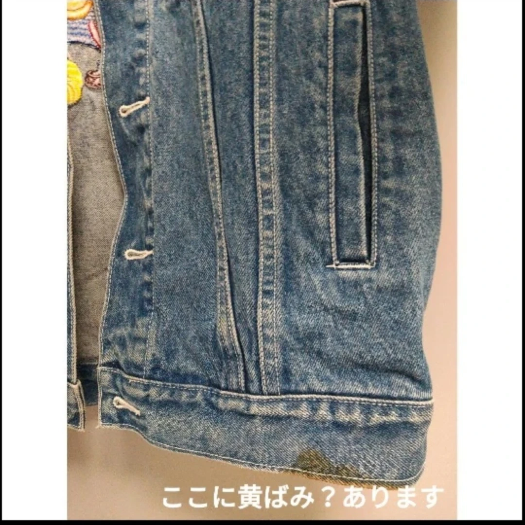 平成初期頃にアメリカのディズニーストアーで購入した ディズニーフレンズが鮮やか な刺繍で背中に勢揃いしているGジャンです!デニムジャケットです。 size S 身幅 50cm 身丈 64cm 袖丈 60cm 裾幅 26cm 脇下 46cm size表記はSですがユニセックス男女兼用Lサイズ相当の感じです。 裾幅はボタンで3cmほど絞れます。 特記するダメージは写真にアップしておりますが、左ポケ下に茶色のシミが見られると思います。 着用したらそこまでわからない程度のシミですが、古着にご理解頂ける方にお譲りしたいと思います。 ディズニー好きの方、ビンテージ古着がお好きな方いかがでしょうか? 小さく折りたたんで発送予定です。 宜しくお願い致します。