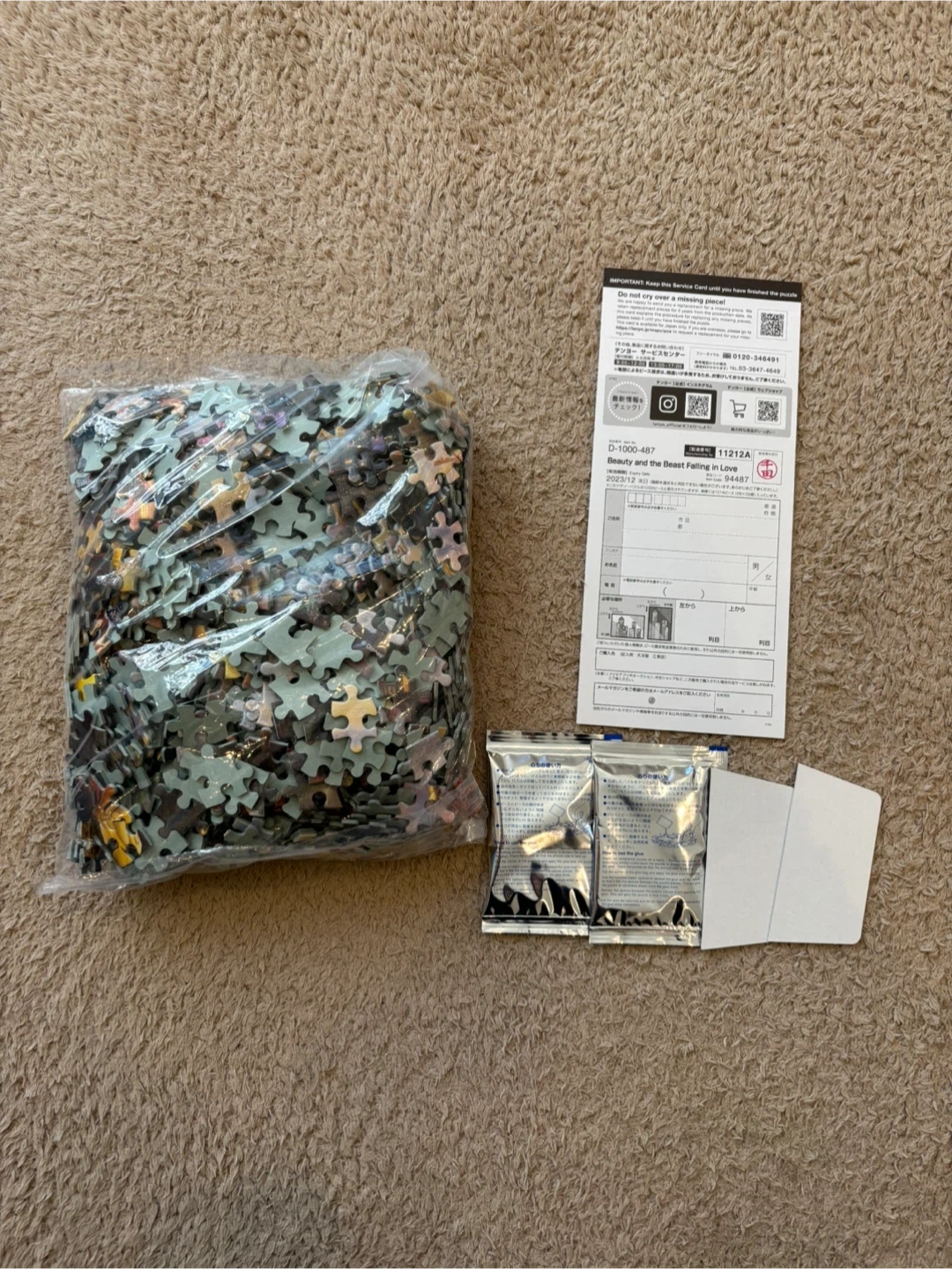 ディズニーのジグソーパズル1000ピースです。 ・絵柄:美女と野獣 ・ピース数:1000 ・付属品:のり、ヘラ ・状態:開封済み、不足はありません 箱に一部折れジワ、キズあり 中古品であることご了承ください
