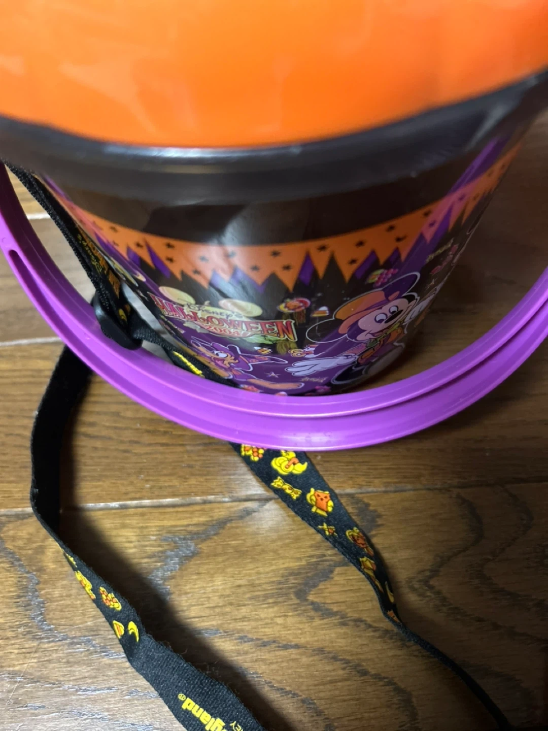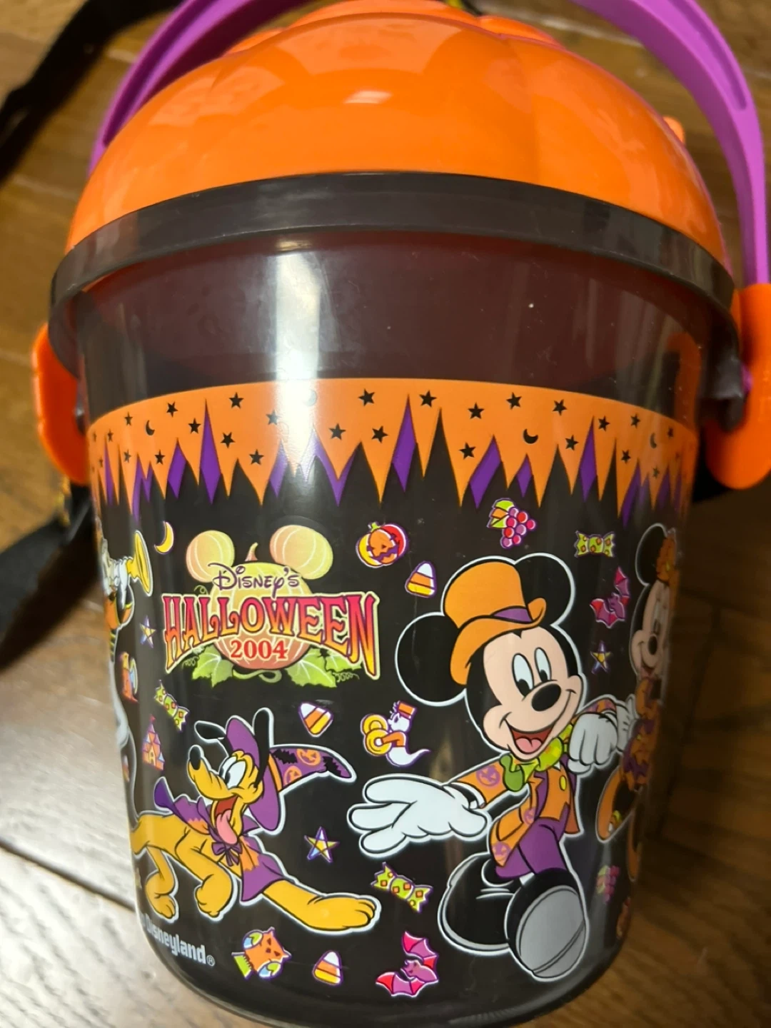 ディズニーのスーベニアバケットです ・ハロウィン 2004とクリスマスファンタジー2002のデザイン ・オレンジ色のカボチャ型(蓋) ・持ち手とストラップ付き ・使用感あり 中古品であることご了承ください