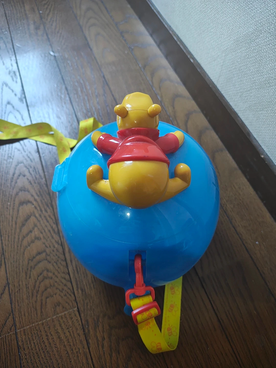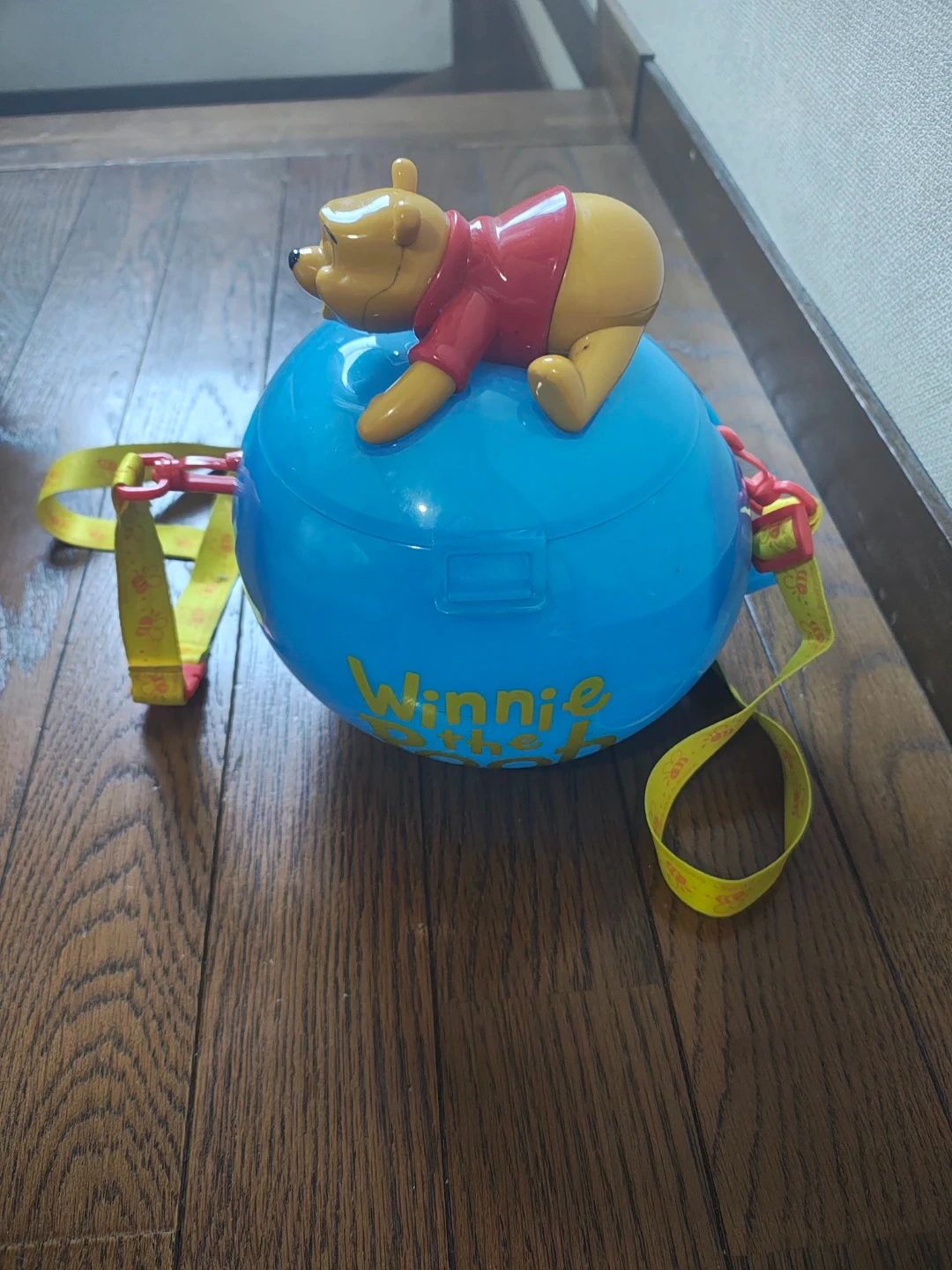 ディズニーのプーさんのポップコーンバケットです。 ・青色の球体の容器 ・プーさんの人形が上に乗っている ・黄色のストラップ付き ・使用感あり 中古品であることをご了承ください。