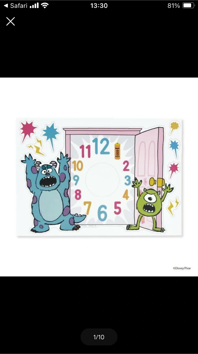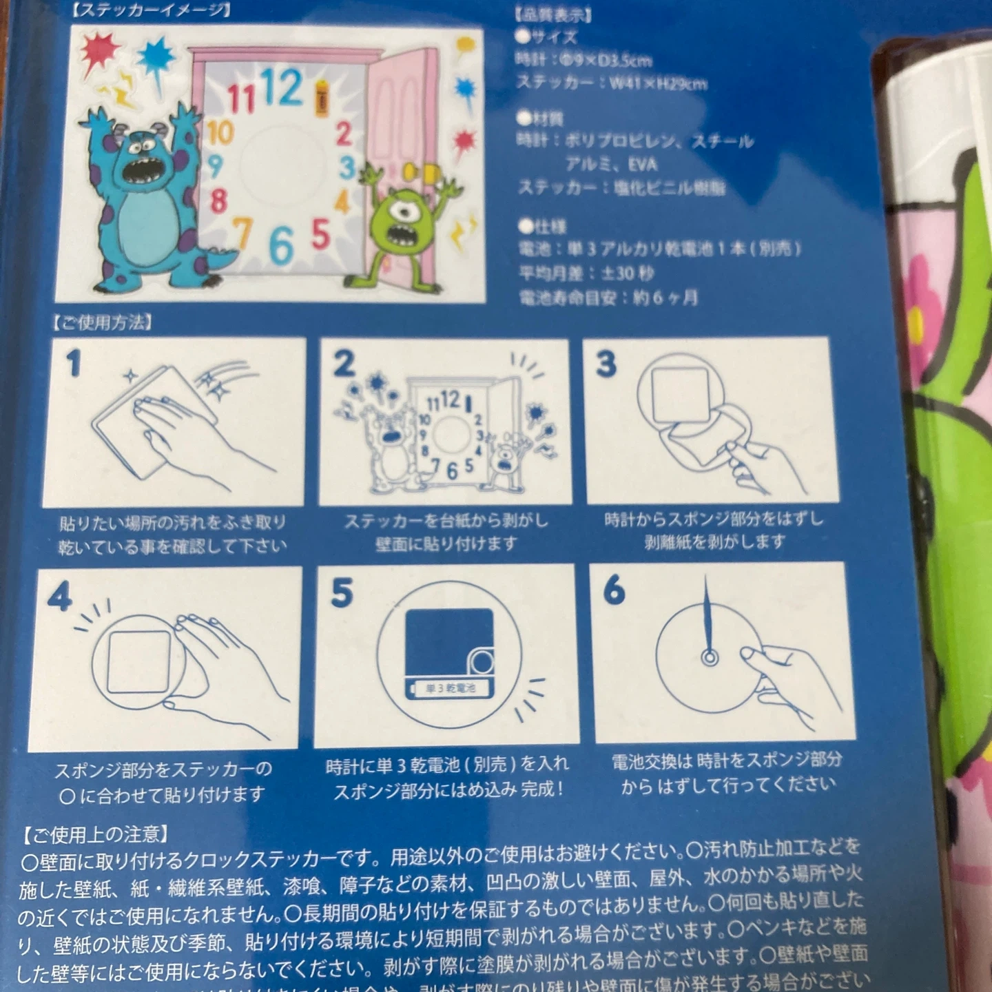 ディズニー モンスターズインクのウォールクロックステッカーです。 ・モンスターズインクのキャラクターデザイン ・壁に貼るタイプの時計 ・電池交換可能 クリスマスプレゼント 誕生日プレゼントにいかがですか?