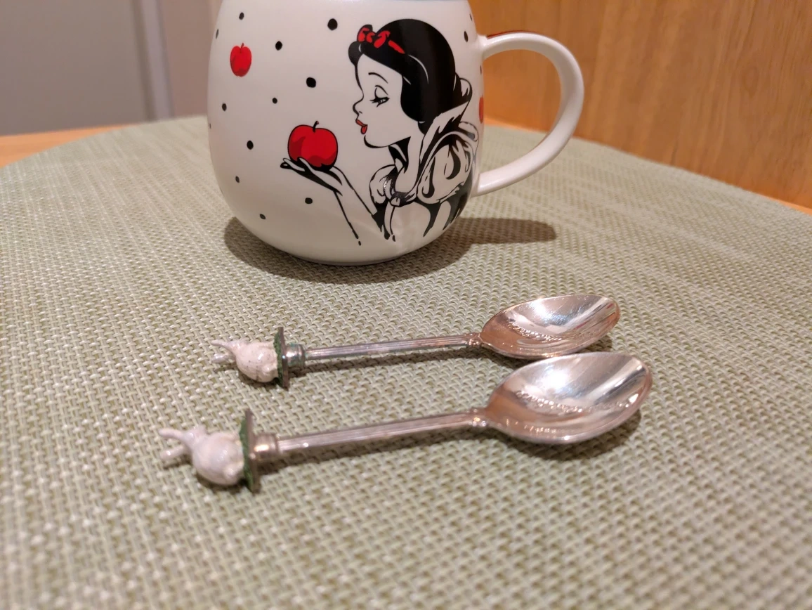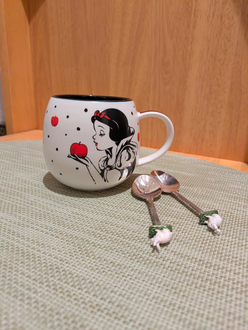 ディズニーの白雪姫のマグカップとスプーンのセットです。 ・マグカップには白雪姫とリンゴの絵柄 ・スプーン2本付き頭がうさぎ ・使用感少なめ 中古品であることご了承ください。