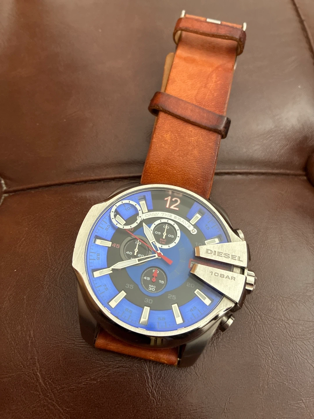 ディーゼルの腕時計です。 ・ブランド:ディーゼル ・文字盤カラー:ブルー、ブラック ・ベルトカラー:ブラウン ・状態:使用感あり 時計は動いていますが、遅れてます。 電池交換が必要かと思います。 父が使用してたのですが、ずっと自宅保管の為ご理解いただける方のみお願い致します。 転居の為12月14日迄の掲載です。 ご不明点があればお気軽にご連絡ください。