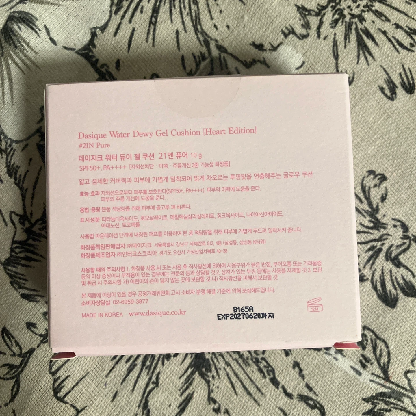 デイジークのクッションファンデーションです。 ・ブランド:デイジーク(dasique) ・商品名:Water Dewy Gel Cushion Heart Edition ・カラー:21N Pure ・SPF50+、PA++++ ・使用期限:EXP20270620 Amazonで先月2580円で購入しましたが実際、私には白めでした。一度試し塗りの みです。ミラーフィルムも剥がしていません とても人気で可愛くみずみずしいファンデです。よろしくお願い致します😊 中古品であることご了承ください。