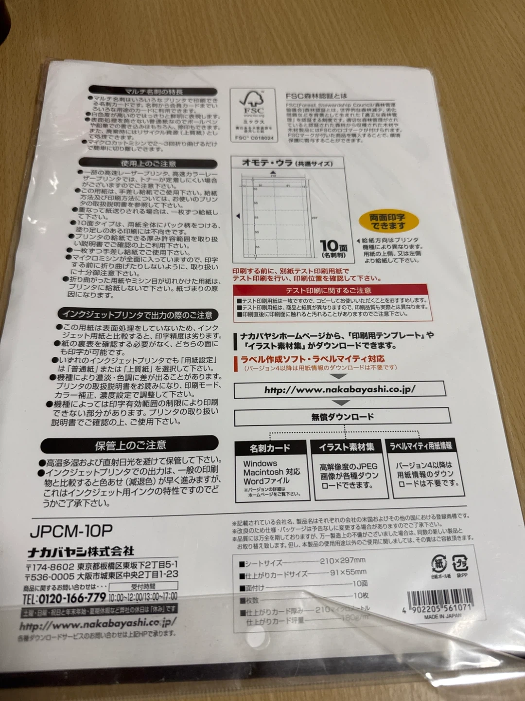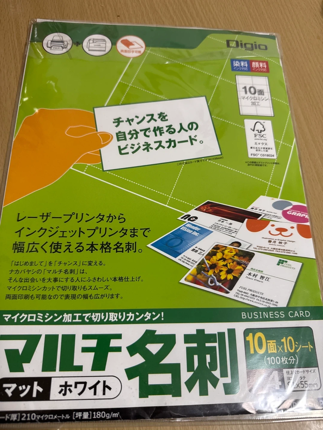 デジオのマルチ名刺です。 【情報】 ブランド:デジオ 商品名:マルチ名刺 シートサイズ:210×297mm 仕上がりカードサイズ:91×55mm 面付:10面付 枚数:5枚 厚み:210マイクロメートル、坪量180g/㎡ 【状態】 未使用品です。 ご不明点があればお気軽にご連絡ください。 新大久保駅から池袋駅まで対応します。