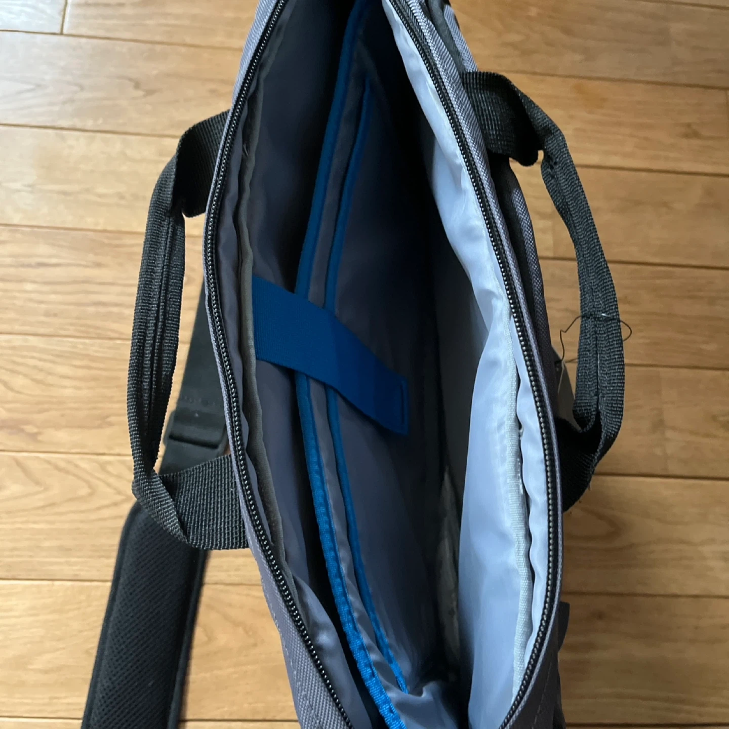 *ご覧になって頂きありがとうございます* こちらはDELL製のグレーのノートPCケースで、スーツケース装着ベルト、前面ポケット、メッシュポケットなど内部にも細かいポケット付きです。 サイズは 幅 43センチ 縦 30センチ 奥行き 6センチ ほどとなります。 - 色: グレー - タイプ: ノートPCケース - 内部素材: メッシュポケット付き - ストラップ: ショルダーストラップ付き -スーツケース装着ベルト付き 新品未使用品ではありますが、個人宅保管品となりますので、細かい点が気にならない方にご検討頂けますと幸いです。