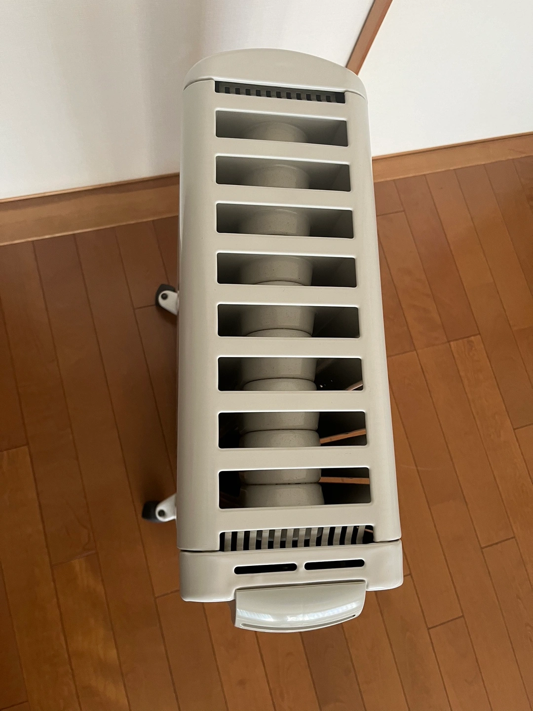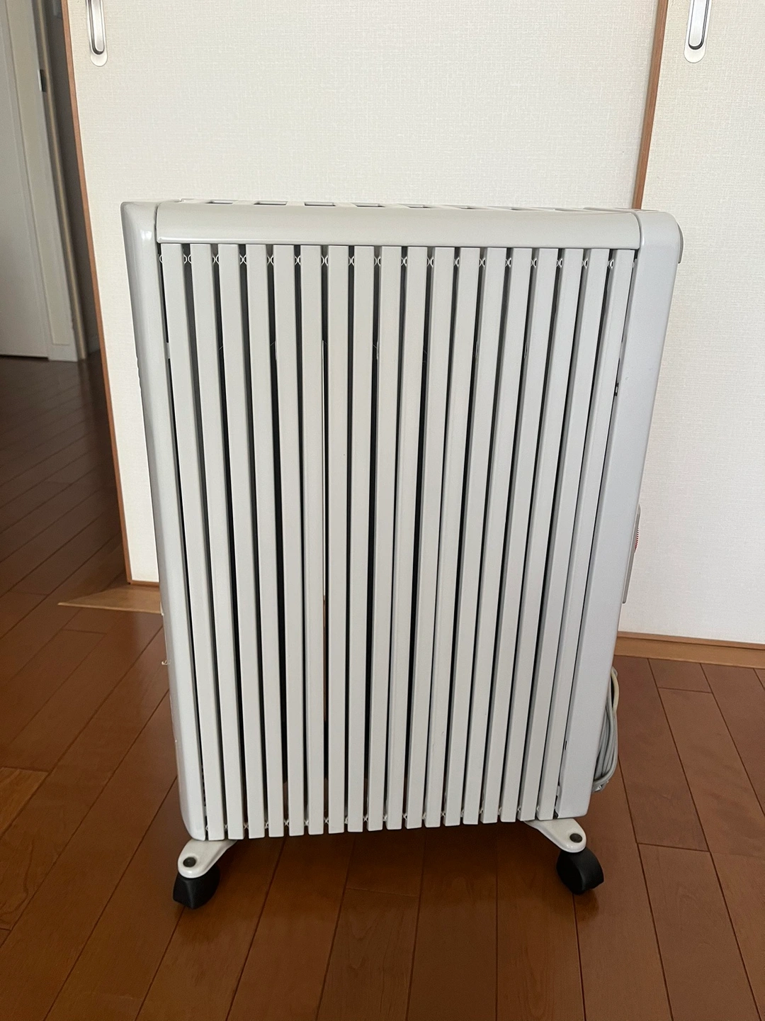 デロンギのオイルヒーターです。 古いお品物ですが、頻度も少なく綺麗に使っておりましたので、目立った傷や汚れは特にありません。 故障や不具合も無く、現役で使えますが、この手のオイルヒーターは書斎や趣味の部屋、子供部屋などを安全にゆっくりまったり温めるのに最適で、広いリビングを素早く温めたり短時間の使用には適していません。 まだMADE IN ITALYの頃の当時人気のヒーターでしたが、最近あまり使用しなくなりましたのでお探しの方がいましたらどうぞ宜しくお願い致します。 説明書はネットで品番を検索すればデロンギのHPから閲覧、ダウンロード出来ます。 受け渡しはイオンとしてしていますが、真裏(徒歩数十秒)が自宅ですので、こちらでも構いません。 重いお品で横にしない方が良いのでお車にある程度のスペースをご準備されると良いです。 よろしくお願い申し上げます。