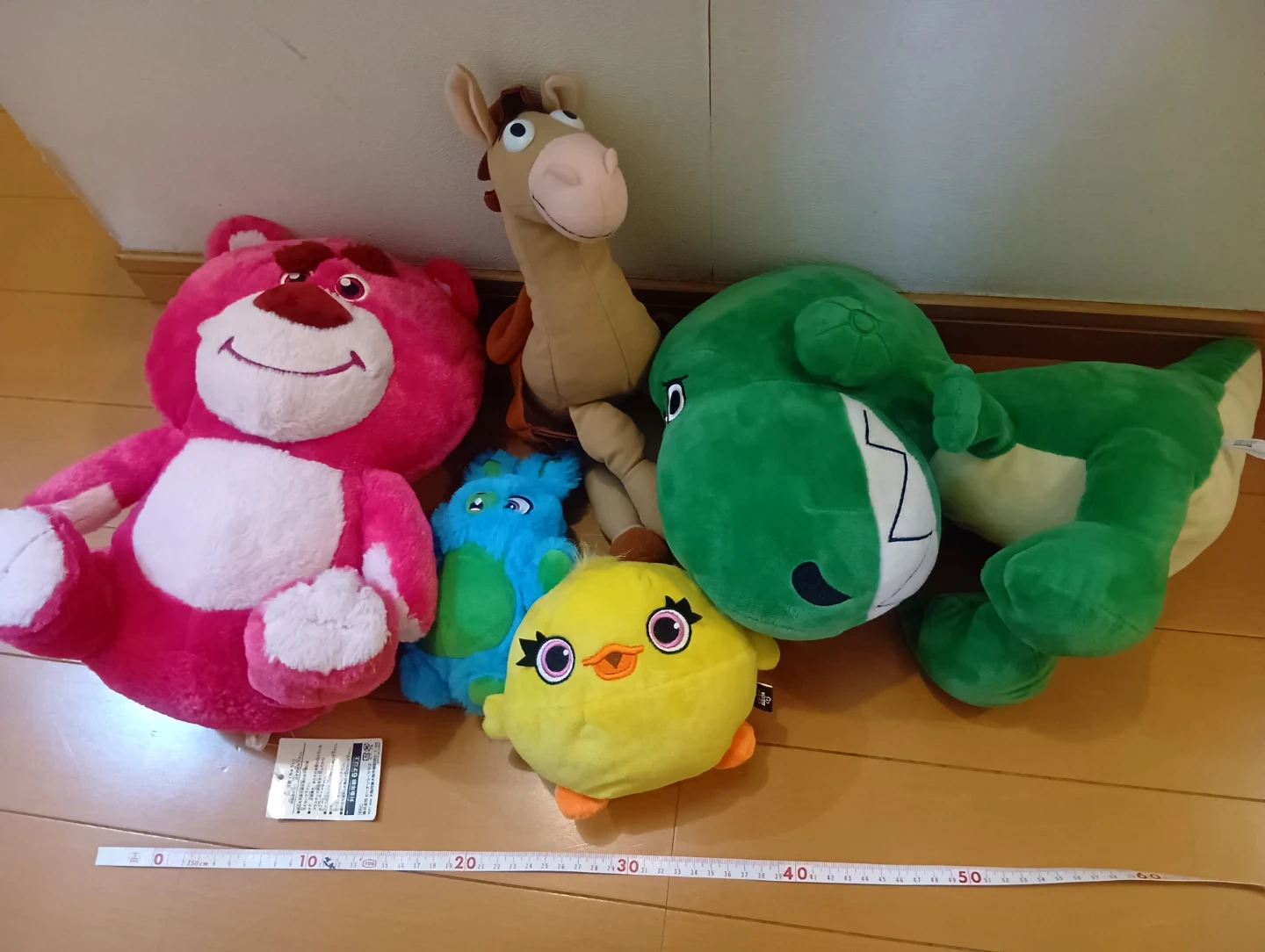 トイストーリーのぬいぐるみ5体セットです。 未使用品 ・ロッツォ、ブルズアイ、ダッキー、レックス 他 のぬいぐるみ ・黄色はポーチになっています。 お引渡し場所はご相談下さい。 ご不明点があればお気軽にご連絡ください。