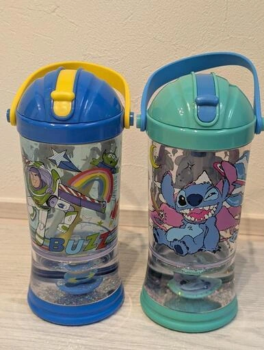 トイストーリーとスティッチの水筒です。 完全密閉ではなく、横にすると漏れるので注意です💦 写真で状態をご確認の上、ご理解いただける方のみお願いいたします。 中古品のため、細かな傷や汚れが気になる方はご遠慮ください。