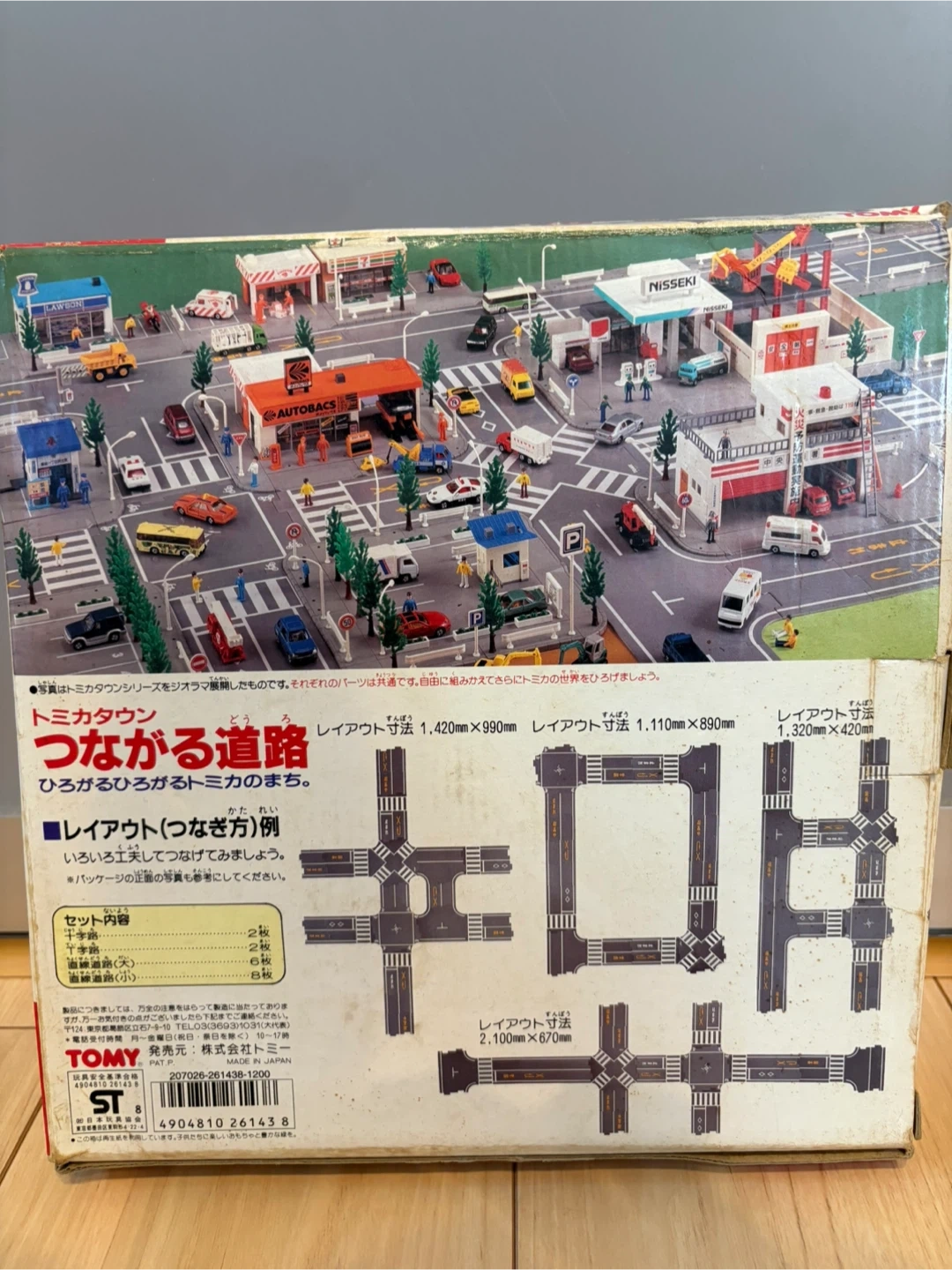 3歳以上用 ・ トミカタウン つながる道路 ひろがるひろがるトミカのまち。 外箱に傷みがあります。 【セット内容】 十字路=2枚 T字路=2枚 直線道路(大)=6枚 直線道路(小)=8枚 ※全て揃っております。 一部道路部分に汚れがあるものがあります。