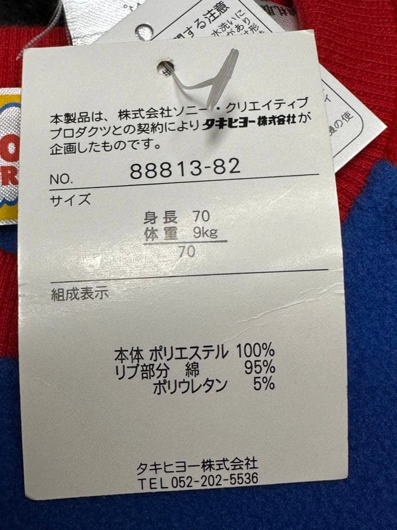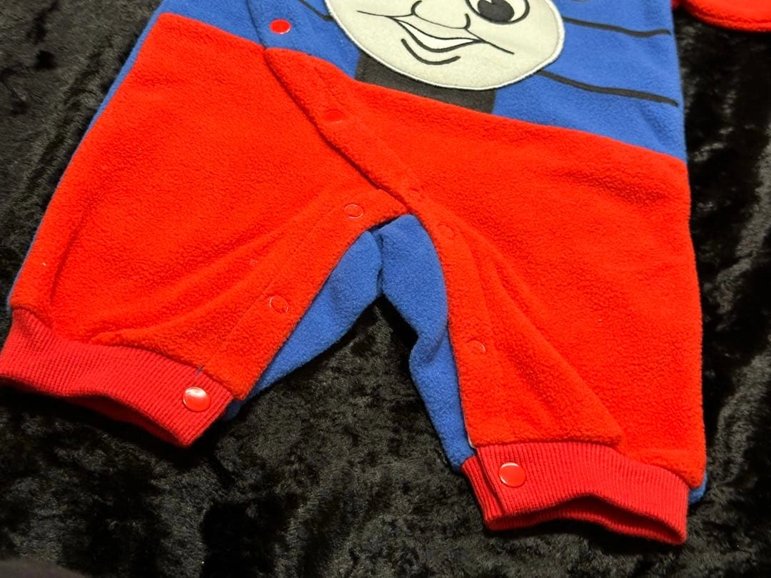 トーマスのデザインが施されたロンパースです。 フリース素材で柔らかく暖かい着心地が特徴です。 前開きのボタン付きデザインで、着脱が簡単です。 ペットや喫煙者はおりません。 外装梱包には、リサイクル品を使用する場合がございます。 他のサイトでも出品しておりますので、急に削除する場合があります。 ご質問等ございましたら、お気軽にお問い合わせください。 - キャラクター: トーマス - 色: 赤・青 - 素材: フリース - デザイン: ボタン付き前開き - バックデザイン: 無地の青 - 袖デザイン: ラグランスリーブ ご覧いただきありがとうございます。