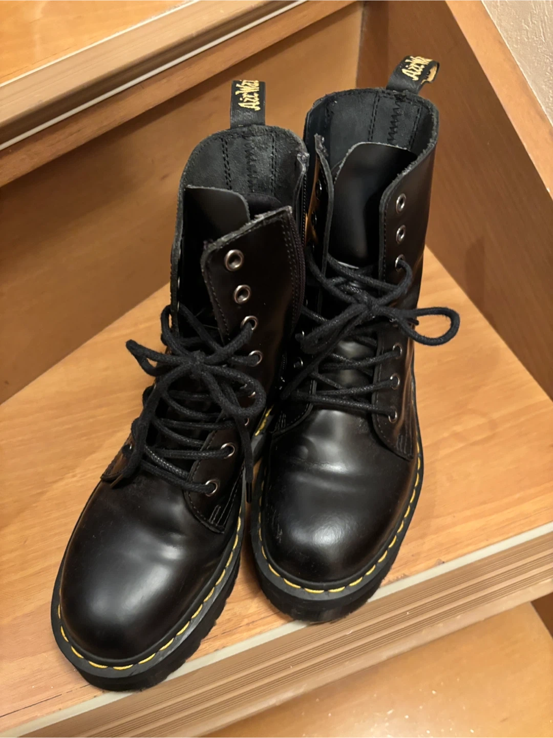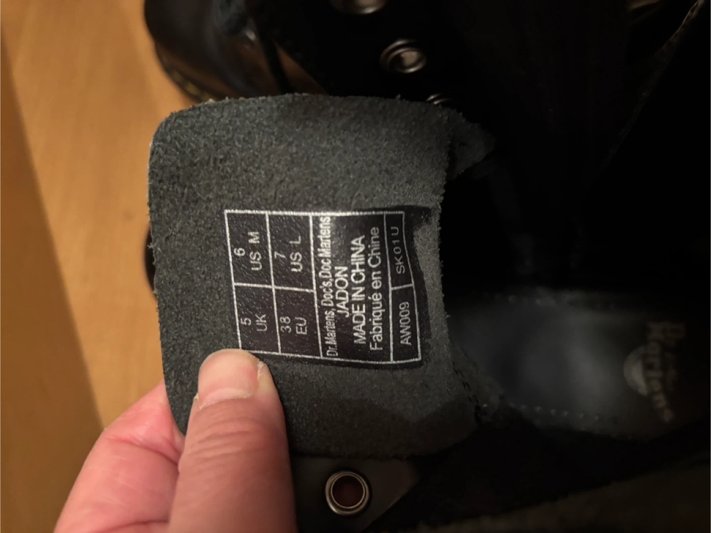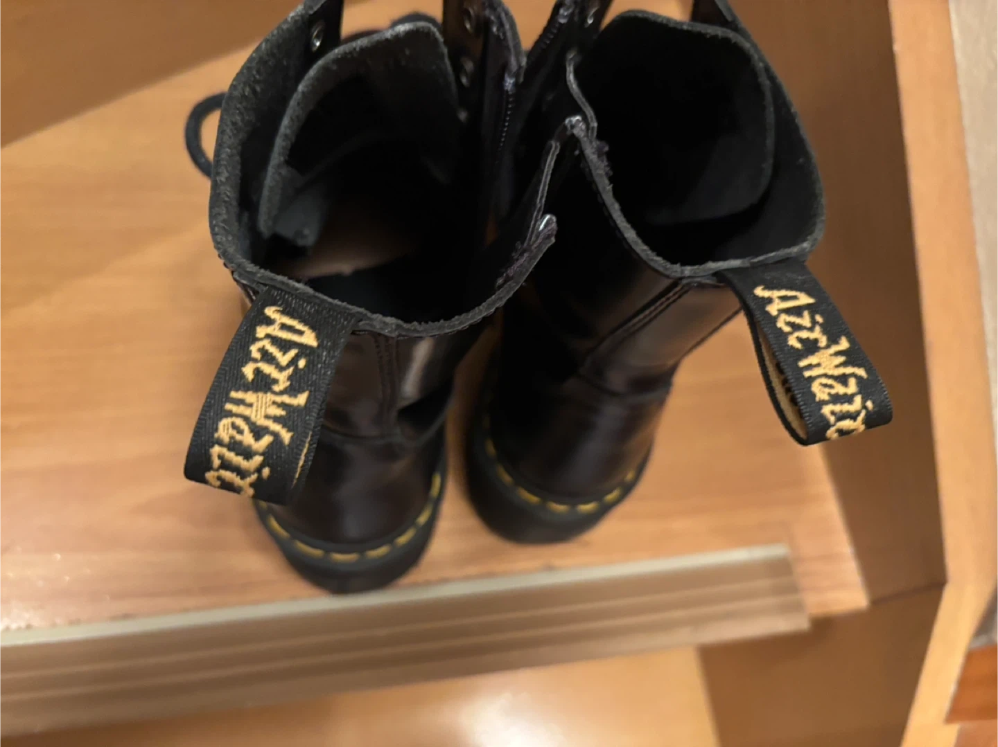 ドクターマーチンのブーツです。 年齢的に合わなくなりました笑 ほとんど履いてませんが自宅保管のため 中古品をご理解ください。 サイズは24.5くらいかと。 厚手靴下はいて24の私がちょうどよいくらいです。 マーチン好きな方へ。 バイマで購入しました。 マーチンの特性上、皮は硬いです。 ノークレームノーリターンでお願いします。 【情報】 ブランド:ドクターマーチン モデル:JADON サイズ:UK5(US L7、US M6、EU 38) 中古品をご理解ください。 ノークレームでお願いします。