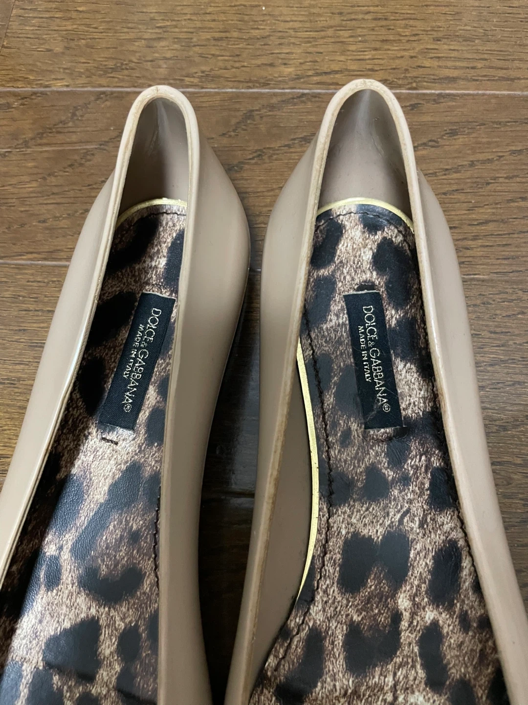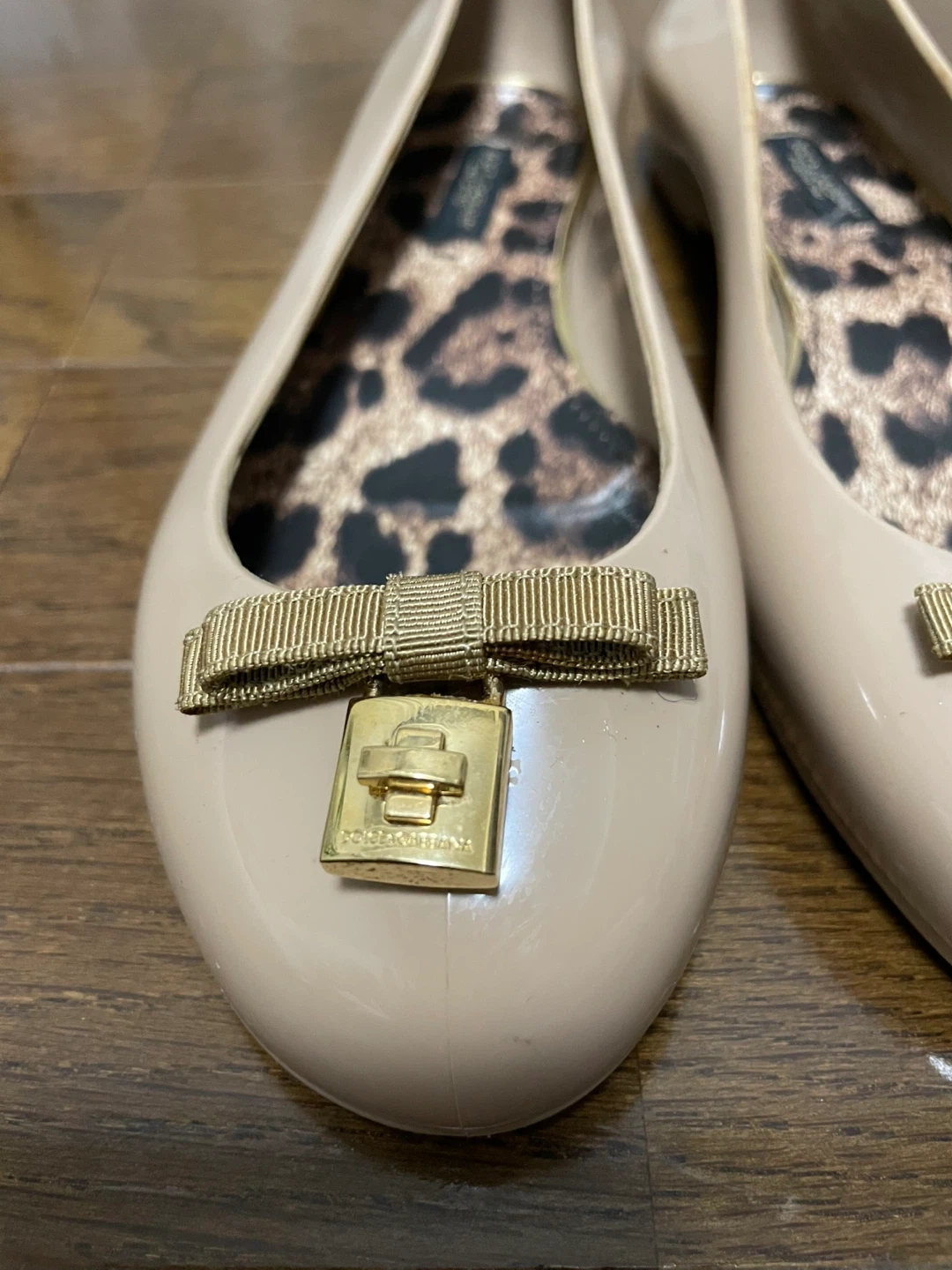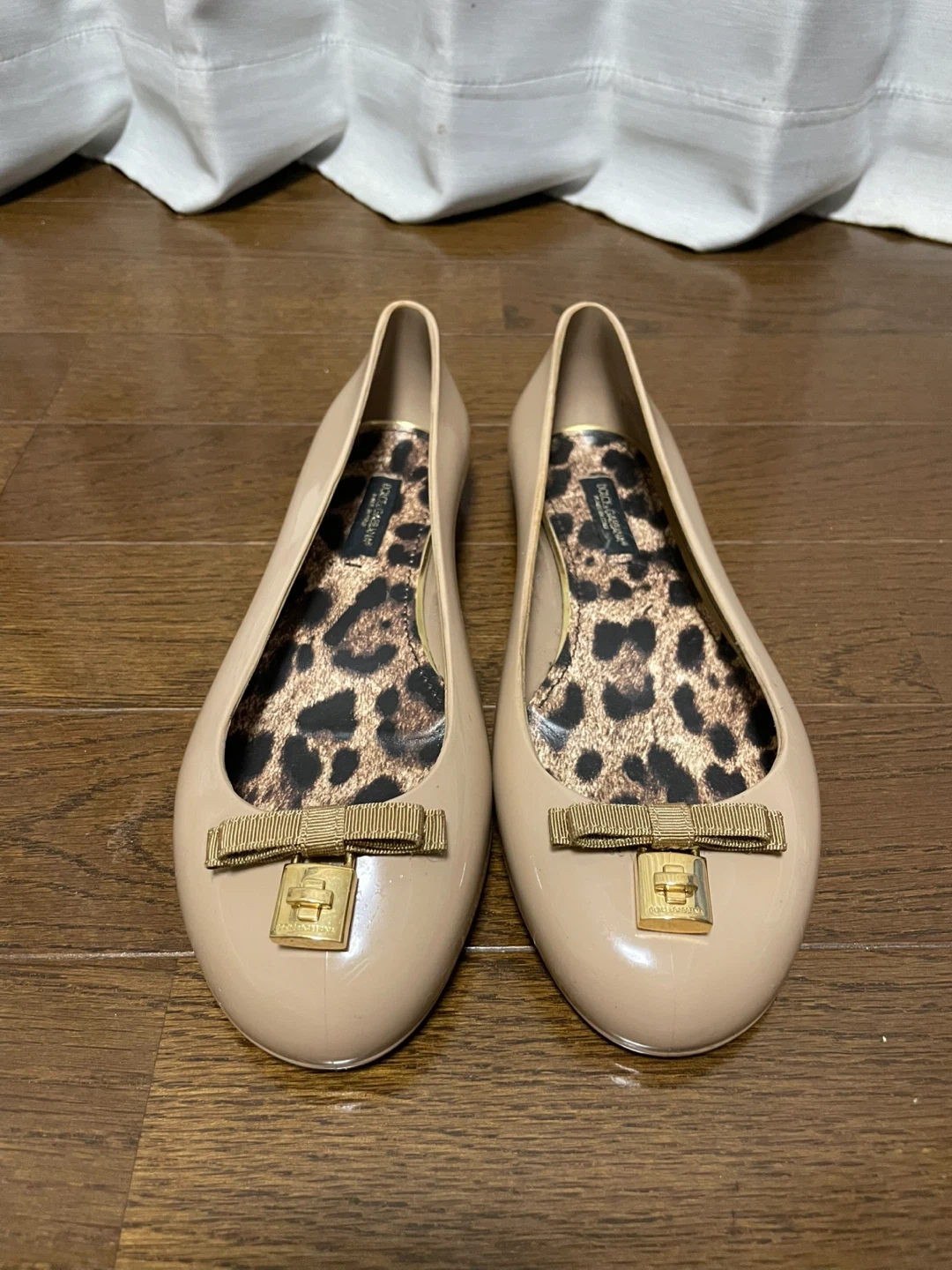 ドルチェ&ガッバーナのフラットシューズ(箱付き)です。 ・ブランド:ドルチェ&ガッバーナ ・カラー:ベージュ(ゴム素材) ・サイズ:36 ・内側:レオパード柄 ・状態:使用感少なめ 中古品であることをご了承ください。 ゴム製のため雨の日でも安心して履けます。