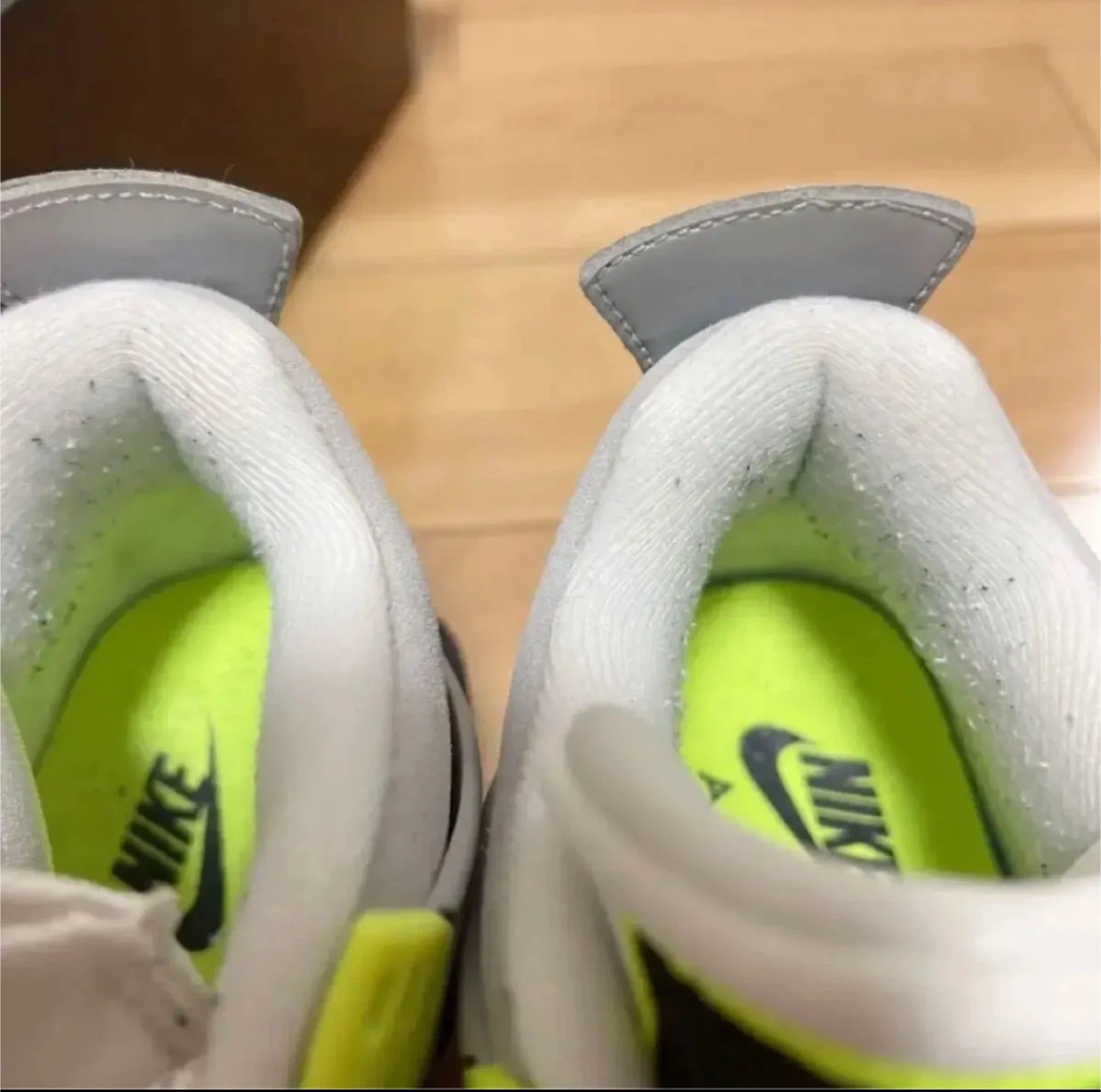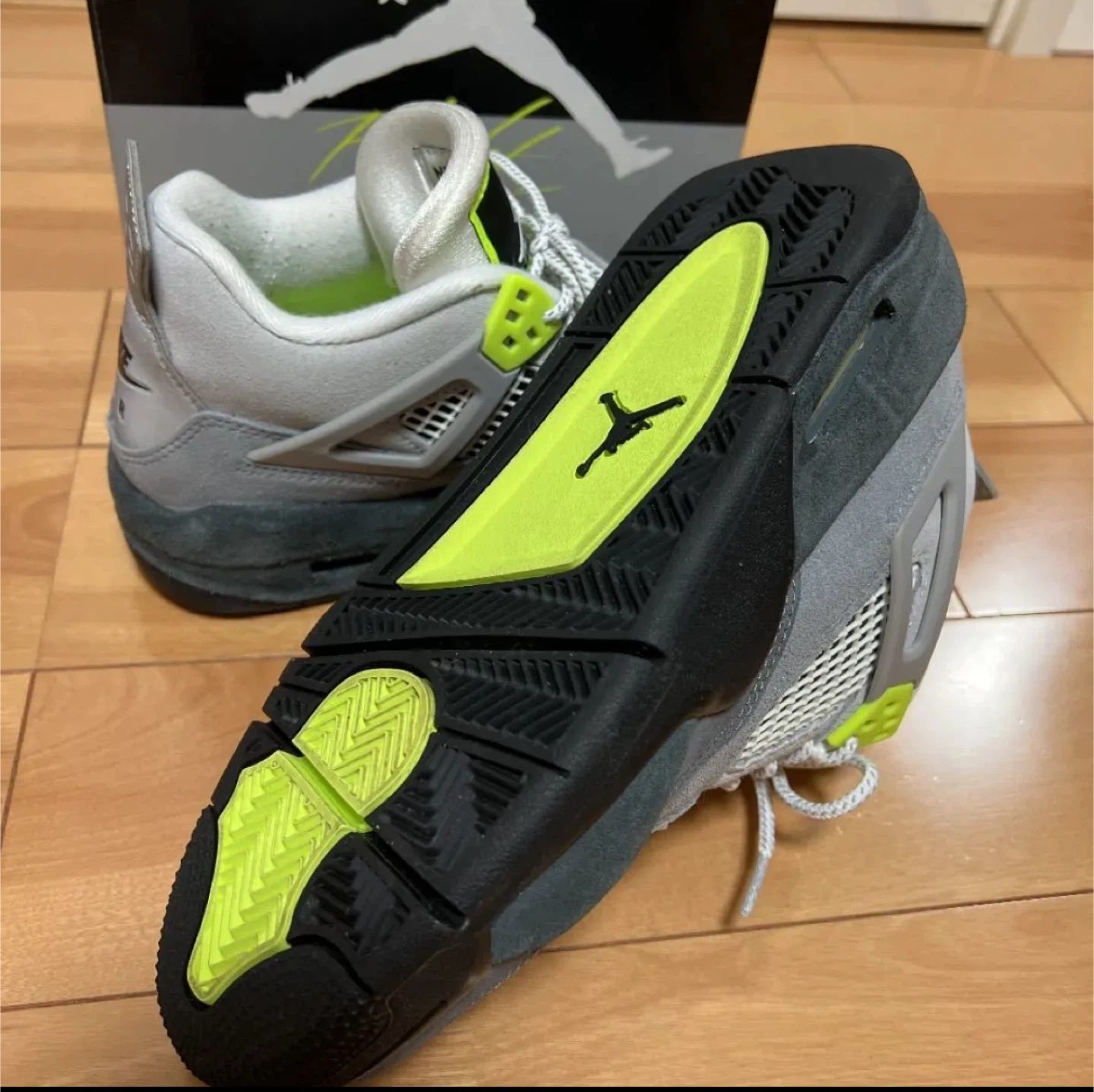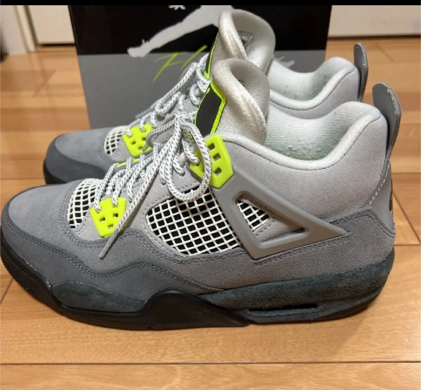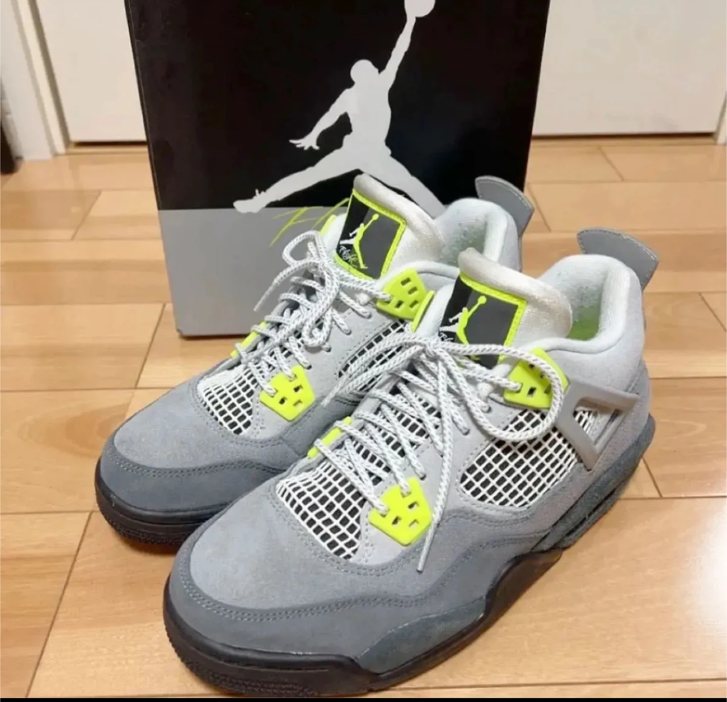 ネオンカラーのジョーダン4 ネオンカラー 24cm 箱有り 断捨離の為出品しました。 ソールなどもとても綺麗です。 踵の毛玉が少しあるので、写真でご参照下さい。 引っ越しのため、断捨離となります。 コレクションしてたので、乾燥剤とか入れてとても状態良く保管しておりました。 他のサイトでも出品してますので、無くなり次第削除致します。予めご了承くださいませ。 【情報】 ブランド:ナイキ モデル:AIR JORDAN 4 RETRO SE (GS) サイズ:6Y(24cm) 型番:CT5343 007 色:クールグレー/ボルト/ウルフグレー 【状態】 使用感あり 【付属品】 箱 中古品であることをご了承ください。