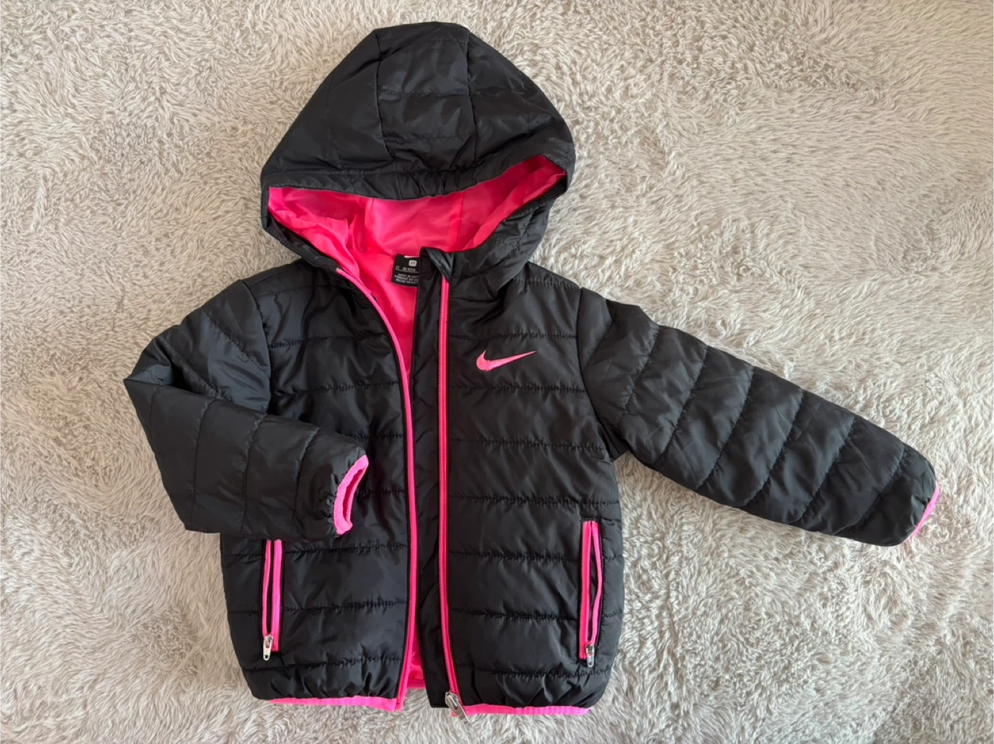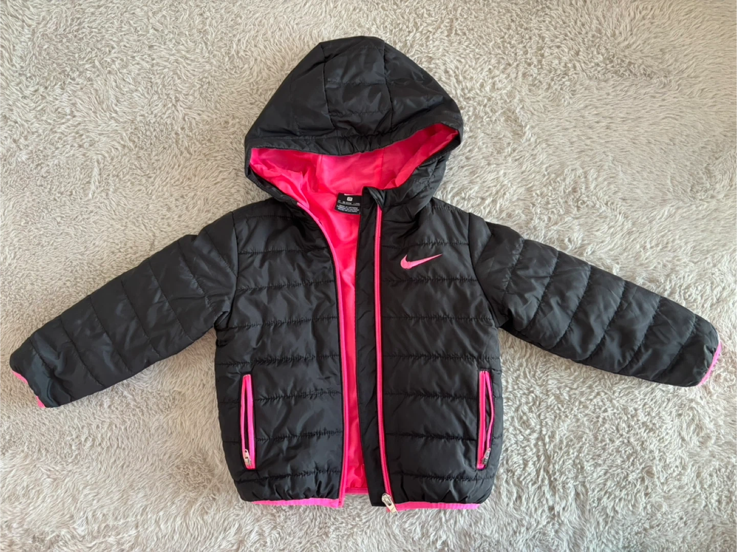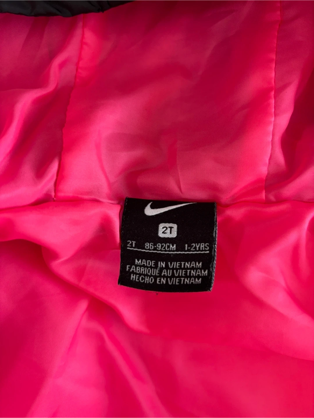 ナイキのアウターです。 これからの季節に╰(*´︶`*)╯♡ ・ブランド:ナイキ ・サイズ:2T(86-92cm、1-2歳) ・色:黒、ピンク ・状態:使用感少なめ 裾に毛玉。(写真あります) 中古品であることをご了承ください╰(*´︶`*)╯