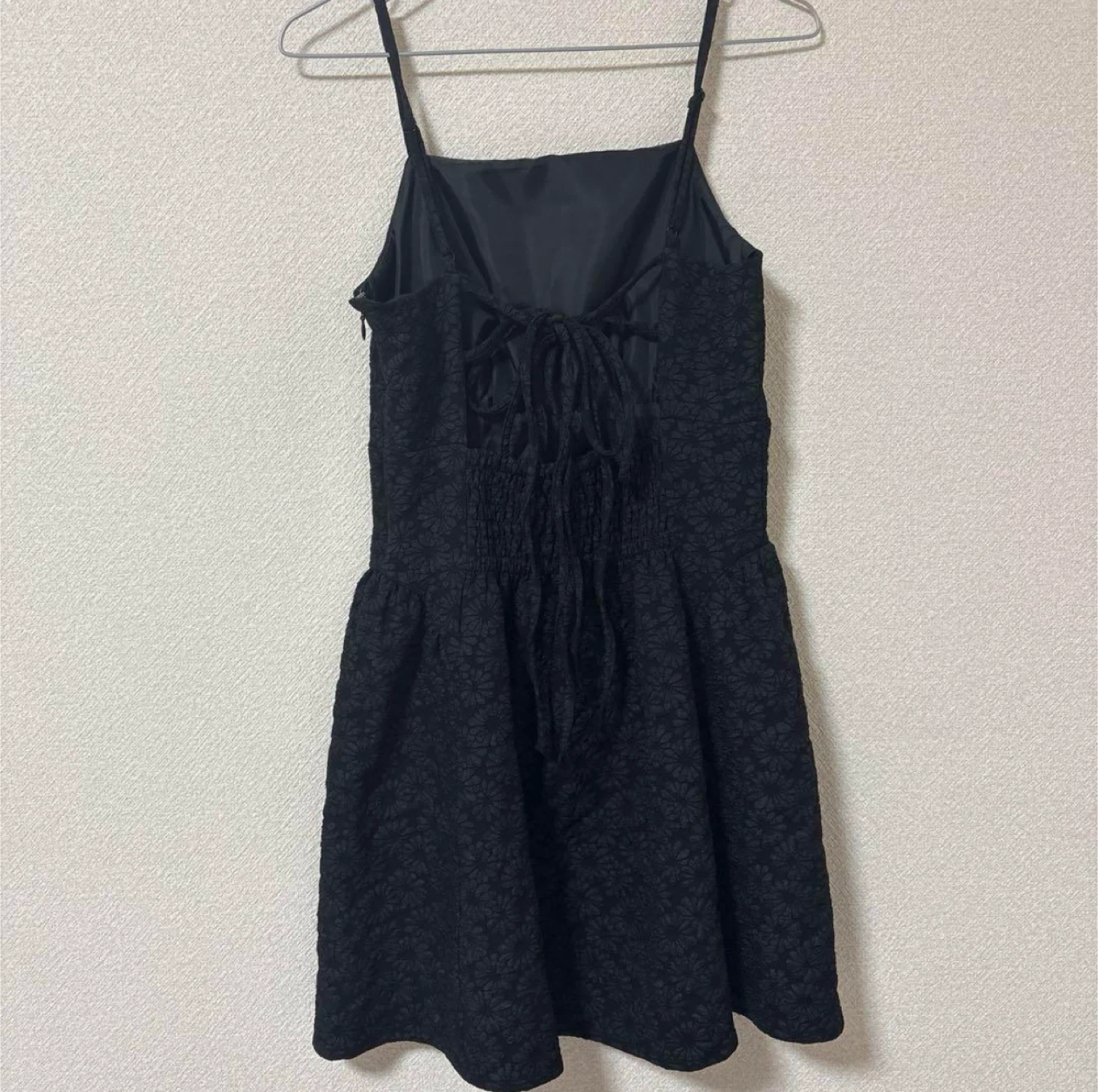 ワンアフターアナザーナイスクラップ キャミワンピース one after another NICE CLAUP 花柄ブラックミニワンピース 後ろはリボン付きでゴム仕様になっているのでサイズ調節可能、肩紐も調整可能です。 肩紐部分をのぞいた総丈約69㎝ スカートはフレアになっているのでふわっと広がります。 着用回数2.3回程度 他サイトにも出品しておりますので、急に削除する場合があります。 受け渡し場所、価格の交渉承ります。