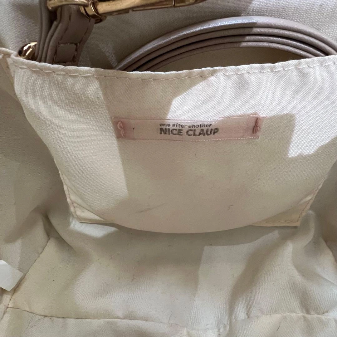 one after another NICE CLAUPのノベルティ ショルダーバッグになります。 カラー:ホワイト 詳細は画像の通りです。 (内側汚れあり) 一度使用し、それ以降は暗所にて大切に保管していました。 500mlペットボトルが横に入る大きさです。 サイズ:横約21cm 縦約16cm マチ約10cm お値下げ交渉○ #ナイスクラップ #ワンアフターアナザーナイスクラップ #oneafteranotherNICECLAUP #NICECLAUP バッグ ショルダーバック バック
