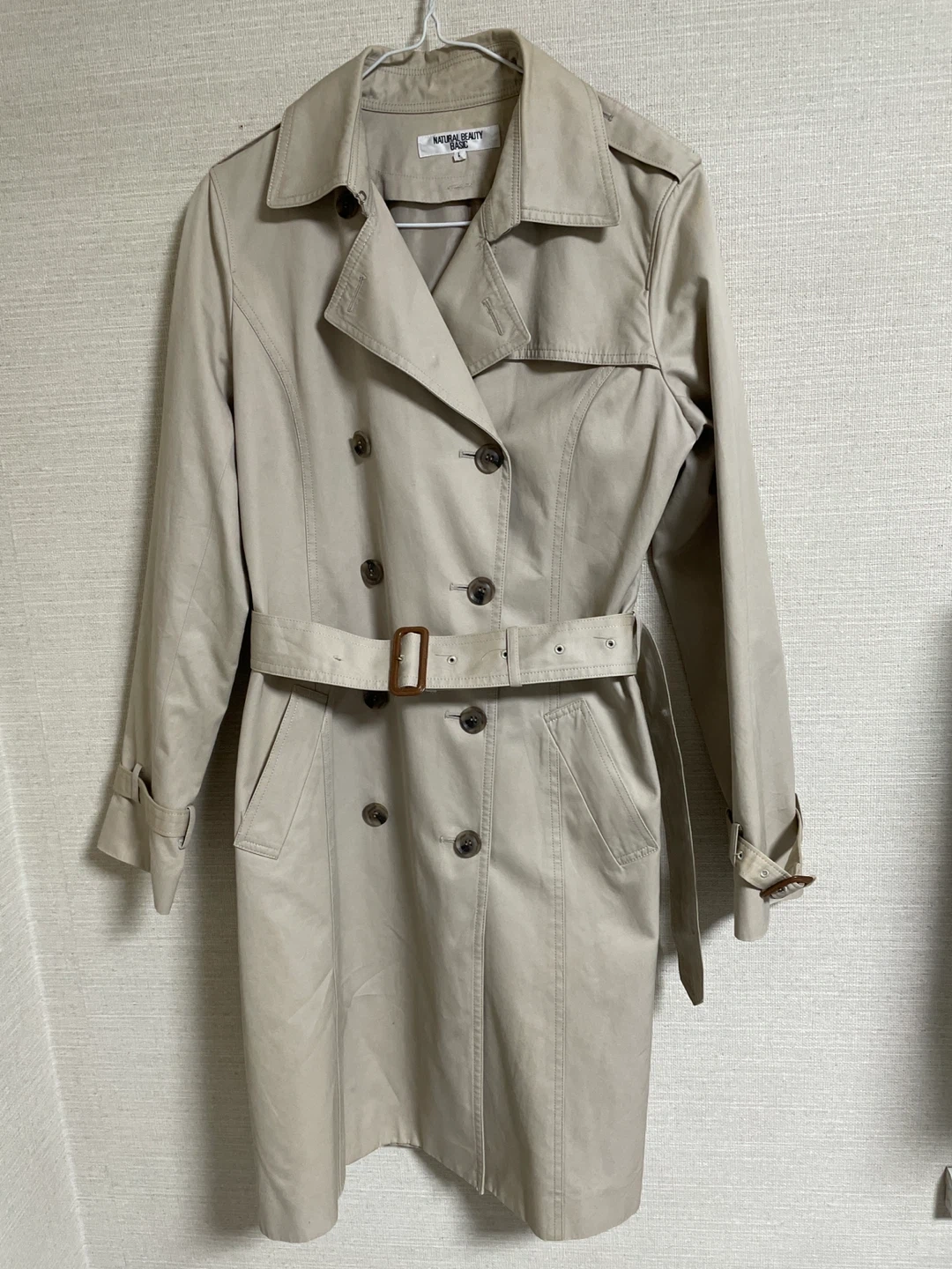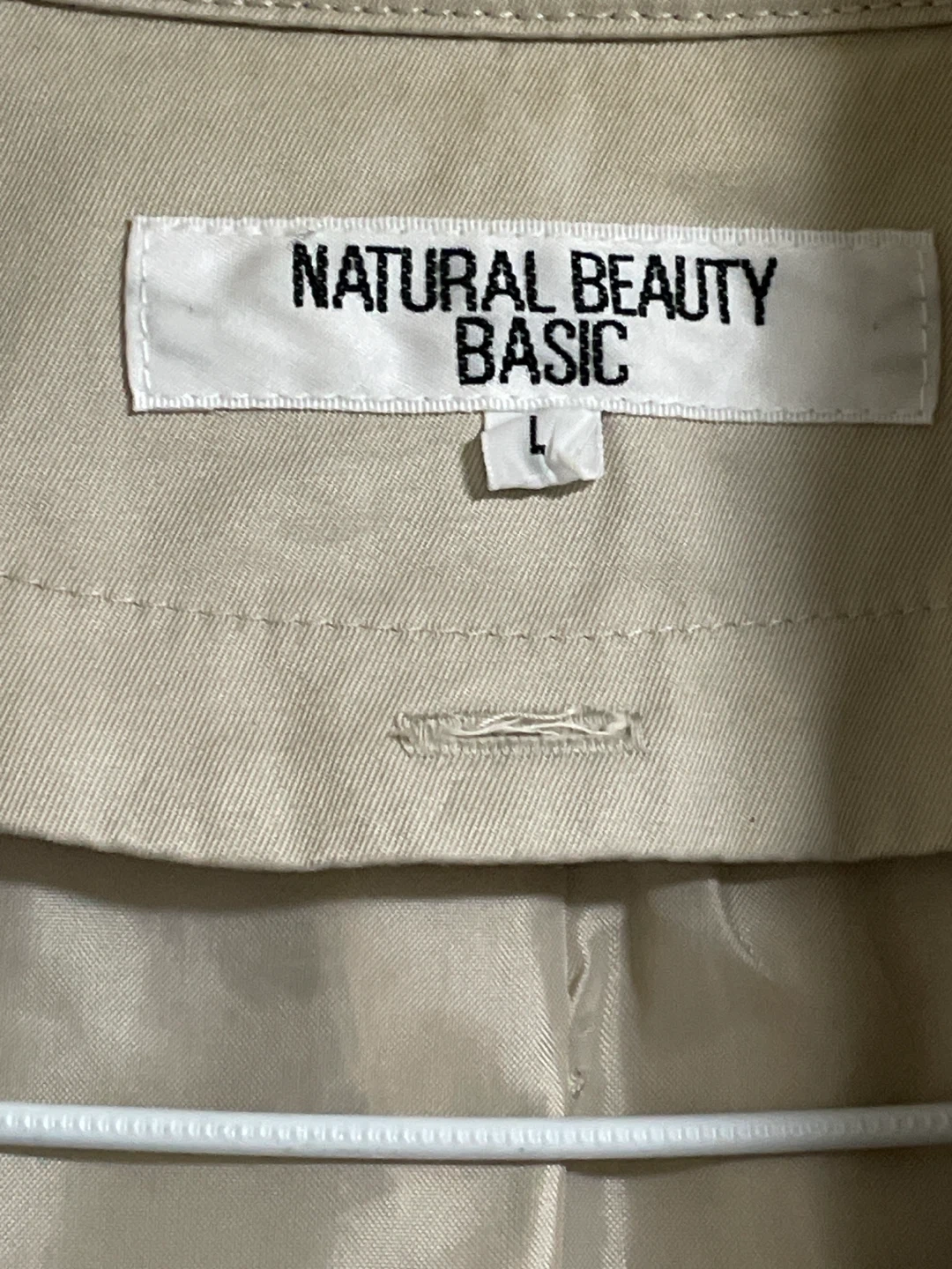 ナチュラルビューティーベーシックのトレンチコートです。2年程着るきかいがなく、クローゼットにしまっていました。きて下さる方がいればと思い出品しました。 ・ブランド:ナチュラルビューティーベーシック ・サイズ:L ・色:ベージュ ・使用感あり 中古品であることご了承ください