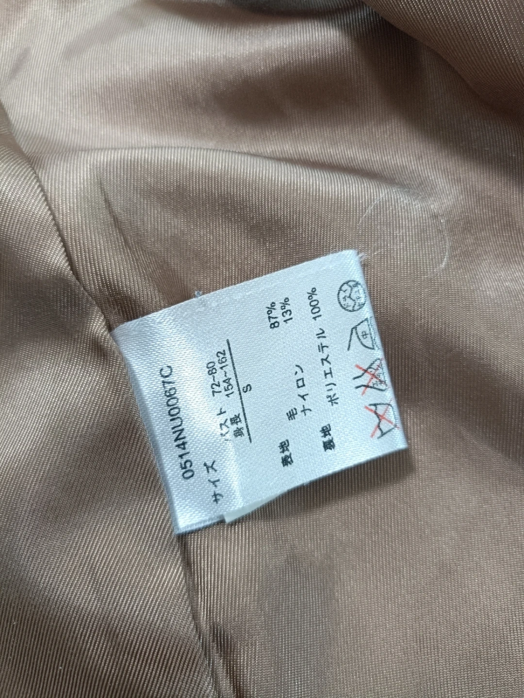 ご覧いただきありがとうございます☆ ナノ・ユニバースのレディースコートです。 着用しない為お譲り致します。 通勤通学にいかがでしょうか? 【サイズ】 S (身長154〜162cm、バスト72〜80)着丈85cm(丈は162cmの方で膝上位です) 【カラー】 キャメル ⚠️色見は写真1,2です。ワンシーズン着用しクリーニングに出してクローゼットにしまっておりました。内側の背中部分の裏地が少し破けてしまったので手直ししてあります。(よく見ないと分かりづらいとは思いますが写真5枚目で確認願います!)その他汚れ等はございませんが、中古でも構わない方でお願い致します🙇 お安く出品しておりますのでお値下げ交渉不可になります。 ドタキャンされない方でお願いします。 ご不明点等ございましたお気軽にお問い合わせ下さい。他のサイトでも出品中です。 ★平日午前中か日曜だと比較的都合つきます!自宅近くのコンビニであれば夜間も可能です! 溝ノ口駅、津田山駅、梶ヶ谷駅周辺でもOKです。