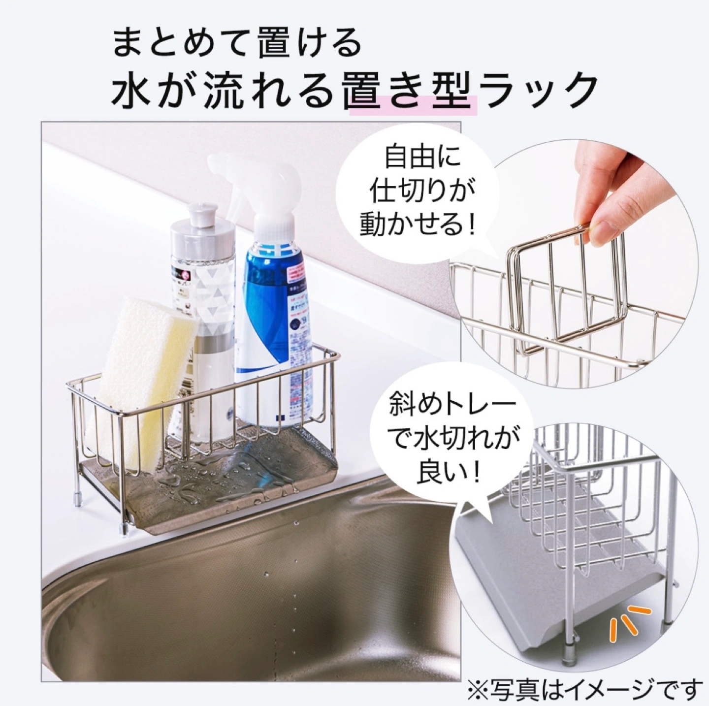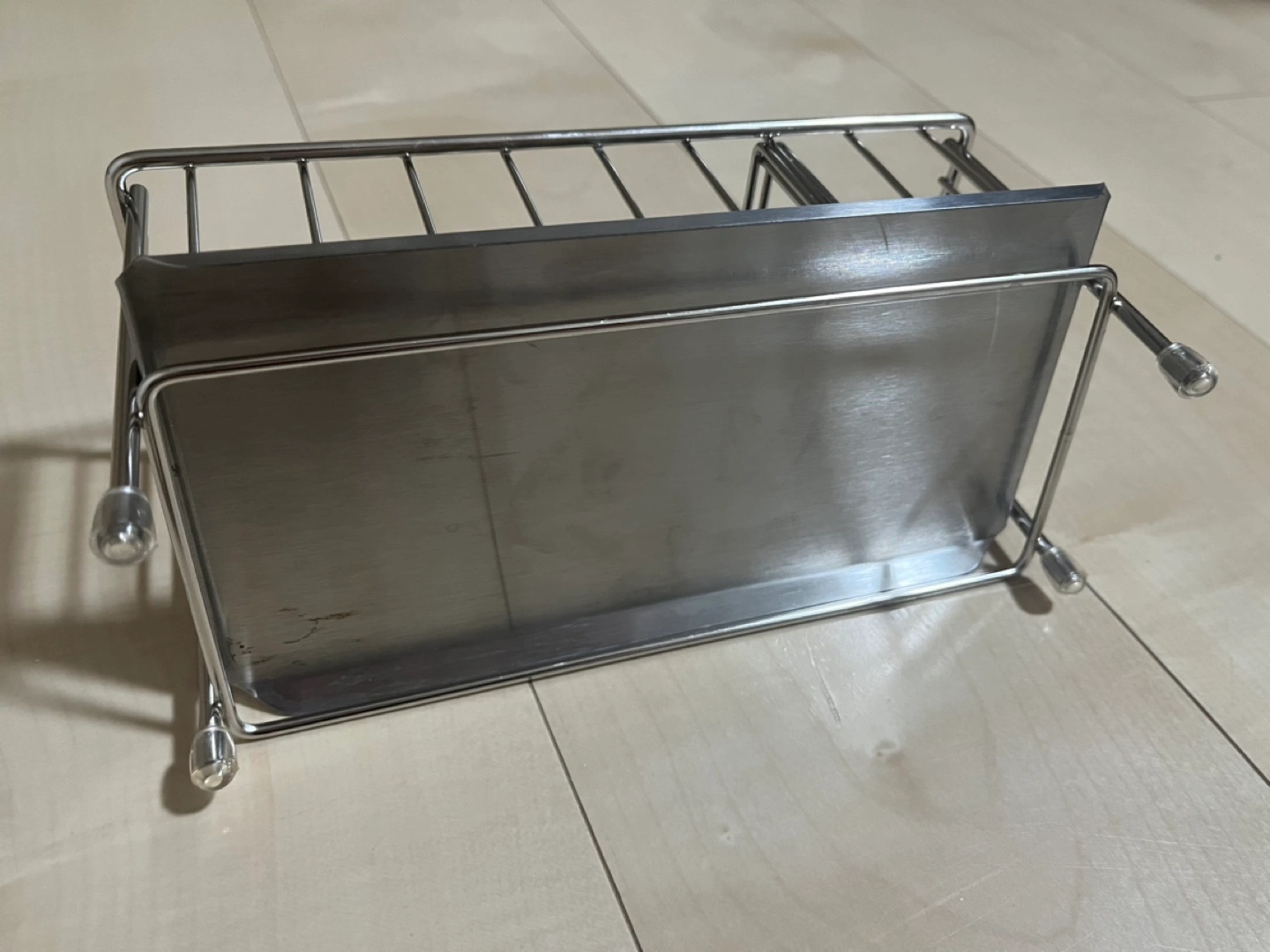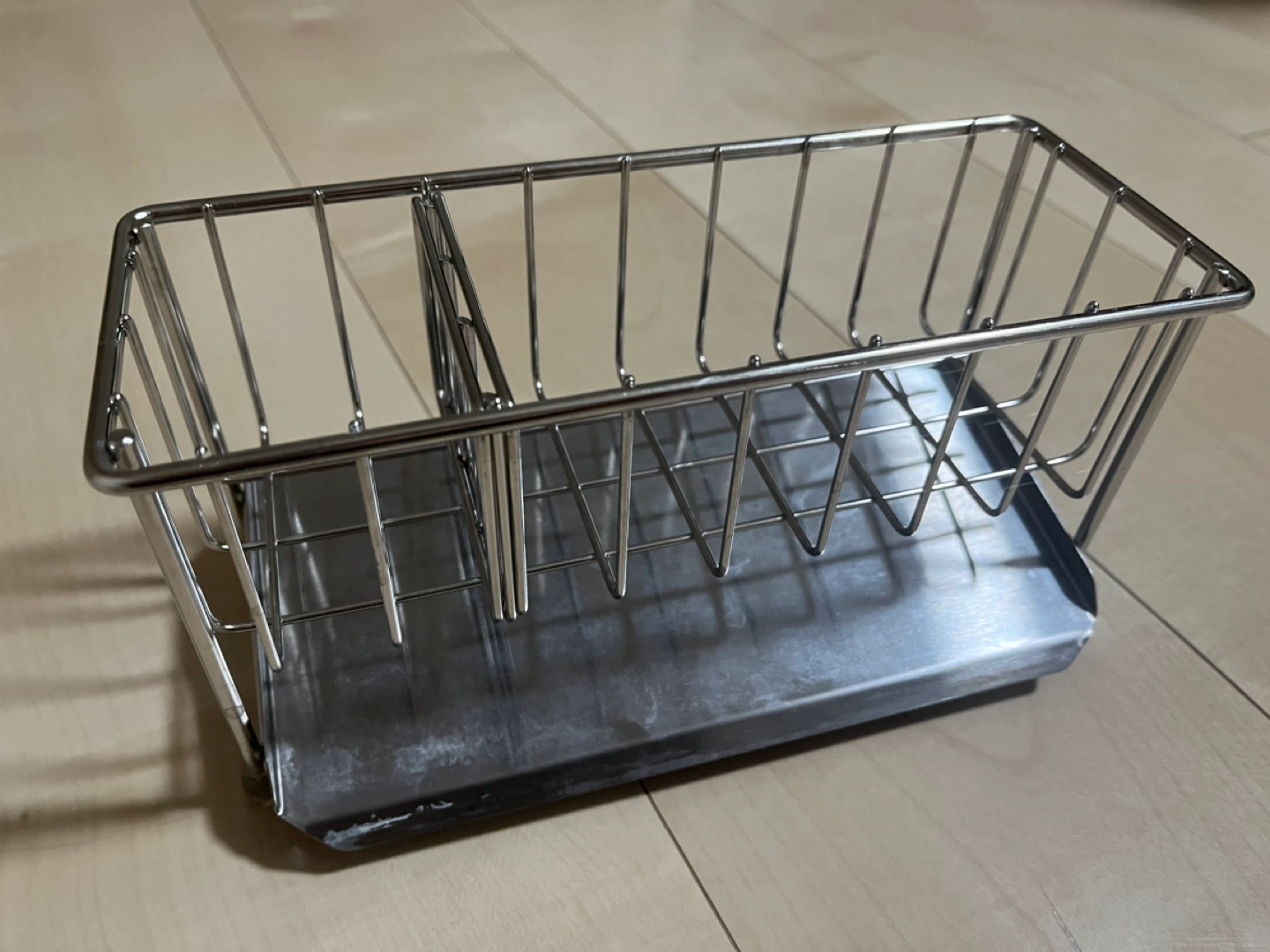 2024年3月にニトリ店舗にて購入し、8ヶ月ほど使用しましたが、引越に伴い使う場所がなくなってしまったので出品いたします。 斜めトレーの方にサビや汚れがございますが、問題なくお使いいただけるかと思います。気になる方はご遠慮ください。 お写真そのままのお渡しとなります。 中古品であることをご了承の上、ご購入くださいませ。 ご不明点などございましたらお気軽にお尋ねください。 購入金額:1,190円 商品コード:8988287 カラー:シルバー サイズ:幅20.5x奥行10x高さ10.1cm 素材:ステンレス鋼・シリコーンゴム 重量:約310g 耐荷重:約3kg 耐熱温度:60℃ ●自由に動かせる仕切り付き ●斜めトレーで水切れが良い ●脚に滑り止め付き