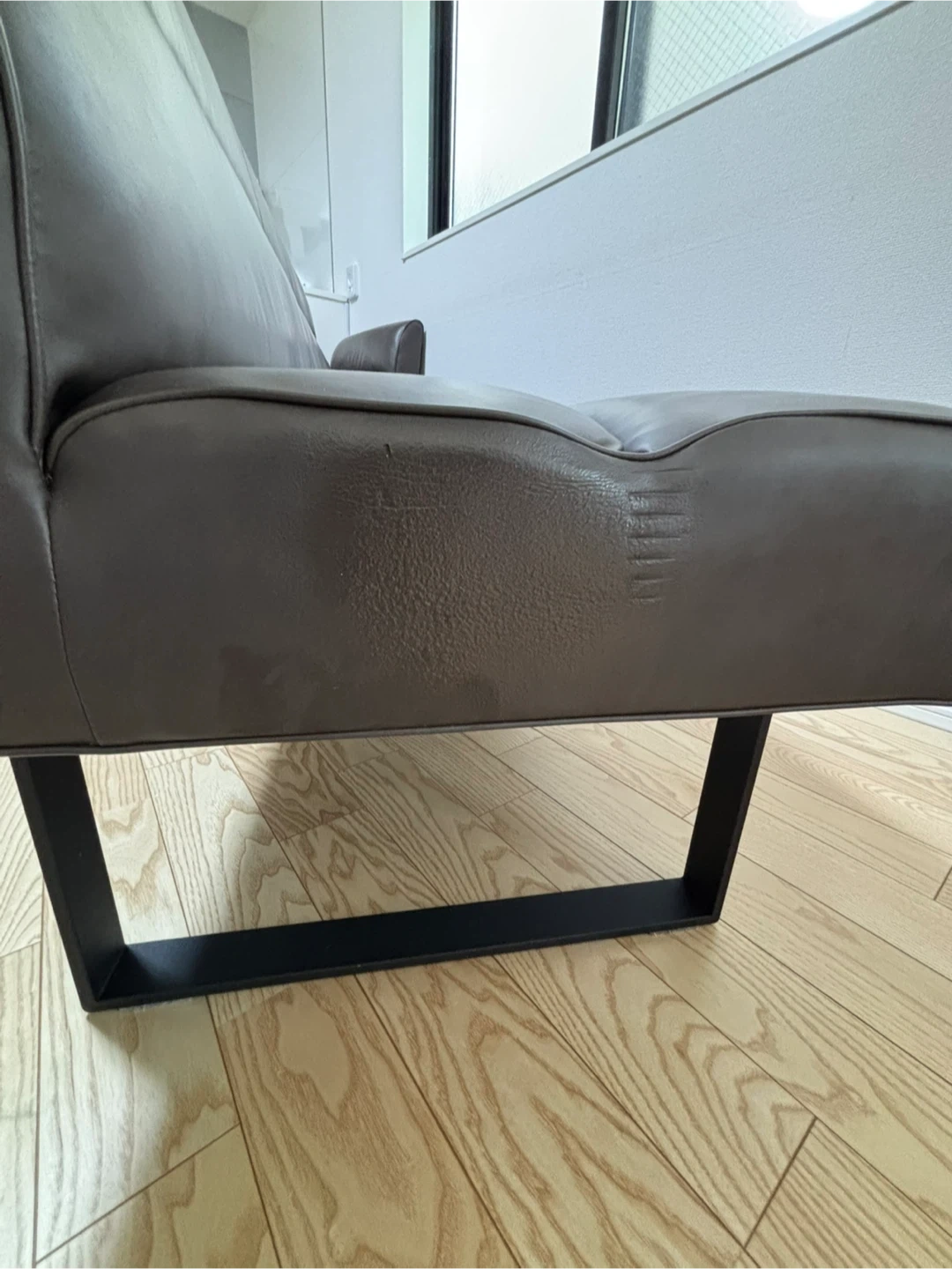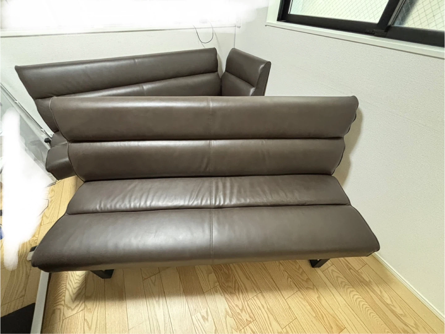 ニトリで1年前に購入(3点で90,000円) 2つのうち1つのソファの側面にヒーターの熱によって生地にシワ、ヒーターの跡がついてしまっています。 L字にして使用する場合は隠して使用することができます。 片肘は取り外し可能です。