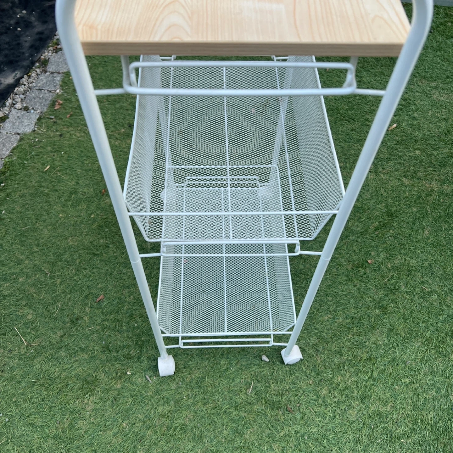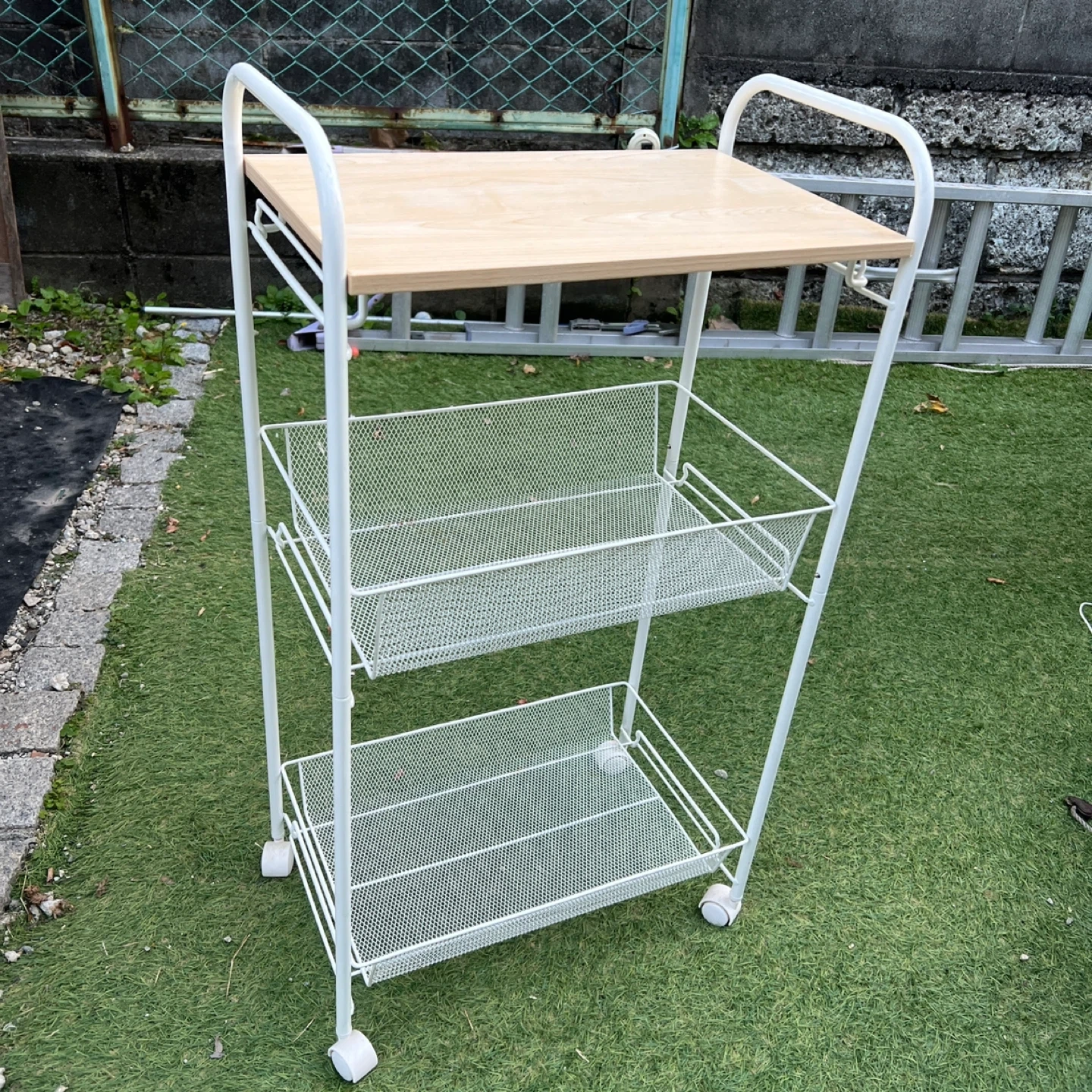 磯子区・南区・港南区・中区くらいであればプラス1,000円で配達可能です! 予定が合えば多少離れたエリアでも配達可能です。 ※その他地域はコメントにてご相談くださいませ! 【天板タイプ】キャスター付きキッチンワゴン 3段 幅26cm(DC-2 木目 W260 ホワイト) サイズ 幅26×奥行44×高さ81cm 使用に伴う、傷や汚れはあるかと思いますが、まだまだ使用可能です。 写真にてご確認くださいませ。 中古品をご理解の上ご検討下さいませ!