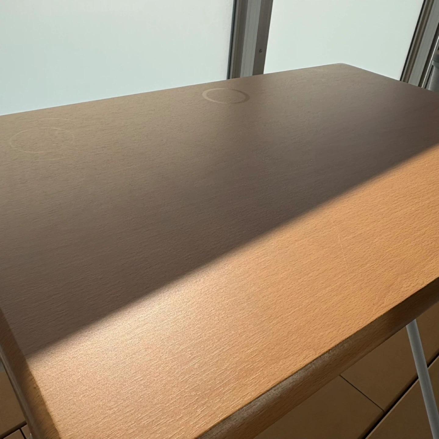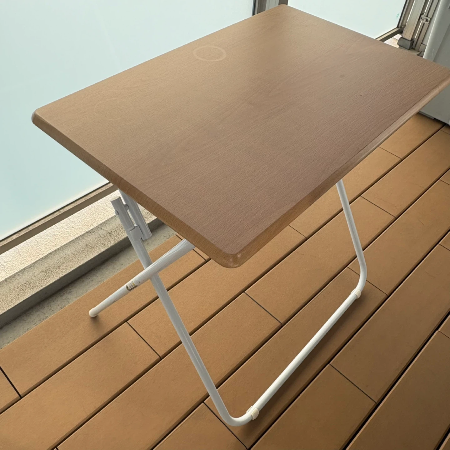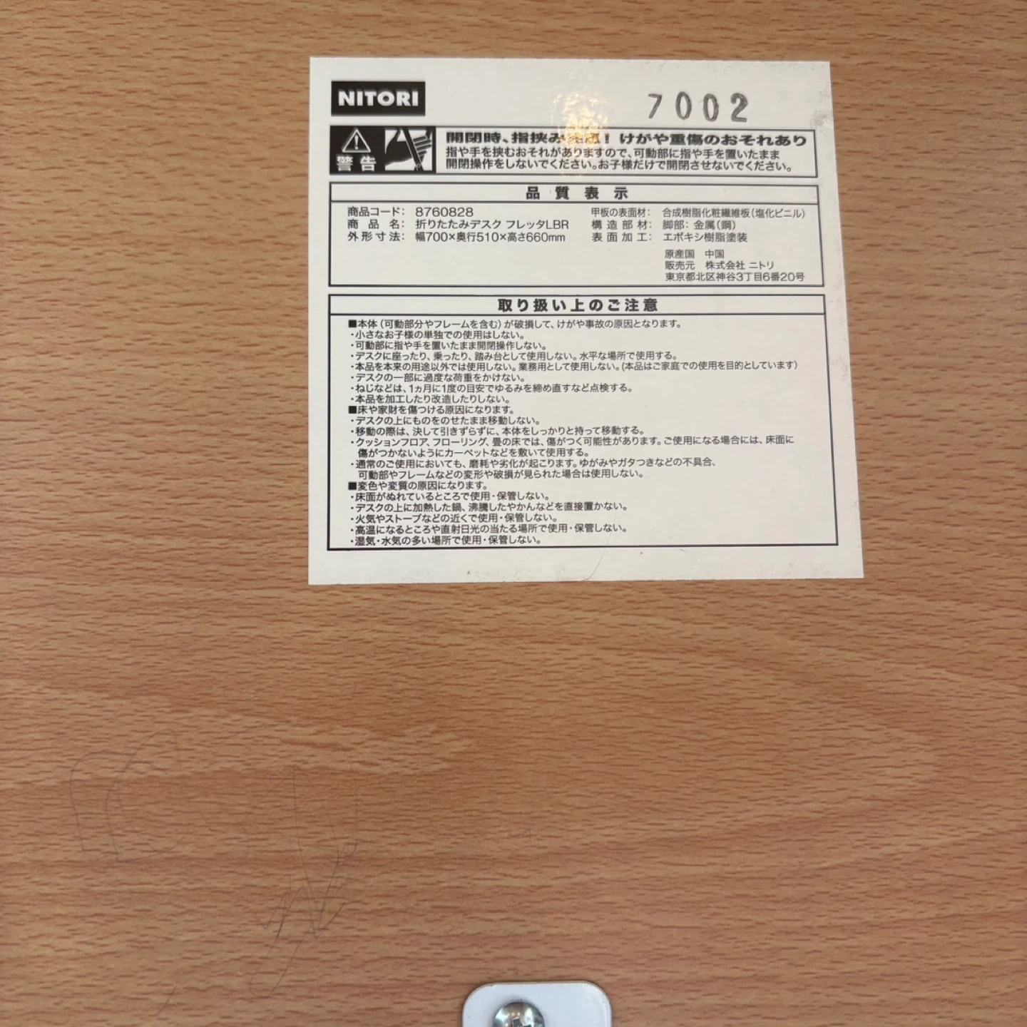 中古折り畳みテーブルです ⚫︎幅70㎝×高さ70㎝×奥行45.5㎝ ⚫︎色 天板:ライトブラウン パイプ部分:ホワイト ⚫︎ニトリ商品 ⚫︎小さい剥がれ、えんぴつ汚れ、コップ跡あり (画像で確認下さい) 折り畳めるので隙間に収納しやすいです! 簡易作業テーブルや勉強机、PCテーブルなどに如何でしょうか? 詳細はニトリHPでご確認下さいませ。 (折りたたみテーブル(7070 ライトブラウン FT2)) ⚫︎駒岡AEON近辺でのお渡し希望です。 どうぞ宜しくお願い致します☺︎