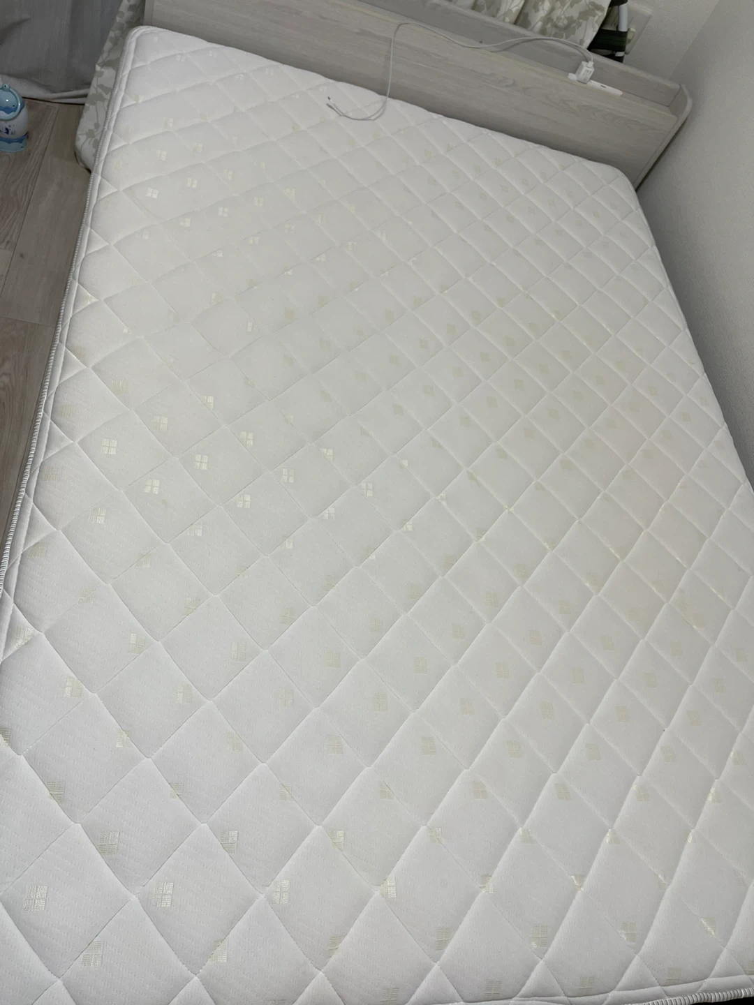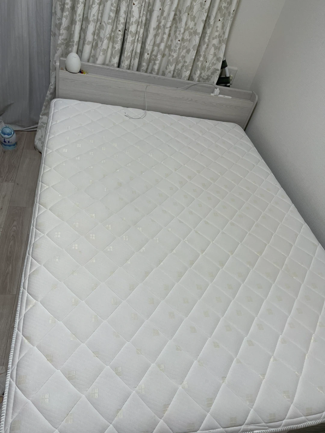 ニトリのDマットレスです。 【情報】 ブランド:ニトリ 品名:Dマットレス R03ECX サイズ:D 寸法:厚さ200mm、幅1400mm、長さ1960mm 材料:コイルスプリング、ウレタンフォーム、フェルト(ポリエステル)、不織布 外装生地組成:ポリエステル100% 綺麗方ですが、中古品であることをご了承ください。 きれいです。安くした理由は早く売りたいからです。 もし、下のプーレムまで必要な方にはそれも一緒に渡します。重たいので、ご参考にして下さい。 直接、家まで取りに来てください。 よろしくお願いします。