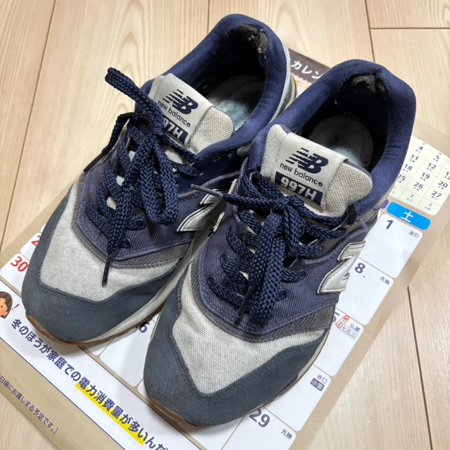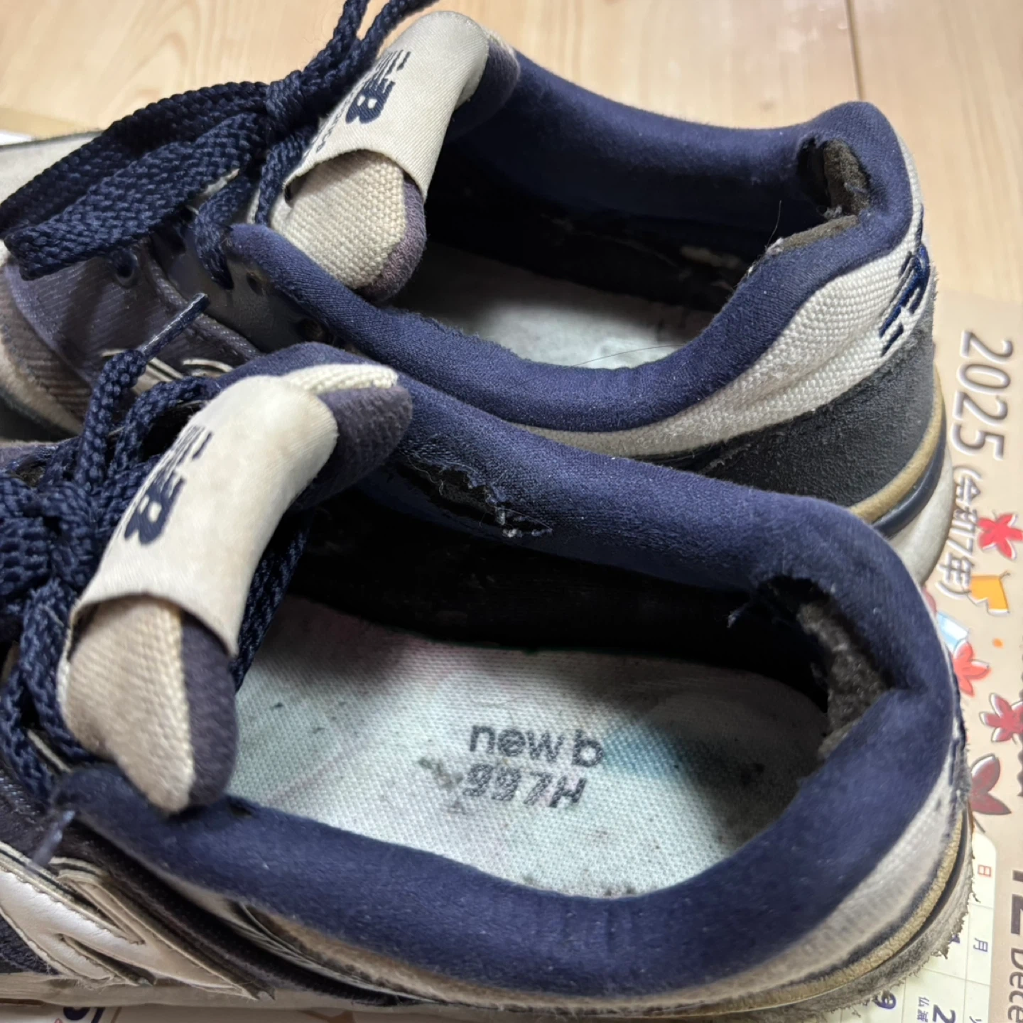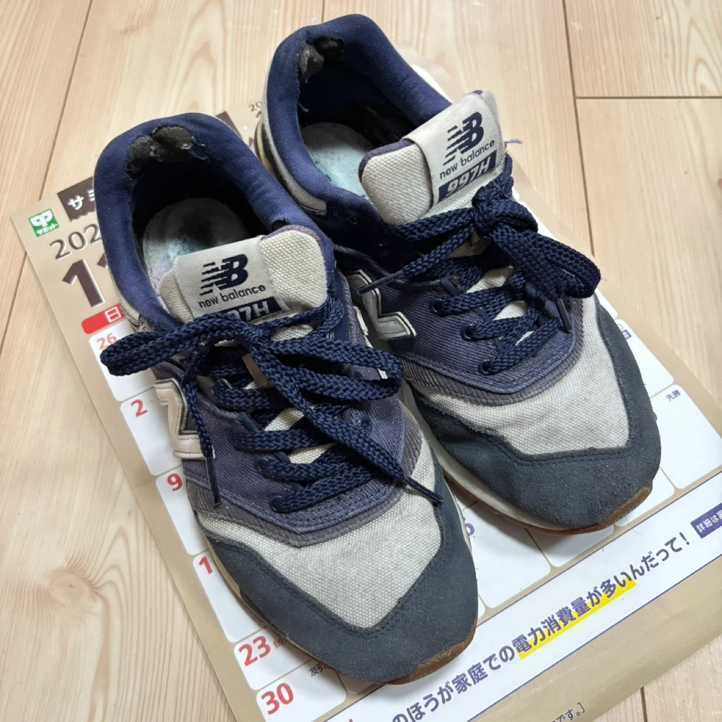New Balance スニーカー(中古) 引っ越しの整理のため出品します。 ブランド:ニューバランス モデル:997H サイズ:24 使用感はかなりありますが、まだ履ける状態です。 かかとの内側に擦れ・破れがありますので、写真でご確認ください。 アウトソールもそれなりに減っています。 インソールの色移りは、扁平足用の中敷きを入れていたために染色してしまったものです。 使用には問題ありません。 気にならない方、引き取りに来ていただける方を希望します。 よろしくお願いします。
