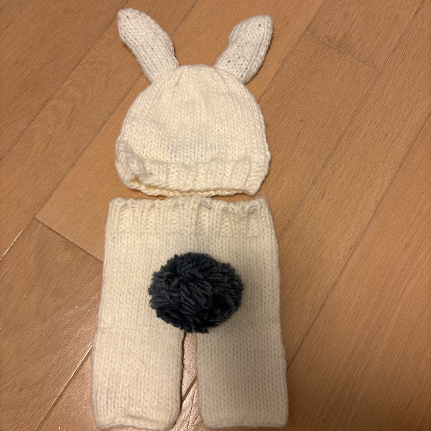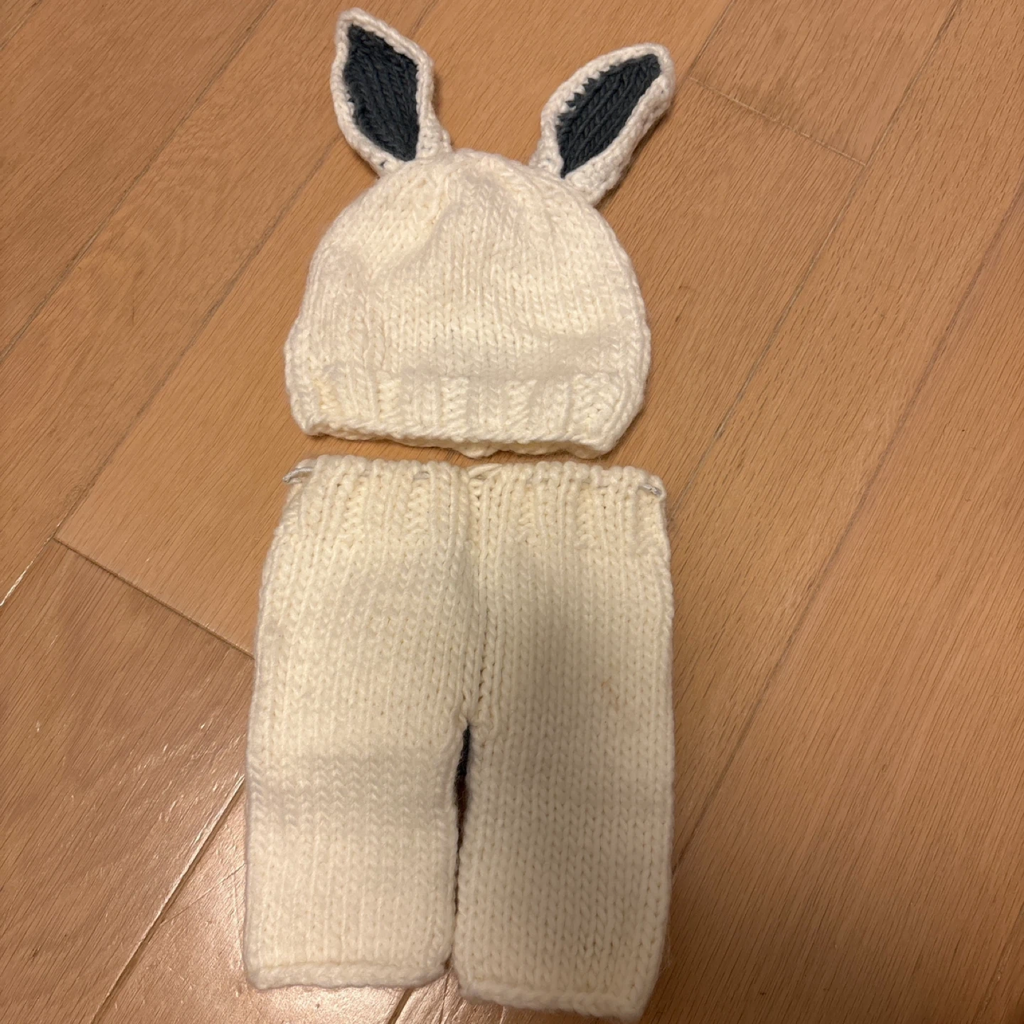 ニューボーンフォト用 うさぎ服 ブルーベリーヒル ニット 新生児 2点セット