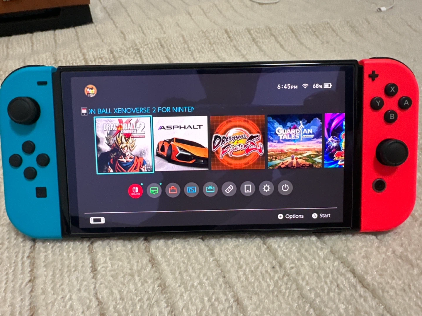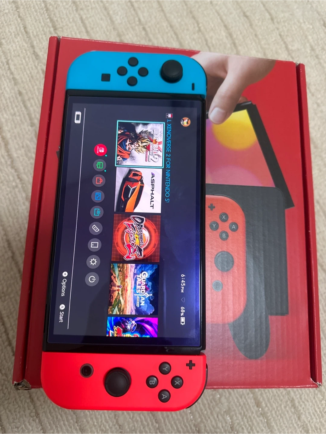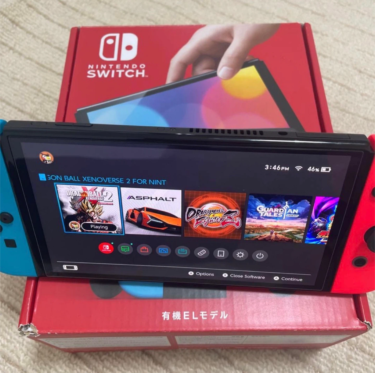 ニンテンドースイッチの本体です。 ・使用感あり ・画面に傷なし 鮮やかな青と赤のJoy-Conを備えたNintendo Switch有機ELモデル、ゲームプレイを楽しむのに最適。 付属品はすべて付属。256GBのメモリーカード。新品未使用のポータブルボックス。ドラゴンボールエディションのゲームが付属するFIFA 20ゲームカード。 - モデル: Nintendo Switch 有機ELモデル - 色: 青/赤 - ブランド: Nintendo - 付属品: 本体、箱 息子がスマホで遊ぶのをやめさせるために買ったのですが、数回しか遊ばず、1年近く使っていないので、お買い得価格で購入したい方のために出品します。 ご覧いただきありがとうございます。 中古品であることをご了承ください。