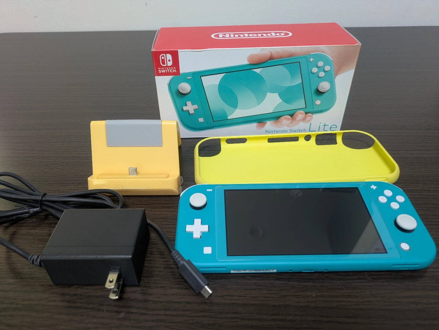 ニンテンドースイッチライト本体です。 【情報】 ブランド:ニンテンドー 商品:スイッチ ライト 色:ターコイズ 型番:HDH-001 【状態】 使用感少なめ、目立つキズなし 【付属品】 箱、充電器、スタンド、シリコンカバー、SDカード写真5枚目 画面保護フィルム貼ってあります スタンドから充電出来ます。 あまり使っていなかったので綺麗だと思います。 よろしくお願いします。 中古品であることをご了承ください。