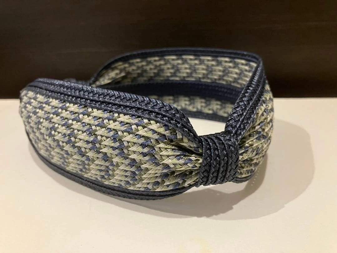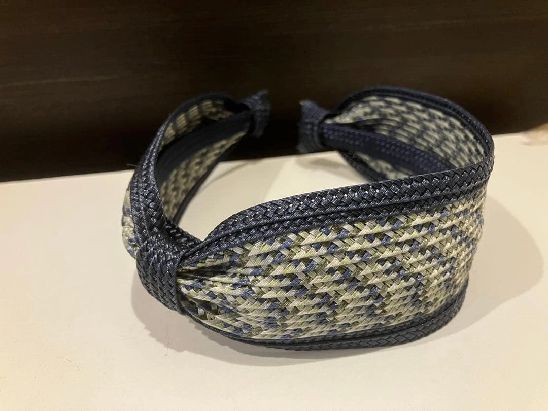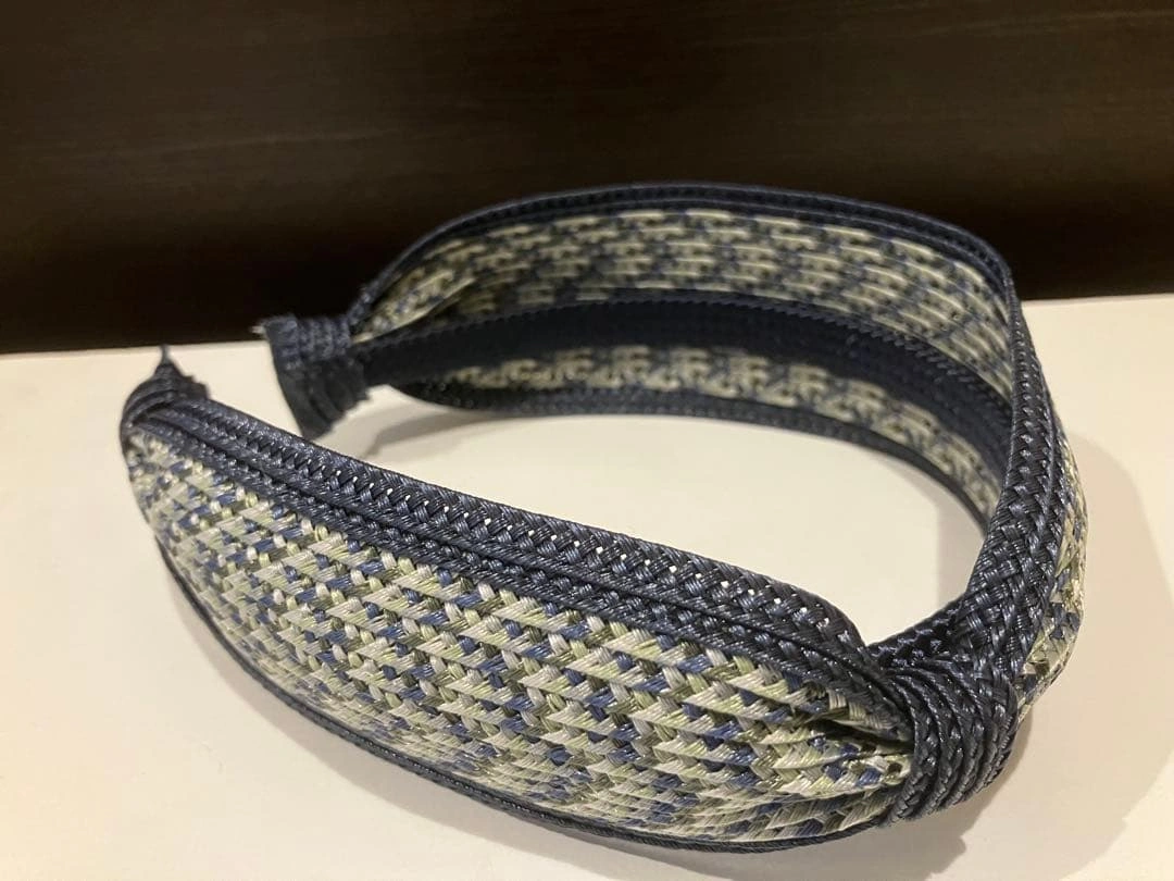 ネイビーとベージュの編み込みヘアバンド カチューシャ 新品