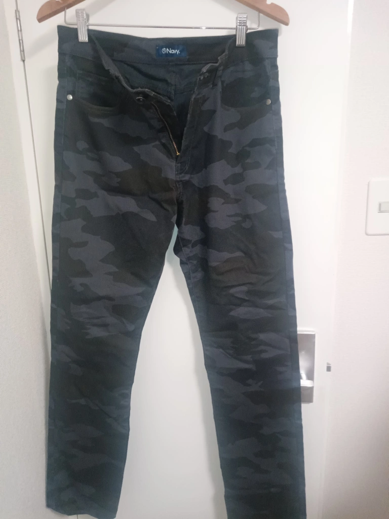 あたたかさネイビーの迷彩柄パンツです 【情報】 ブランド:ネイビー サイズ:32(82cm)-33(84cm) 型番:PL-M001-05-1 素材:綿62%、ポリエステル35%、ポリウレタン3% 【状態】 使用感あり 中古品であることご了承ください