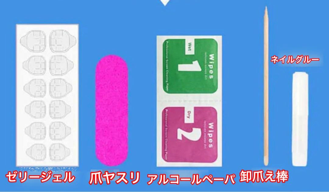 ネイルチップ: 24枚 爪やすり:1本 卸爪え棒:1本 アルコールペーパー:2枚 ゼリージェル: シート24枚 ネイルチップは簡単に着用し、繰り返し使えます。爪を傷つけず、いつでも違うデザインに交換できます。 【使用方法】 1)パッケージを開け、ネイルチップとネイルグルーを用意します(ネイルグルーとゼリージェルは同時に使用せず、どちらか一方を選択します)。 2)自分の爪と比較して、適切なサイズのゼリージェルを見つけます。 3)ゼリージェルを爪の先端に近い上部に貼り付けます。 4)適切なサイズのネイルチップを見つけて貼り付け、しっかりと押し込んでから、しっかりと押し込んでから、20分間待って完成です。 海外輸入品の為、撮影環境により質感、色合いなど、実際のものと異なる場合もございます。 ノーブランドのためお安くお譲りしております。 完璧をお求めの方・気になる方は購入をお控えください。 誰かに役に立てれば嬉しいです*ᴗˬᴗ)⁾ ご希望の方はお気軽にご連絡ください。