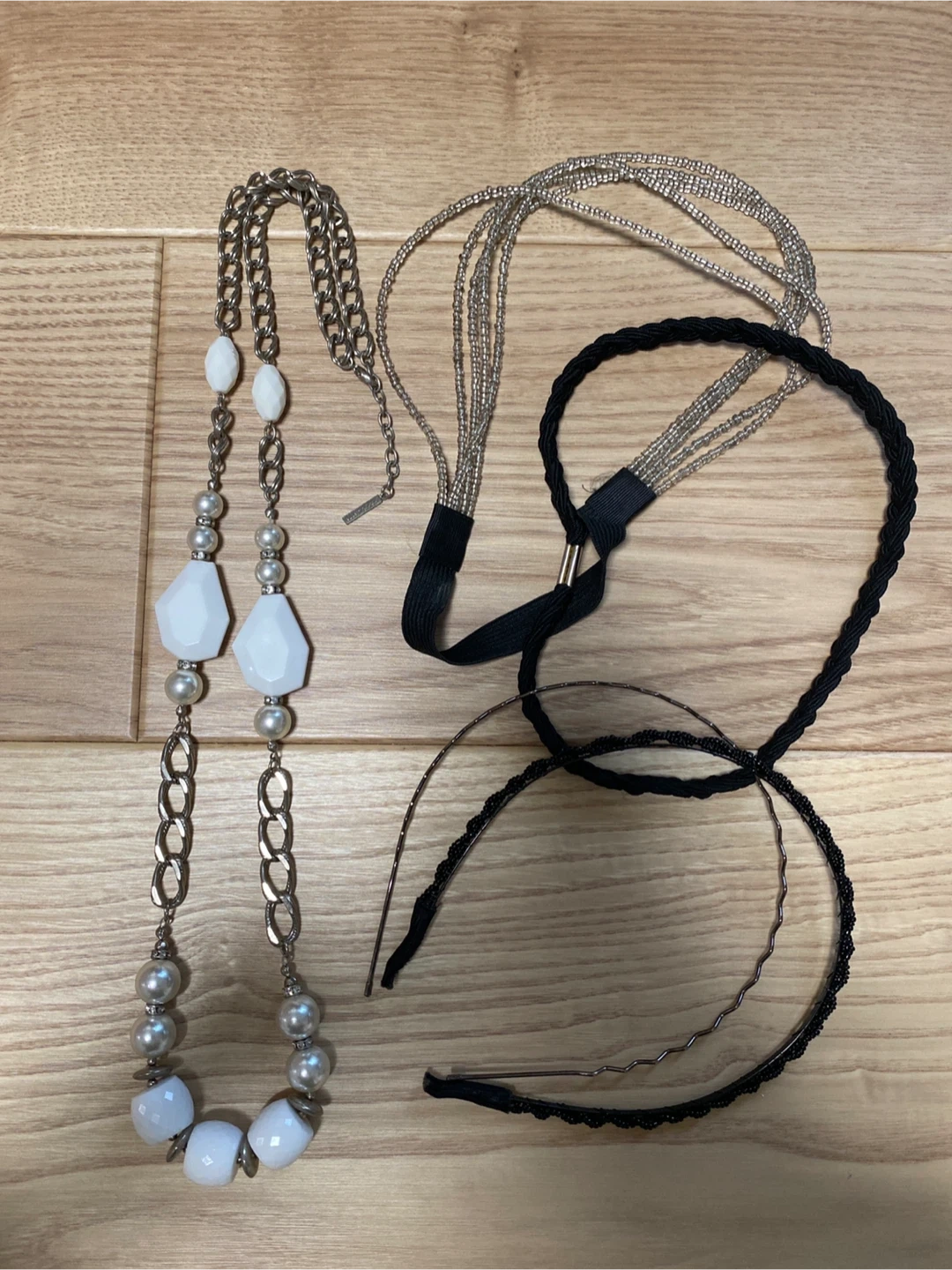 ご覧いただきありがとうございます! こちらは長年クローゼットに眠っていたものです。 ネックレスはピンキー&ダイアンです。 くすみ、汚れなどあります。 ヘアアクセカチューシャは数回使用です。 細かく気になさる方はご遠慮ください。 ★他でも出品しておりますので、突然削除する場合がございますm(_ _)m ★フリマである事を十分ご理解した上でのご購入をよろしくお願いいたします(*´꒳`*) 中古品、自宅保管のものですので、 使用感、匂い、汚れ、シミ、傷、採寸など細かく気になさる方、神経質な方、完璧を求める方はご遠慮ください。 画像は光の加減により多少色味が異なる場合があります。 採寸は素人です。多少の誤差あります。 素人検品、見落としなどご容赦ください。 ★お取引のお時間ですが、午前中早いお時間8時半〜9時半頃ですと、比較的動きやすいです。その他のお時間も対応できますので、お気軽にご相談ください(*´꒳`*) 当日のお取引も時間帯によっては可能です⭐︎