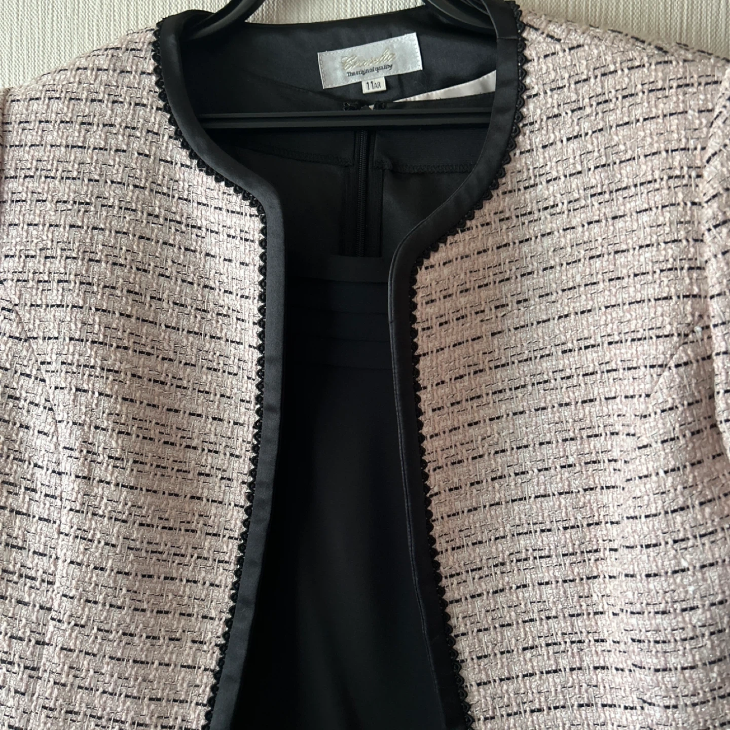 ジャケットとワンピースのセットアップです。 ・色:ブラック、ホワイト、ピンク ・サイズ:11号 ・状態:使用感少なめ 中古品であることをご了承ください。