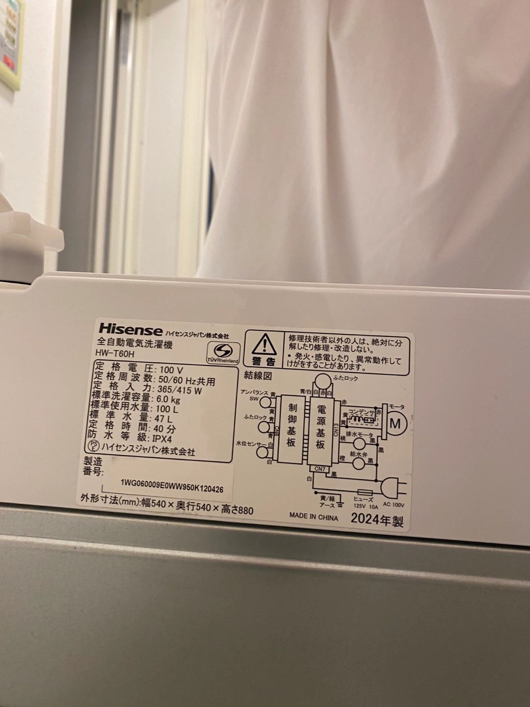 引っ越しに伴い、出品いたします。 約8ヶ月弱使いました。 全体的に汚れもなく綺麗な状態です。 洗濯機に関しては1日1回程度の使用頻度でした。 月に2回程度、洗濯槽のつけおき洗浄をしておりましたので、とても綺麗な状態かと思います。 冷蔵庫に関しては、自宅で自炊をすることがなかったので、主に飲料と氷を保管していたのでニオイや汚れは気になりません。 セットでお願いいたします。 6/22日曜日までに引き取っていただける方お願いいたします。 もし少しすぎてしまう方はご相談ください。 よろしくお願いいたします。 洗濯機 【情報】 ブランド:ハイセンス 型番:HW-T60H 容量:6.0kg 年式:2024年 外形寸法:(約)幅540×奥行540×高さ880mm 【状態】 状態の良い中古品 冷蔵庫 ブランド:ハイセンス 型番:HR-D1701B 容量: 全容量175 L 冷蔵庫122L 冷凍庫53 L 年式:2024年 外形寸法:(約)幅490×奥行558×高さ1429mm 【状態】 状態の良い中古品
