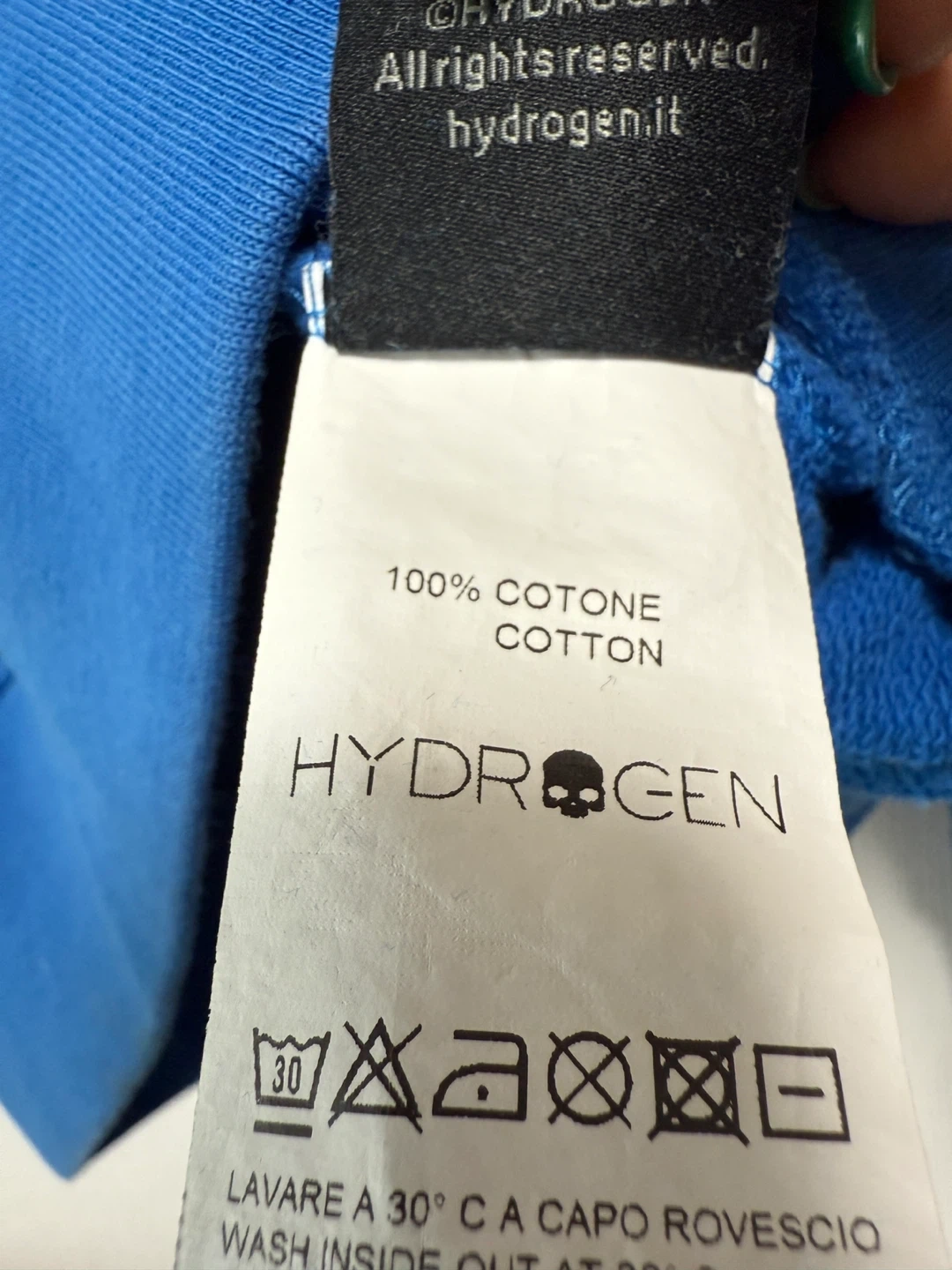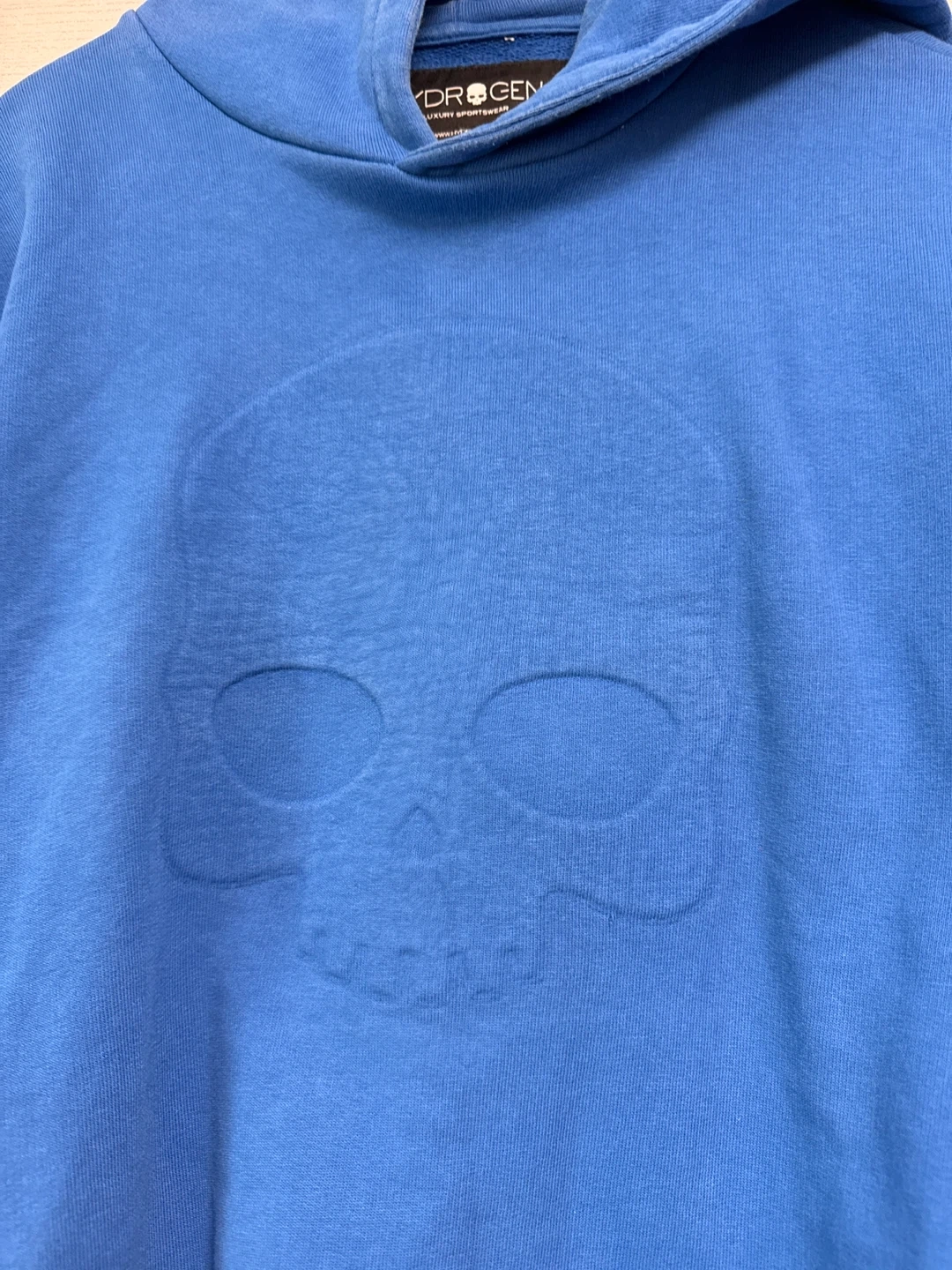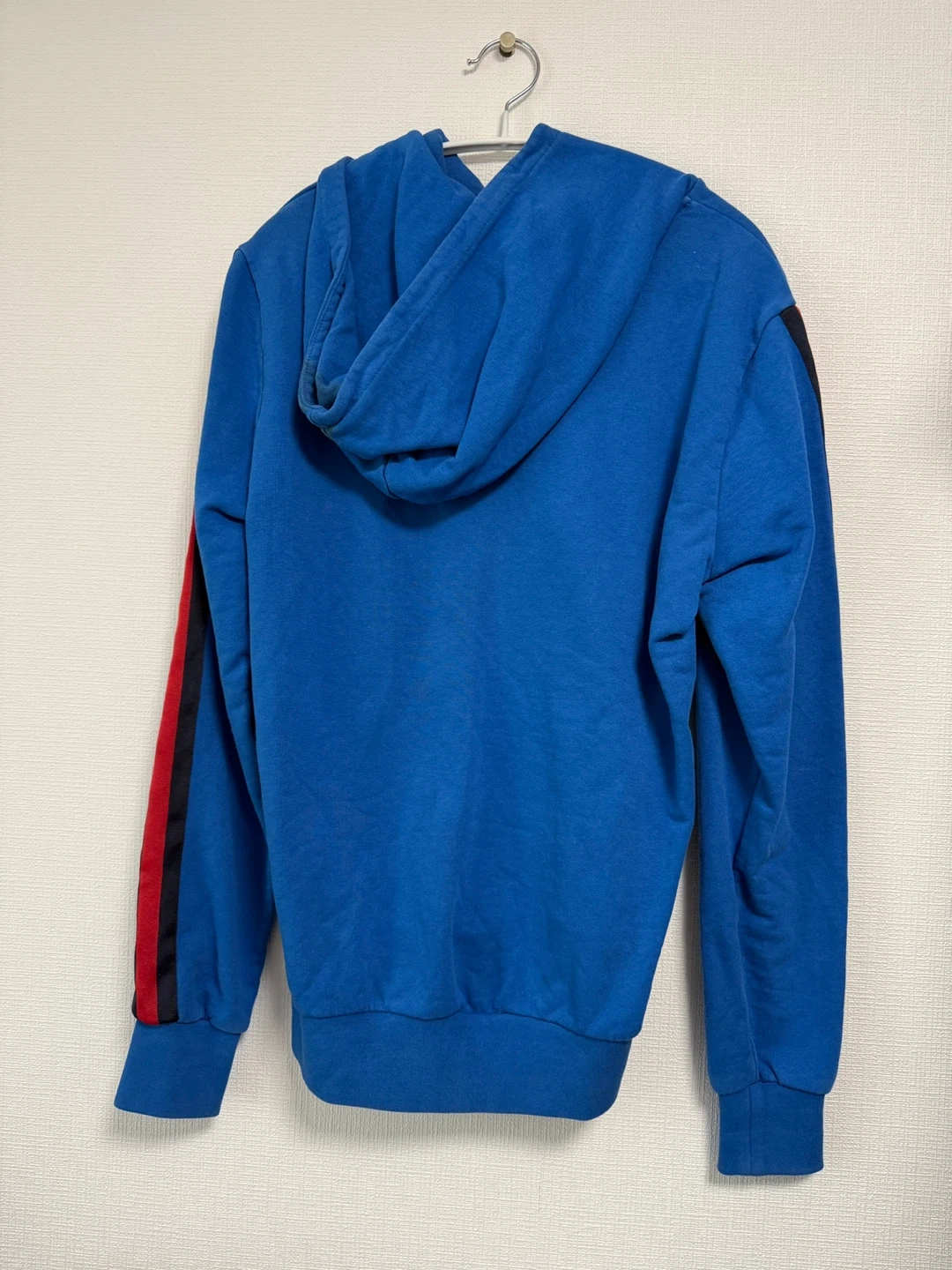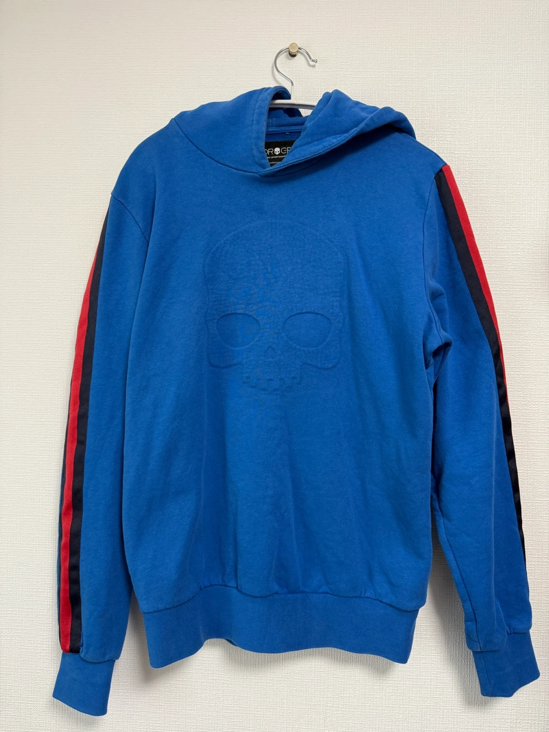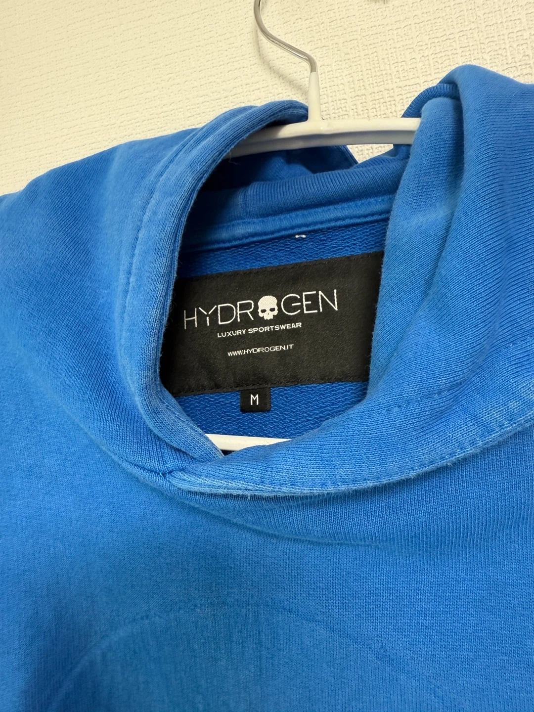 ハイドロゲンのパーカーです。 ・ブランド:ハイドロゲン ・サイズ:M ・色:ブルー ・デザイン:袖に赤と黒のライン ・状態:使用感はありますが、目立つ傷や汚れはありません。 sサイズの方も大丈夫だと思います。 色は3番目の写真の色に近いです。 ・素材:コットン100% 中古品であることをご了承ください。